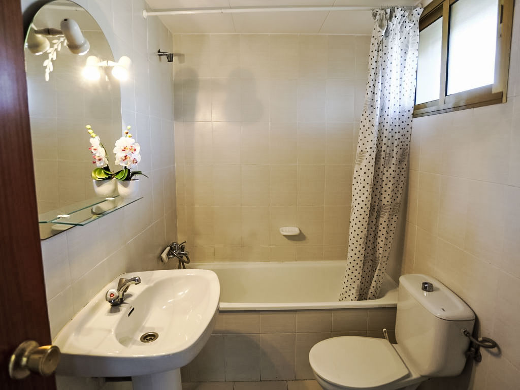 Vilafortuny 4 km von Cambrils Puerto: Appartementhaus "Sol Daurat", auf 3 Stockwerken. 50 m vom Meer, 50 m vom Strand, Strasse zu überqueren. Zur Mitbenutzung: Schwimmbad nierenförmig (8 x 4 m, 90 - 190 cm tief, saisonale Verfügbarkeit: 23.Jun.-23.Sep. Öffnungszeiten Schwimmbad: 10:00-23:00). Aussendusche. Im Hause: Restaurant, Bar. Parkplatz Nr. 26. Einkaufsgeschäft, Lebensmittelgeschäft, Supermarkt 100 m, Restaurant, Bar 10 m, Bäckerei 100 m, Café 10 m, Fahrradverleih 150 m, Biergarten 50 m, Bushaltestelle "La Plana" 200 m. Sporthafen 4 km, Jacht-Hafen 4 km, Surfschule 4 km, Segelschule 4 km, Reitstall 8 km. Nahe gelegene Sehenswürdigkeiten: parque temático Port Aventura 8 km, parque acuatico Acuopolis 10 km, Jumpland parque aventuras 4 km. Wandergebiete: La Mussara 44 km. Bitte beachten: Fahrstuhl nur bis 3. Stock. Eisenbahnlinie in der Nähe.