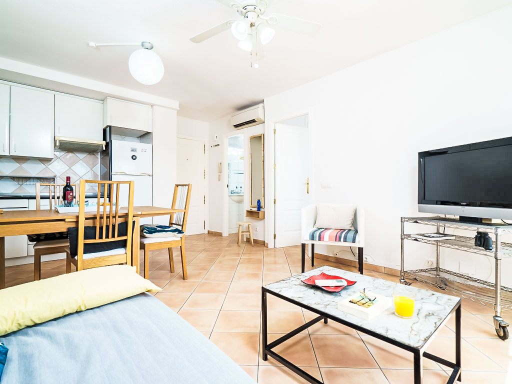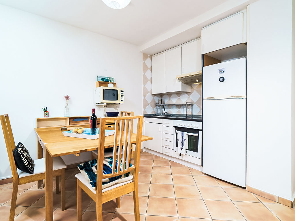 2-Zimmer-Wohnung 38 m2 im 2. Stock. Objekt geeignet für 2 Erwachsene + 2 Kinder. Hell, zweckmässig und komfortabel eingerichtet: Wohn-/Esszimmer mit 1 Diwanbett, Digital-TV, Klimaanlage und Ventilator. 1 Zimmer mit 1 franz. Bett (160 cm, Länge 200 cm), TV, Klimaanlage und Ventilator. Offene Küche (Backofen, 4 Glaskeramikherd Platten, Toaster, Wasserkocher, Mikrowelle, Tiefkühler, elektrische Kaffeemaschine). Dusche/Bidet/WC. Sehr schöne Sicht auf das Meer. Zur Verfügung: Waschmaschine, Fliegengitter. Internet (Wireless LAN, gratis). Bitte beachten: TV nur ES. AT457546A