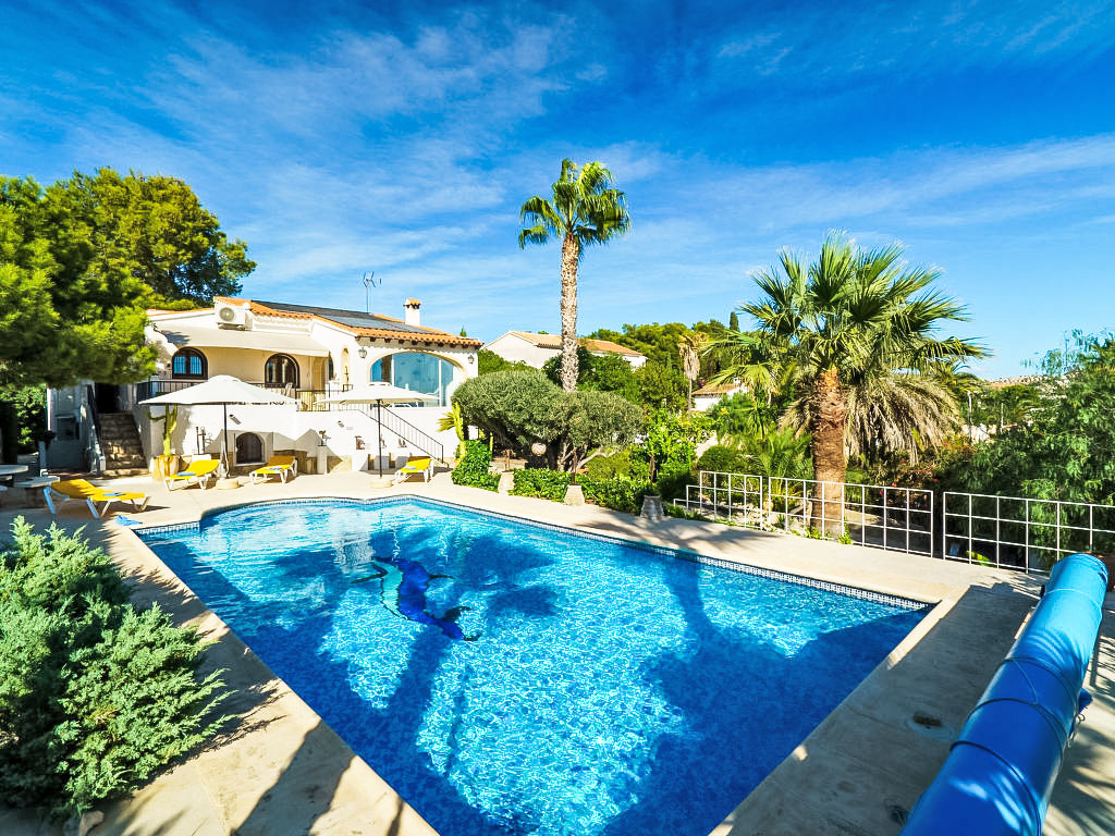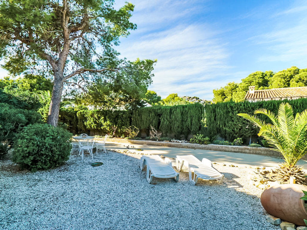 Moraira: Kleines, gemütliches Haus "Las Boyas". Ruhige, sonnige Lage, 1.6 km vom Meer, 1.6 km vom Strand. Zur Alleinbenutzung: schöner, gepflegter Garten (eingezäunt), Schwimmbad (10 x 5 m, 01.01.-31.12.). Boccia, Gartenmöbel, Parkplatz (für 2 Autos). Einkaufsgeschäft 3 km, Supermarkt 2.2 km, Restaurant 450 m, Sandstrand "Playa de L'ampolla" 1.6 km. Golfplatz (9 Loch) 2.5 km. Bitte beachten: Fahrzeug empfohlen. Geeignet für Familien.