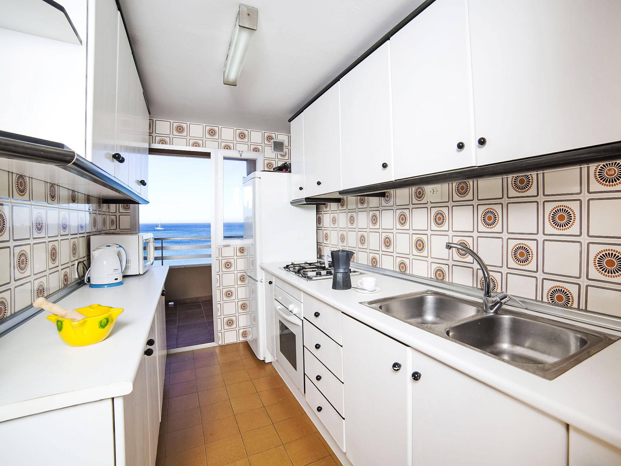 "Voramar", 4-Zimmer-Wohnung 122 m2 im 3. Stock. Geräumig und hell, komfortabel und gemütlich eingerichtet: Wohn-/Esszimmer mit 1 Diwanbett, Digital-TV, Klimaanlage und Warmluftheizung. Ausgang zur Terrasse. 1 Zimmer mit 2 Betten (90 cm, Länge 190 cm). 1 Zimmer mit 2 Betten, Klimaanlage und Warmluftheizung. Ausgang zur Terrasse. 1 Zimmer mit 2 Betten (90 cm, Länge 190 cm). Küche (4 Kochplatten, Backofen, Mikrowelle). Ausgang zur Terrasse. Bad/Bidet/WC. 2 grosse Terrassen. Terrassenmöbel. Sehr schöne Panoramasicht auf das Meer und das Schwimmbad. Zur Verfügung: Waschmaschine, Bügeleisen. Internet (Wireless LAN, gratis). Garage Nr. 22. Bitte beachten: geeignet für Familien. Parkplatz nur für kleine Wagen. AT-461229-A