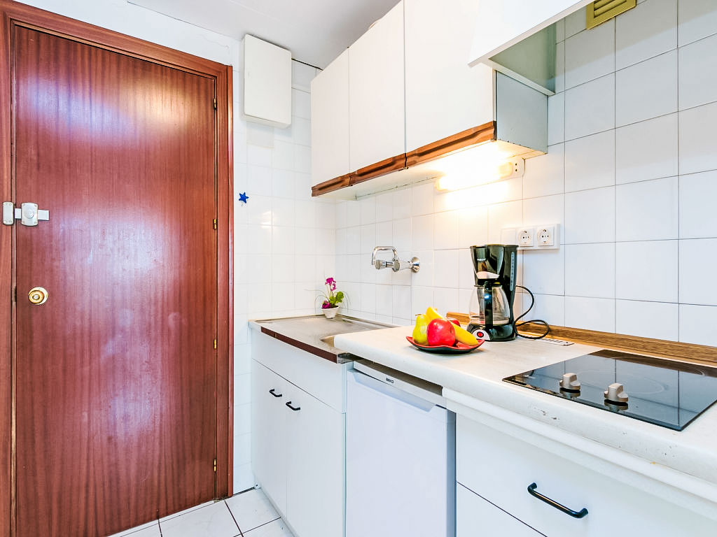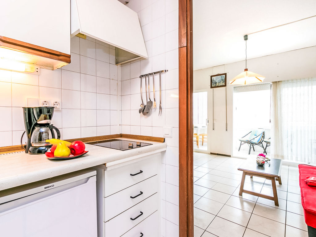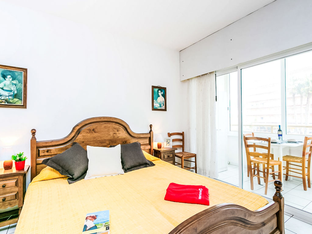 1-Zimmer-Studio 32 m2 im 1. Stock. Sehr einfach und rustikal eingerichtet: Wohn-/Esszimmer mit 1 Diwanbett, 1 franz. Bett, Sat-TV und Digital-TV. Ausgang zur Veranda. Offene Küche (2 Glaskeramikherd Platten). Dusche/WC. Terrasse 7 m2. Balkonmöbel. Seitliche Sicht auf das Meer. Zur Verfügung: Internet (Wireless LAN, gratis). Bitte beachten: TV nur ES, FR, DE. HUTG006598