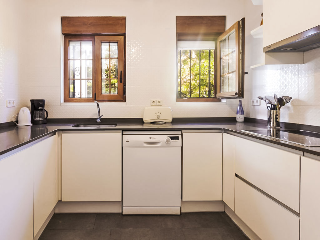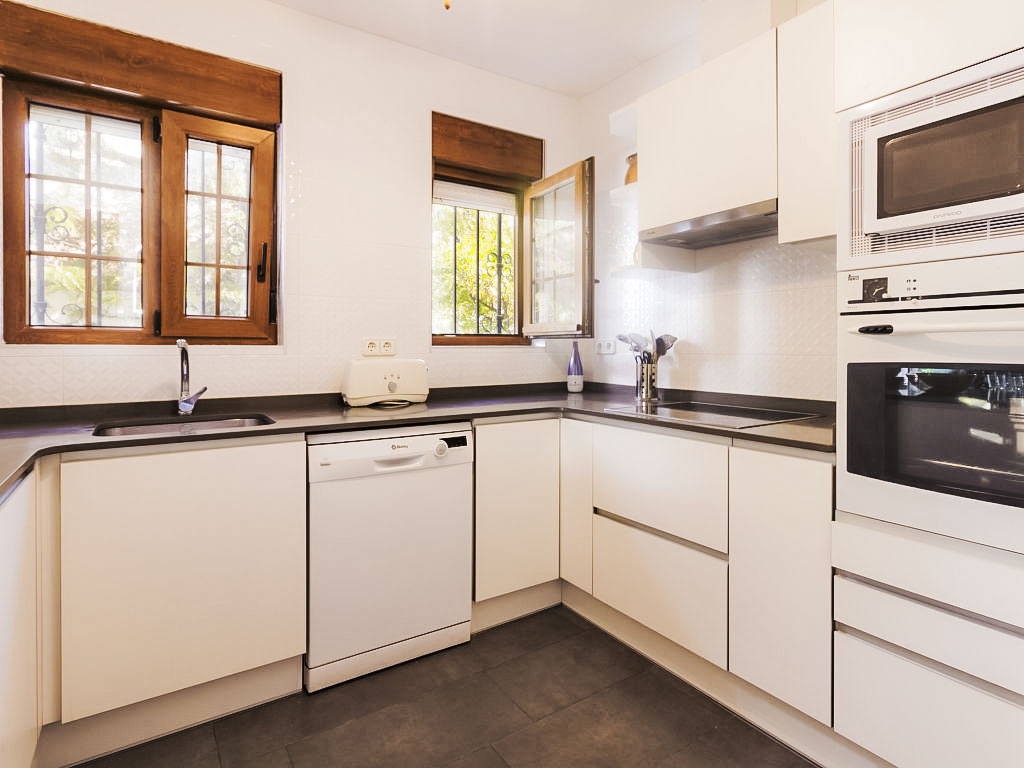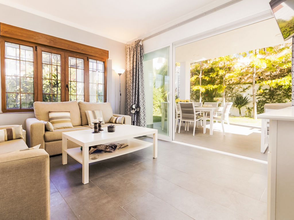 "El Dorado Playa - Villa La Roca", 6-Zimmer-Haus 170 m2. Objekt geeignet für 8 Erwachsene. Geräumig, komfortabel und geschmackvoll eingerichtet: Wohn-/Esszimmer mit Digital-TV. Ausgang zum Gartensitzplatz. 2 Zimmer, jedes Zimmer mit 2 Betten. 1 Zimmer mit 1 franz. Bett. Salon. Ausgang zum Gartensitzplatz. Küche (Backofen, Geschirrspüler, 3 Glaskeramikherd Platten, Toaster, Wasserkocher, Mikrowelle, elektrische Kaffeemaschine). Bad/WC, Dusche/WC. Obergeschoss: 1 Zimmer mit 2 Betten. Gartensitzplatz. Terrassenmöbel, Gartengrill, Liegestühle (4). Schöne Sicht auf den Garten. Zur Verfügung: Waschmaschine, Bügeleisen, Kinderhochstuhl, Babybett, Haartrockner. Internet (Wireless LAN). Bitte beachten: geeignet für Familien. Nichtraucher-Haus. HUTT-003333