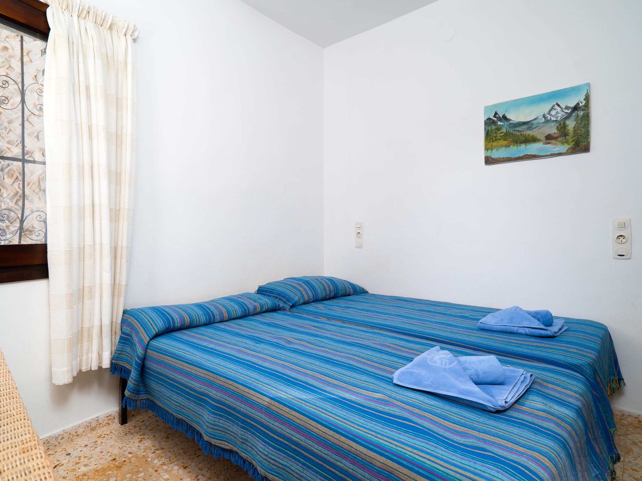 "Casa Sunshine", 4-Zimmer-Haus 80 m2. Zweckmässig und rustikal eingerichtet: Wohn-/Esszimmer mit Schwedenofen, Sat-TV und Klimaanlage. Ausgang zur Terrasse. 1 Zimmer mit 1 Ausziehbett (2 Pers.). 1 Zimmer mit 1 franz. Bett und Klimaanlage. Küche (Backofen, Geschirrspüler, Mikrowelle, Tiefkühler). Bad/WC. Unteres Geschoss: (Aussentreppe) 1 Zimmer mit 2 Betten und Bad/Dusche/WC. Kleines Wohnzimmer. Grosse Terrasse, kleine Terrasse überdacht. Terrassenmöbel, Gartengrill, Liegestühle. Zur Verfügung: Waschmaschine. Internet (Wireless LAN, gratis). Parkplatz. Bitte beachten: geeignet für Familien. Nichtraucher-Unterkunft. TV nur EN, DE, ES. AT-423355A