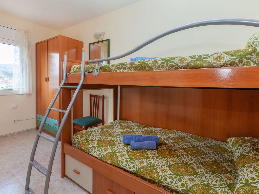 "Villa Formentera", 4-Zimmer-Villa 105 m2 auf 2 Stockwerken. Komfortabel und gemütlich eingerichtet: Wohn-/Esszimmer mit 1 Diwanbett (120 cm), Esstisch, Sat-TV und Digital-TV. Ausgang zur Terrasse. Küche (Backofen, Geschirrspüler, 4 Glaskeramikherd Platten, Toaster, Wasserkocher, Mikrowelle, elektrische Kaffeemaschine). Dusche/WC. Obergeschoss: 1 Zimmer mit 1 franz. Bett (135 cm). 1 Zimmer mit 1 x 2 Etagenbetten (90 cm). 1 Zimmer mit 1 Bett (90 cm). Bad/Bidet/WC. Gartensitzplatz. Terrassenmöbel, Gartengrill. Zur Verfügung: Waschmaschine, Bügeleisen, Babybett, Haartrockner. Internet (Wireless LAN, gratis). Parkplatz beim Haus. Bitte beachten: Parkplatz nur für kleine Wagen. TV nur ES, DE, FR. HUTT014665