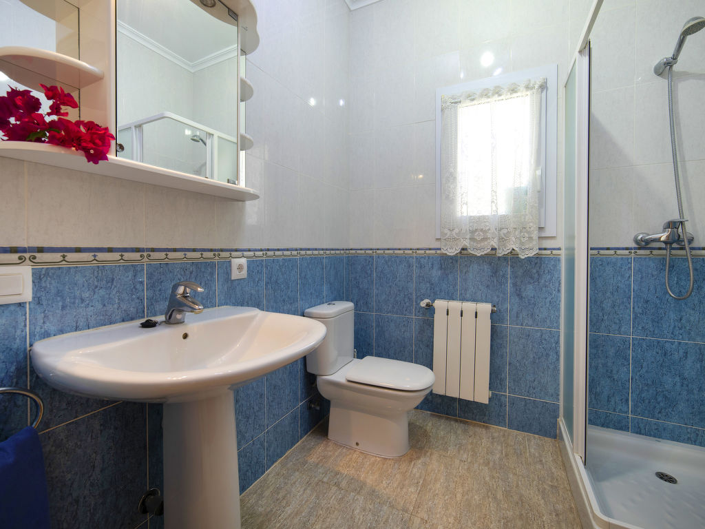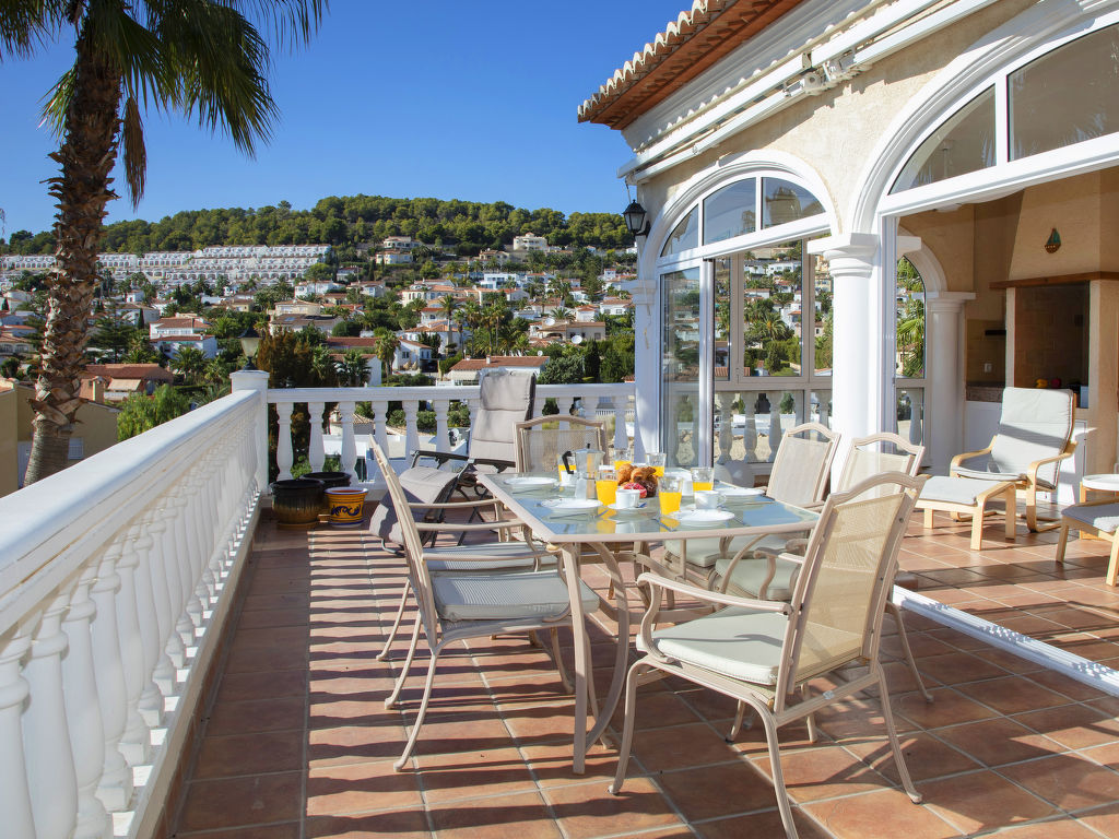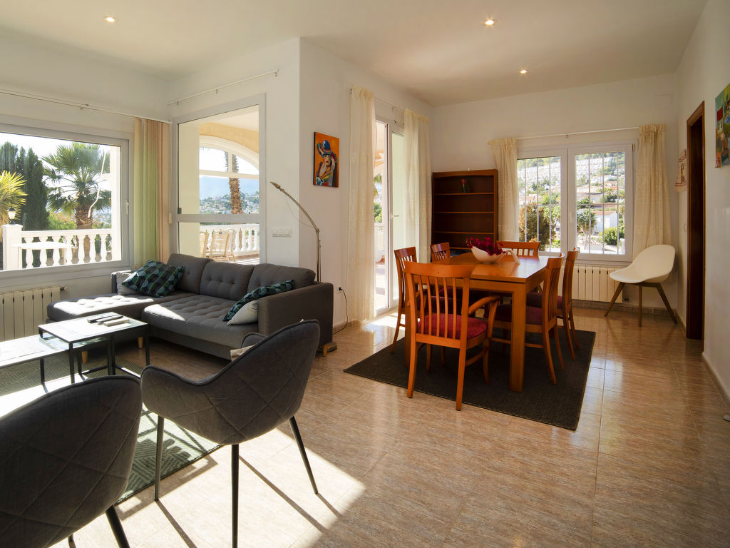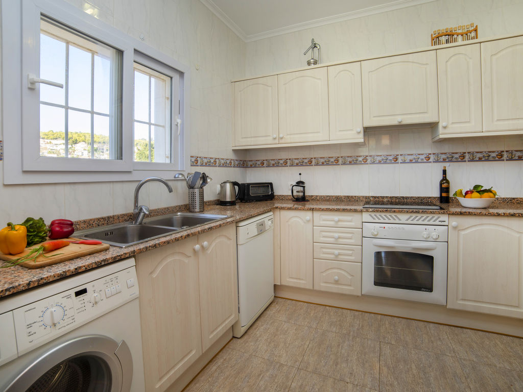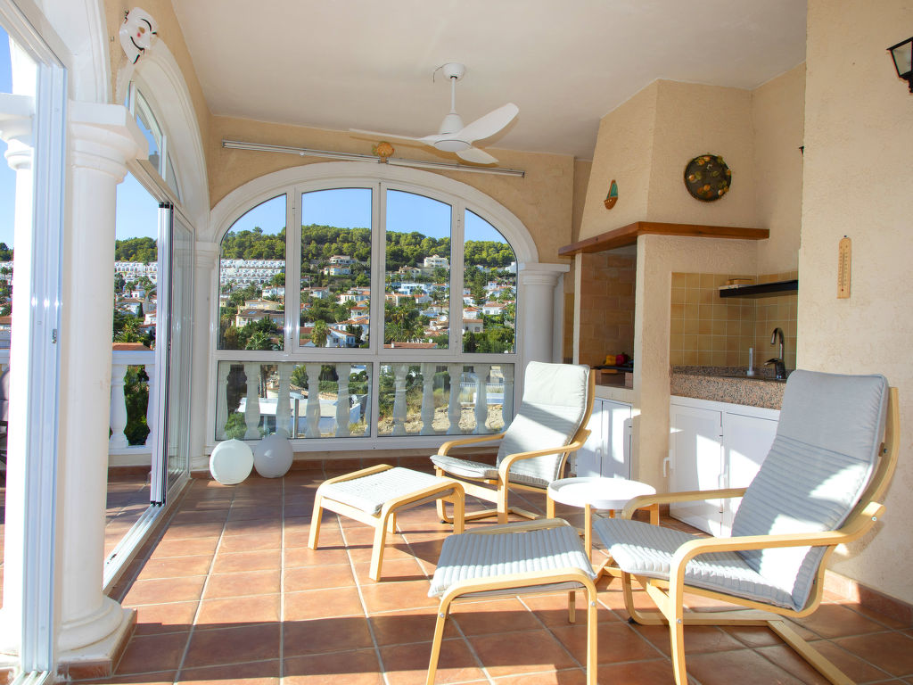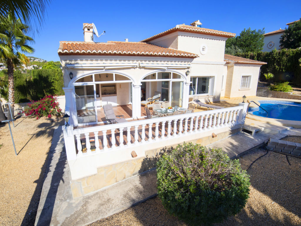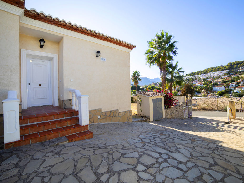 Schöne Villa "Gran Sol". Am Ortsrand, 4.8 km vom Zentrum von Calpe, ruhige, sonnige Lage im Villenviertel, verkehrsberuhigte Zone, 1.8 km vom Meer, 1.8 km vom Strand. Zur Alleinbenutzung: Grundstück 782 m2 (eingezäunt), Schwimmbad nierenförmig (7 x 4 m, 133 - 153 cm tief, 01.01.-31.12.). Aussendusche. Lebensmittelgeschäft 3 km, Supermarkt 3 km, Sandstrand "Playa Fustera" 1.8 km (klein). Sporthafen 2.5 km, Golfplatz 8 km. Nahe gelegene Sehenswürdigkeiten: Aqualandia, Mundomar, Terra Mítica, Terra Natura, Benidorm Palace (Benidorm), Castillo de Guadalest.