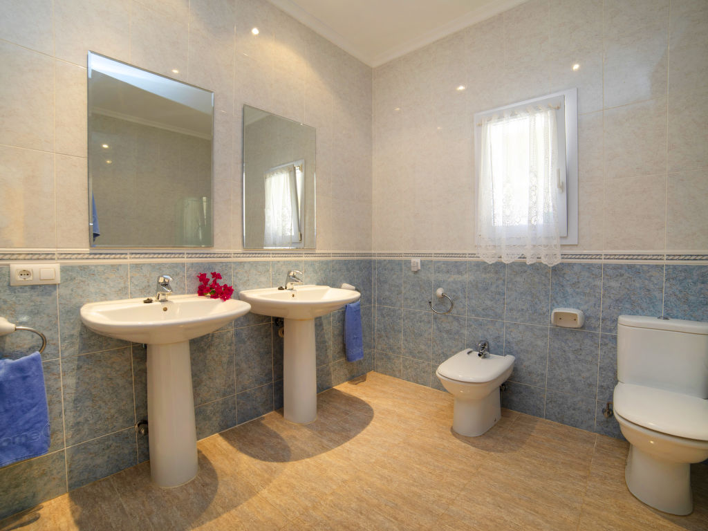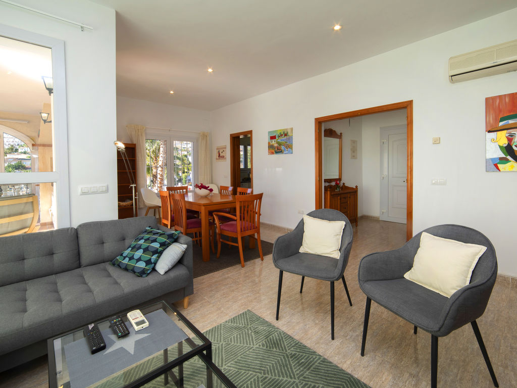 "Gran Sol", 4-Zimmer-Villa 185 m2. Geräumig und hell: Wohn-/Esszimmer mit Sat-TV, Klimaanlage, Ventilator und Warmluftheizung. Ausgang zur Terrasse. 1 Zimmer mit 1 Doppelbett (180 cm, Länge 190 cm), Bad/Bidet/WC, Doppelwaschbecken, Klimaanlage, Ventilator und Warmluftheizung. 1 Zimmer mit 2 Betten (90 cm, Länge 190 cm), Ventilator. 1 Zimmer mit 1 franz. Bett (150 cm, Länge 190 cm), Ventilator. Küche (Backofen, Geschirrspüler, 4 Glaskeramikherd Platten, Toaster, Wasserkocher, Mikrowelle, elektrische Kaffeemaschine). Dusche/WC. Grosse Terrasse. Terrassenmöbel, Gartengrill, Liegestühle. Sicht auf die Landschaft und die Ortschaft. Zur Verfügung: Waschmaschine, Bügeleisen, Fliegengitter, Kinderhochstuhl, Babybett bis 2 Jahre, Haartrockner. Internet (Wireless LAN, gratis). Parkplatz (3 Autos). Bitte beachten: geeignet für Familien. Rauchmelder. VT-484597-A