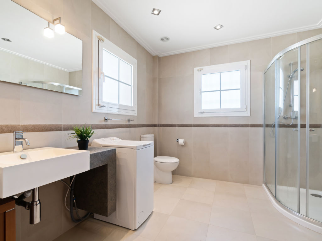 "Sahara", 5-Zimmer-Villa 350 m2 auf 3 Stockwerken. Objekt geeignet für 6 Erwachsene + 2 Kinder. Geräumig und hell, komfortabel eingerichtet: grosses Wohn-/Esszimmer mit Esstisch und Digital-TV. Ausgang zum Garten, zur Terrasse. 1 Zimmer mit 2 Betten (90 cm, Länge 190 cm), TV. Küche (Backofen, Geschirrspüler, 4 Induktionskochplatten, Toaster, Wasserkocher, Mikrowelle, Tiefkühler, elektrische Kaffeemaschine) mit Bar. Dusche/WC. Unteres Geschoss: 1 Zimmer mit 1 franz. Bett (160 cm, Länge 200 cm). Wohnzimmer mit TV. Dusche/Bidet/WC. Obergeschoss: 2 Zimmer, jedes Zimmer mit 1 franz. Bett (180 cm, Länge 200 cm). Ausgang zum Balkon. Dusche/Bidet/WC. Balkon, 2 Terrassen. Terrassenmöbel, Gartengrill, Liegestühle (4). Sicht auf das Schwimmbad und den Garten. Zur Verfügung: Waschmaschine, Bügeleisen, Kinderhochstuhl, Babybett, Haartrockner. Internet (Wireless LAN, gratis). Bitte beachten: geeignet für Familien. Nichtraucher-Unterkunft. Feuerlöscher. VT-484423-A