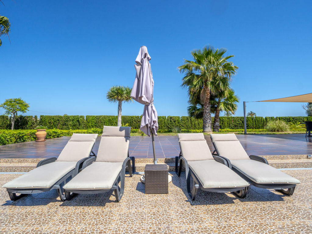 Grosse Villa "Sahara". Am Ortsrand Elche, ruhige, sonnige Lage, 10 km vom Meer. Zur Alleinbenutzung: Grundstück 1 ha, Garten mit Rasen und Bäumen, Schwimmbad (8 x 18 m, 240 cm tief, 01.01.-31.12.). Aussendusche, Parkplatz auf dem Grundstück. Supermarkt 2 km, Restaurant 3 km, Bar 1.5 km, Café 1.5 km, Fähre "Tabarca" 10 km. Nahe gelegene Sehenswürdigkeiten: Elche 12 km, Santa Pola 11 km, Alicante 19 km, Rio Safari 8 km, Isla de Tabarca (via Santa Pola) 10 m. Der Besitzer akzeptiert keine Gruppen.