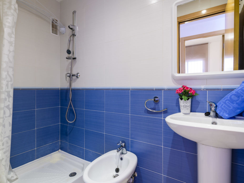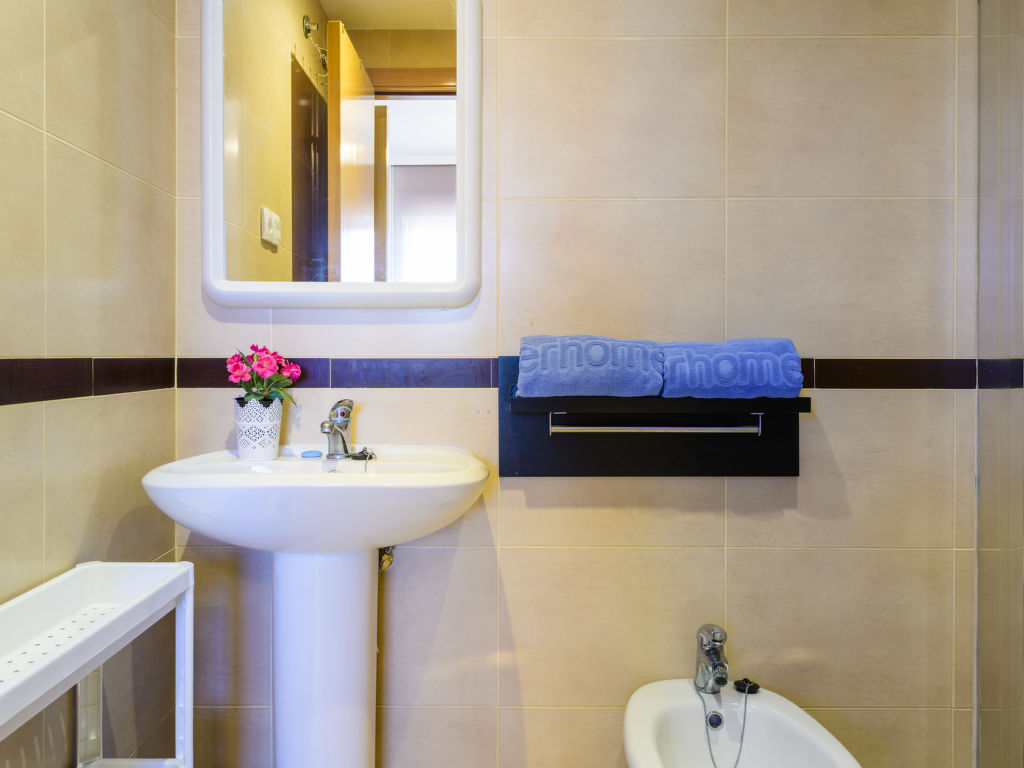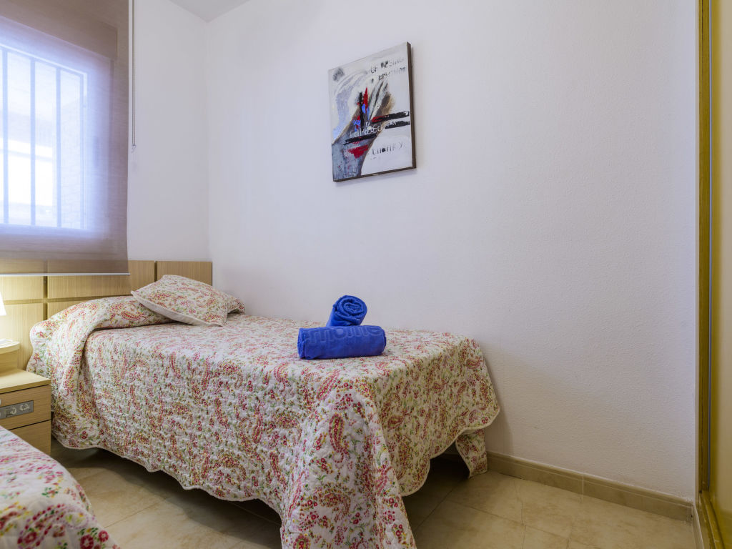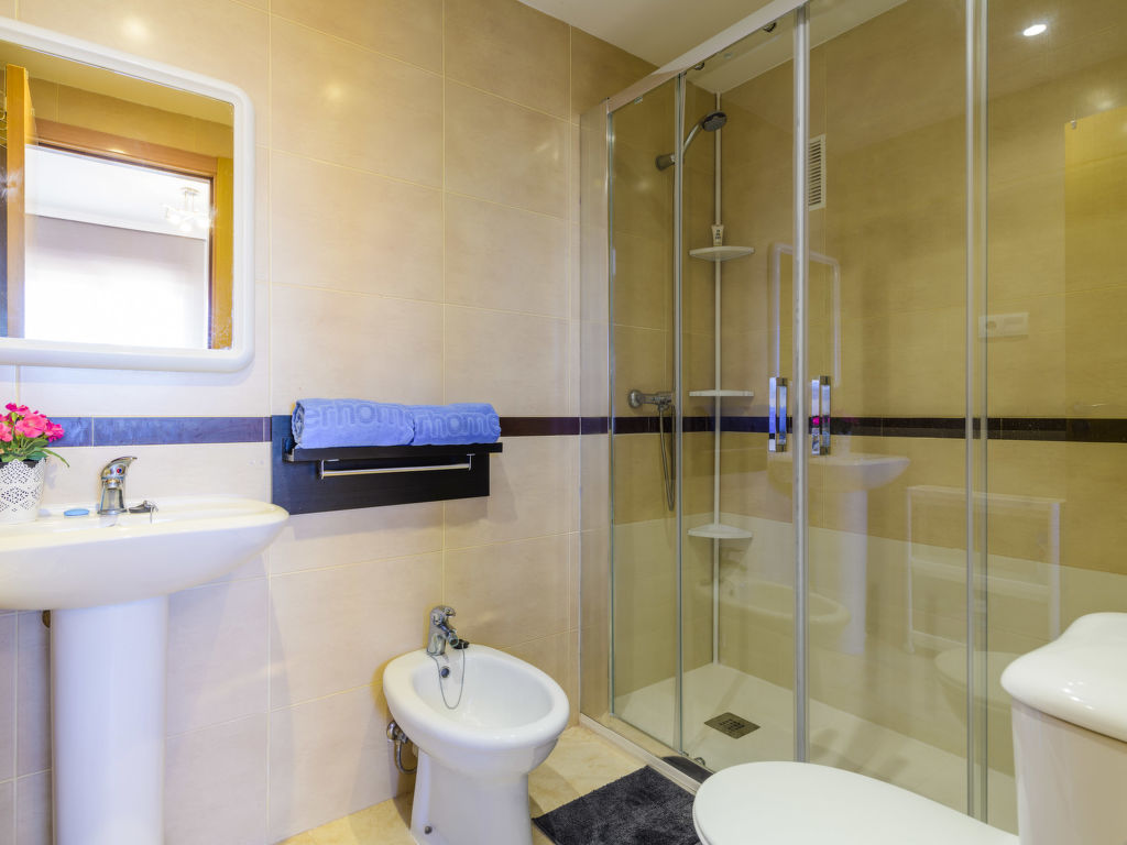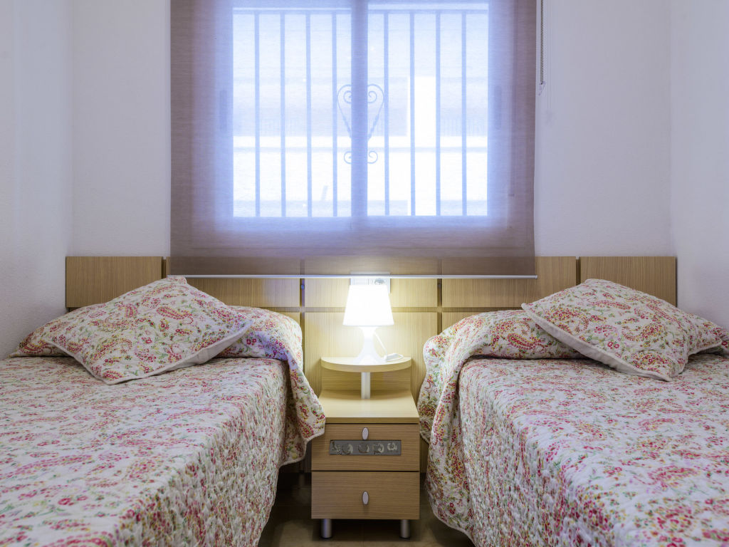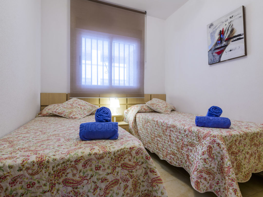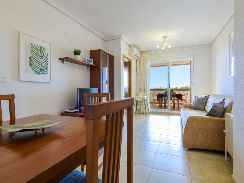 "Playa Ribera", 3-Zimmer-Wohnung 67 m2 im 3. Stock. Zweckmässig und komfortabel eingerichtet: Wohn-/Esszimmer mit Esstisch, Digital-TV, Flachbildschirm, Klimaanlage und Warmluftheizung. Ausgang zur Terrasse. 1 Zimmer mit 1 franz. Bett (135 cm, Länge 190 cm), Dusche/Bidet/WC. 1 Doppelzimmer mit 2 Betten (90 cm, Länge 190 cm). Küche (Backofen, Geschirrspüler, 4 Glaskeramikherd Platten, Toaster, Mikrowelle, Tiefkühler, elektrische Kaffeemaschine). Bad/Bidet/WC. Terrasse. Terrassenmöbel. Sicht auf das Meer. Zur Verfügung: Waschmaschine, Bügeleisen, Kinderhochstuhl, Babybett, Haartrockner. Internet (Wireless LAN, gratis). Parkplatz (überdacht). Geeignet für Familien. VT-41319-CS
