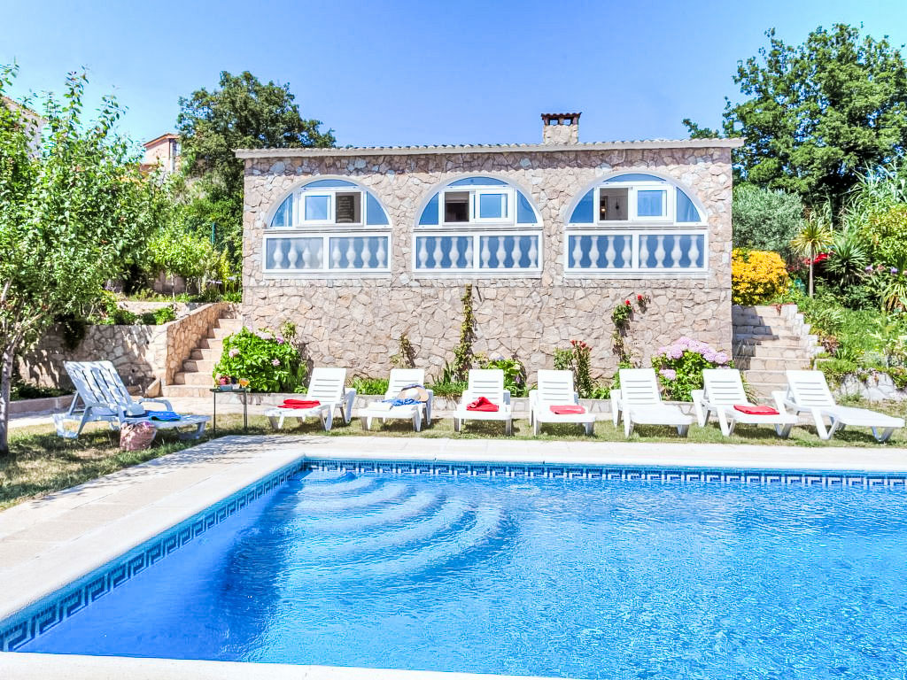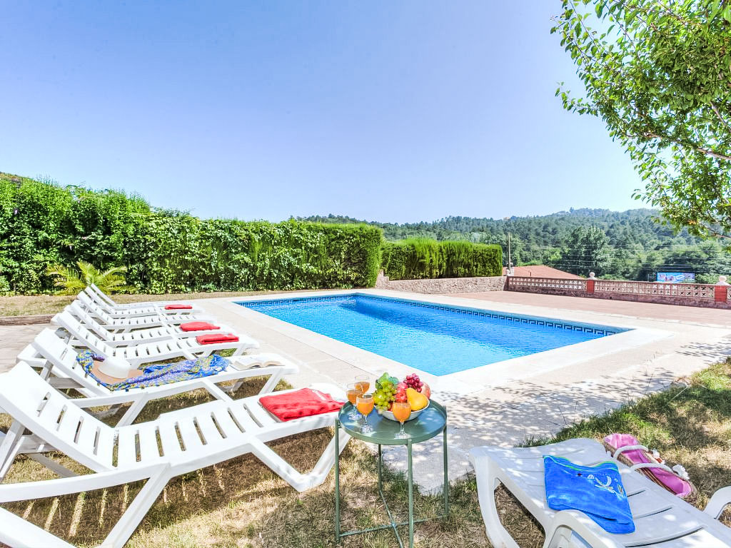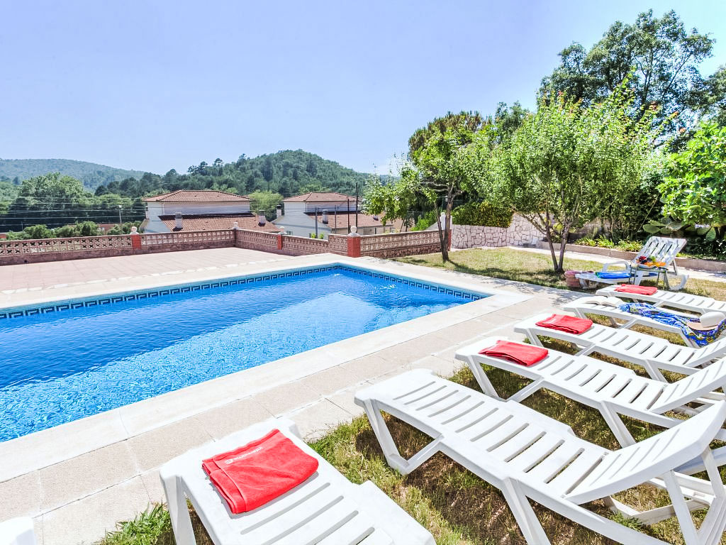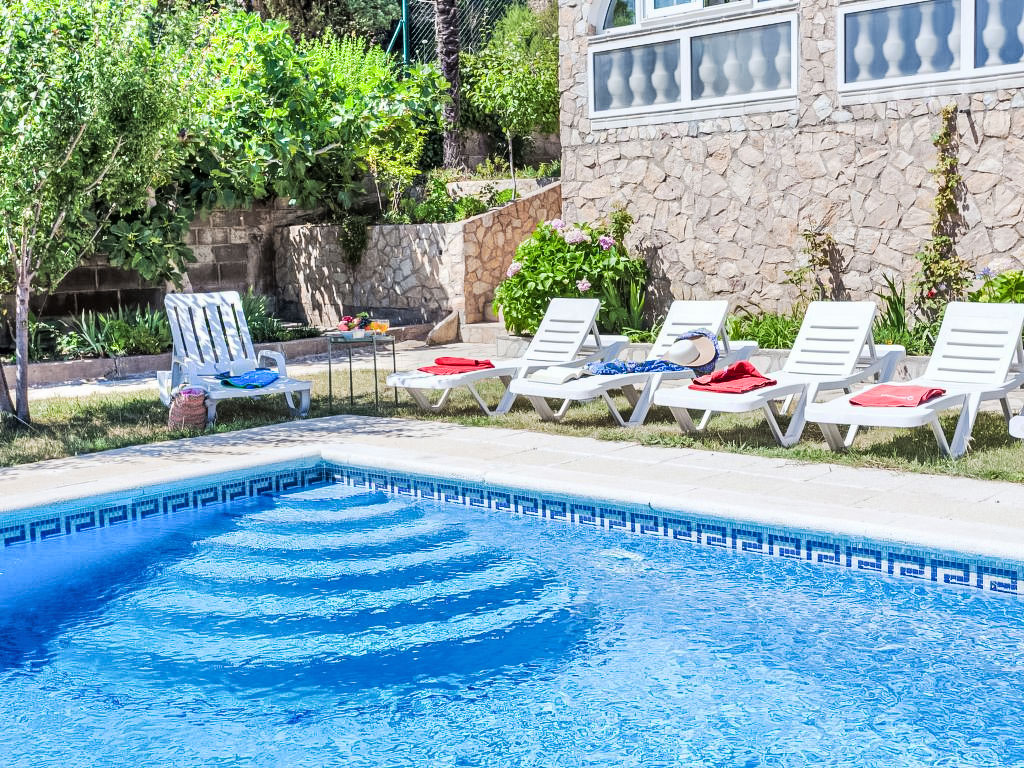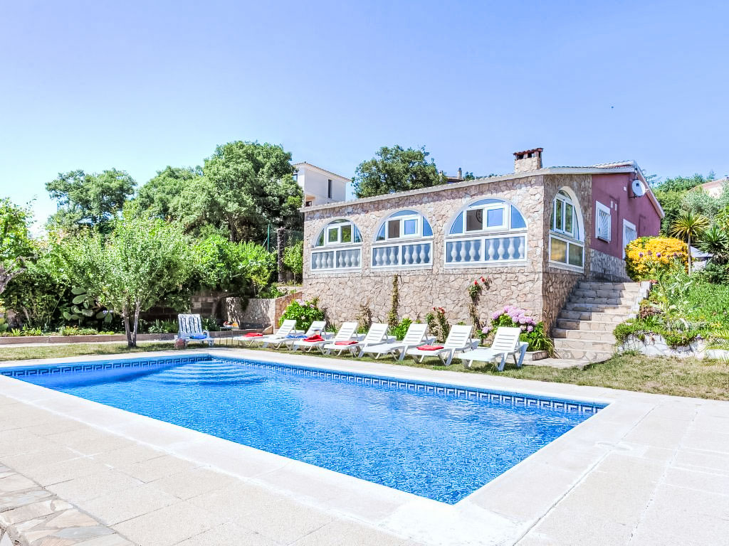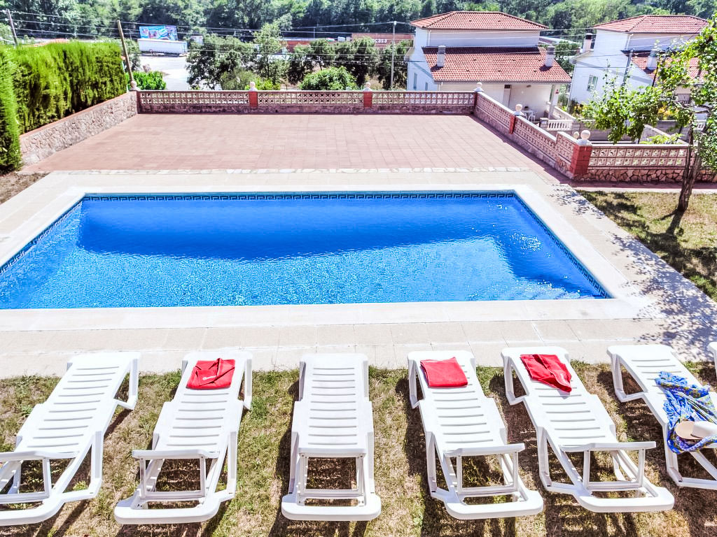 Aiguaviva Park: Einfamilienhaus "Cris". 9 km vom Zentrum von Lloret de Mar, 9.5 km vom Meer, an einer Strasse. Zur Alleinbenutzung: Grundstück 1'000 m2, Garten mit Rasen 45 m2, Schwimmbad (8 x 4 m, 01.06.-30.09.). Sitzplatz (170 m2), Grill. Im Hause: Waschmaschine. Treppenweg (33 Stufen) bis zum Haus. Öffentliche Parkplätze auf der Strasse. Einkaufsgeschäft 7 km, Supermarkt 500 m, Bushaltestelle 200 m, Sandstrand 7 km. Golfplatz 8 km. Bitte beachten: geeignet für Familien. Jugendgruppen nur auf Anfrage. Die Nachbarschaft ist sehr lärmempfindlich. Ruhe und gutes Benehmen wird erwartet. Beleuchtetes Schwimmbad von 21 - 24 Uhr. Tankstelle und Strasse etwa 100 m entfernt. Restaurant in der gemeinschaftlichen Zone, 400 m.>.
