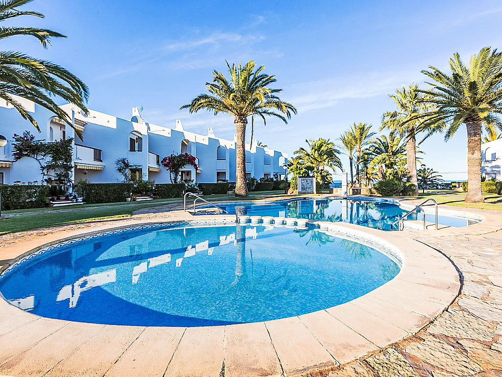 Sehr schöne, gemütliche Residenz "Les Arenes". 51 Häuser in der Residenz. 2 km vom Zentrum von Dénia, 50 m vom Meer, direkter Zugang zum Strand. Zur Mitbenutzung: grosser, schöner, gepflegter Garten mit Rasen und Pflanzen, Schwimmbad (saisonale Verfügbarkeit: 01.Jan.-31.Dez.). Kinderbecken, Aussendusche, Parkplatz. Supermarkt, Restaurant, Bar, Café, Bushaltestelle 200 m, Sandstrand 50 m. Tennis 2 km.