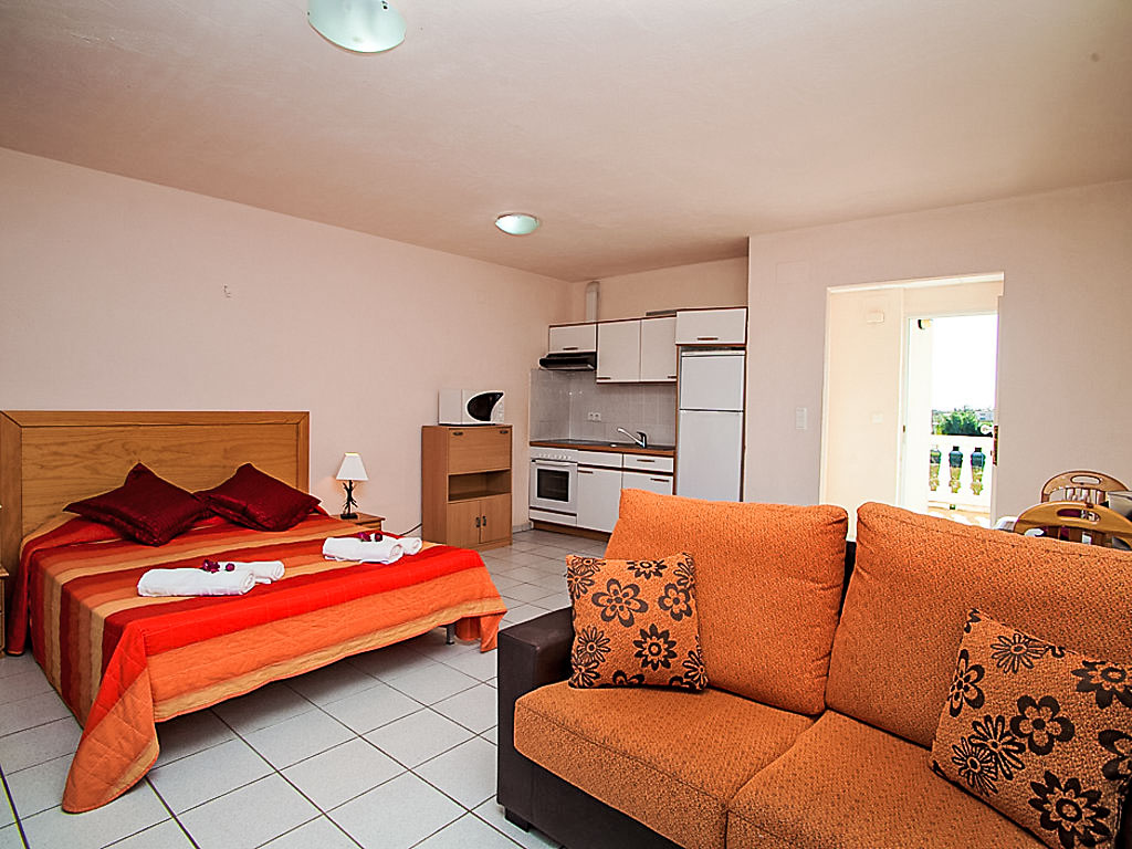 1-Zimmer-Studio 45 m2, im Obergeschoss. Zweckmässig und komfortabel eingerichtet: Wohn-/Esszimmer mit 1 franz. Bett, 1 Schlafmöglichkeit, Sat-TV und Klimaanlage. Ausgang zur Terrasse. Ausgang zur Terrasse. Kochnische (Backofen, X Glaskeramikherd Platten, Mikrowelle, elektrische Kaffeemaschine). Bad/WC. Bodenheizung. Grosse Terrasse. Terrassenmöbel. Sicht auf das Meer, das Schwimmbad und den Garten. Zur Verfügung: Waschmaschine. Internet (Wireless LAN, gratis). Geeignet für Familien. 2 Haustiere/Hunde erlaubt. HUTTE001688