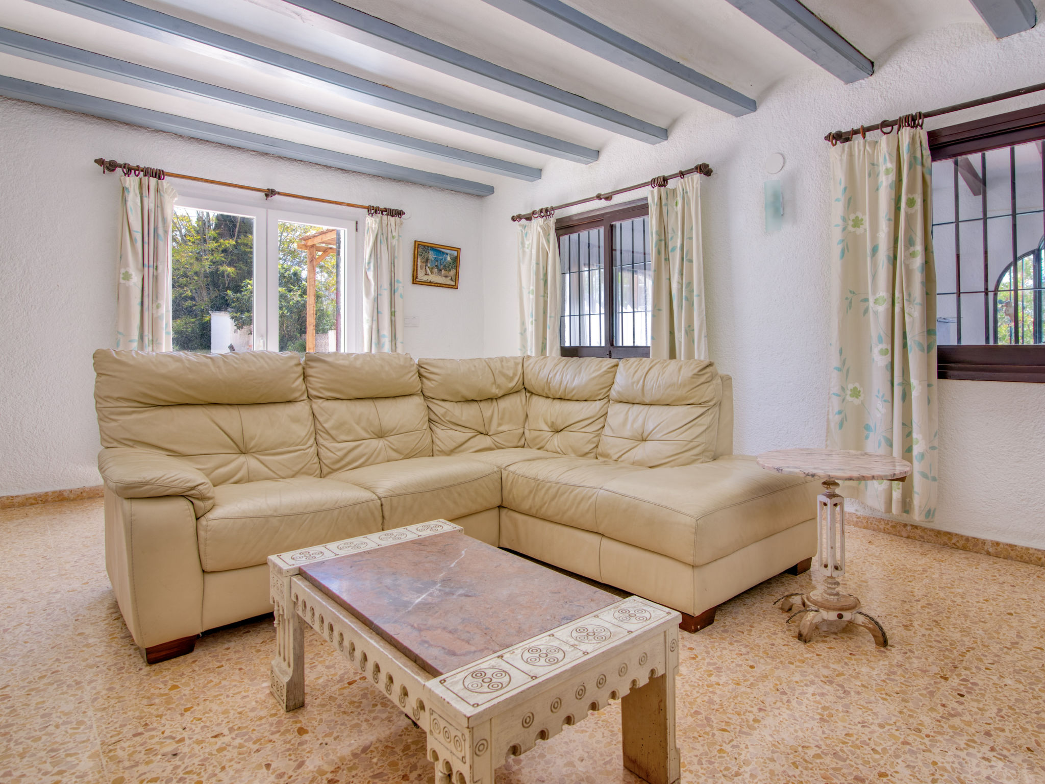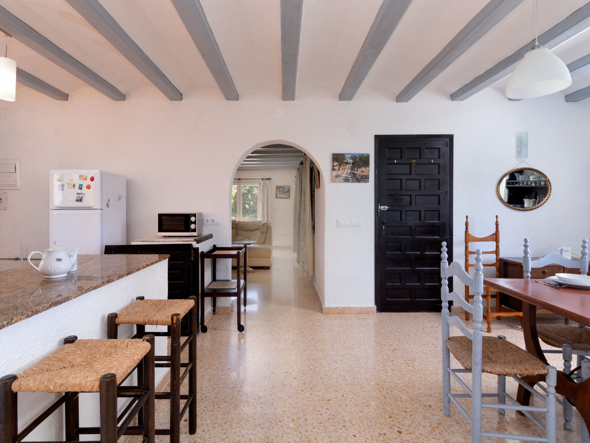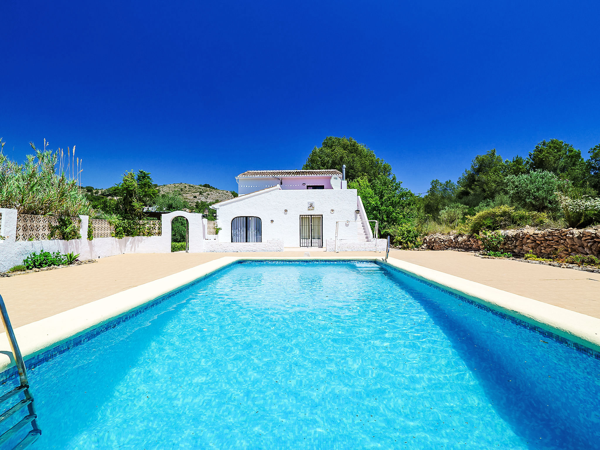 Alter, einfacher Landsitz "Forest", auf 2 Stockwerken. Im Ortsteil Adsubia, alleinstehende, ruhige, sonnige Lage, 4 km vom Meer. Zur Alleinbenutzung: naturbelassenes Grundstück 3'000 m2, Schwimmbad nicht einsehbar (5 x 10 m, 01.01.-31.12.) mit Innentreppe. Im Hause: Alarmanlage. Holprige, schmale Zufahrt (300 m Naturweg). Supermarkt 3 km, Restaurant 1 km, Sandstrand "Arenal" 4 km.