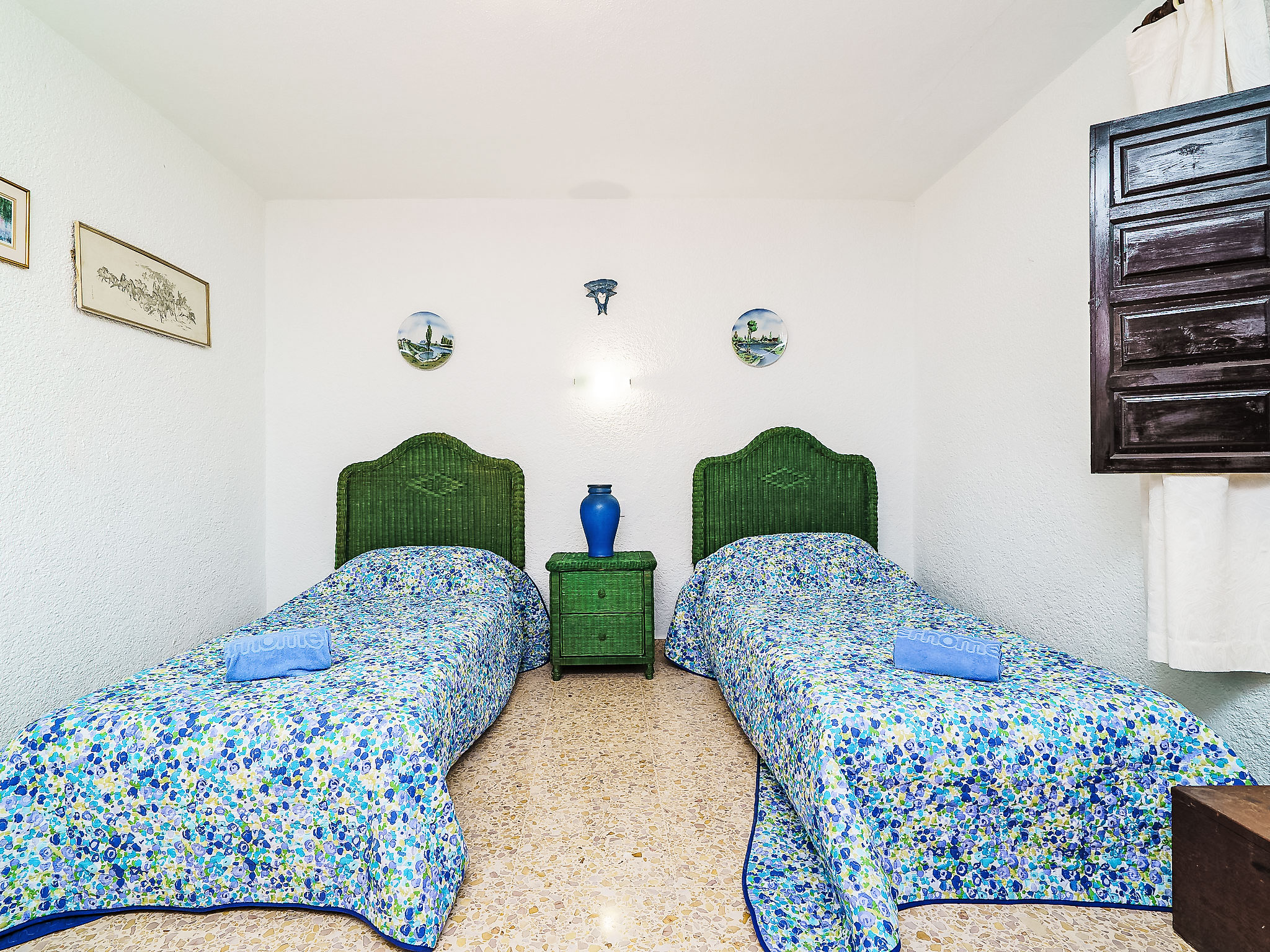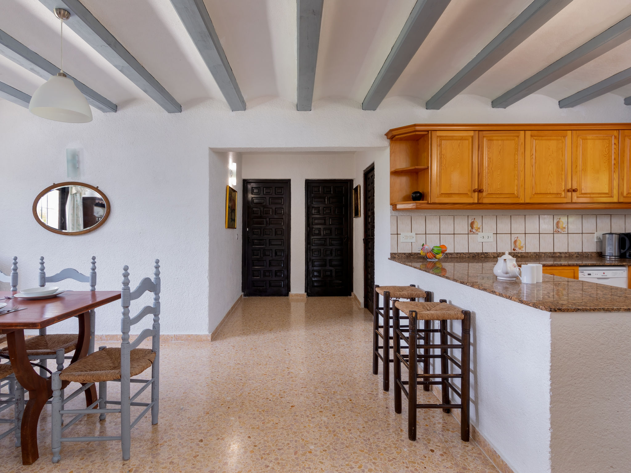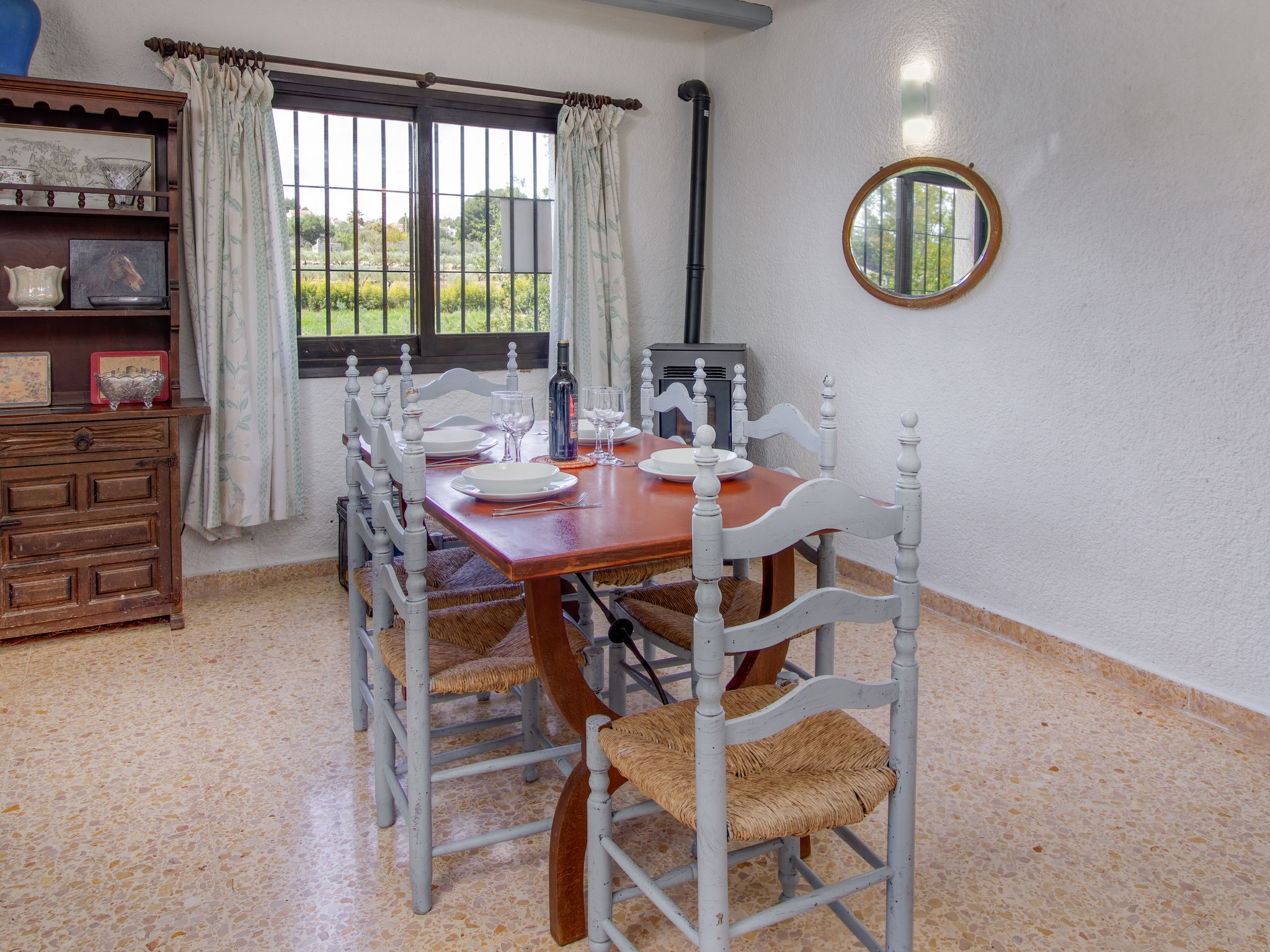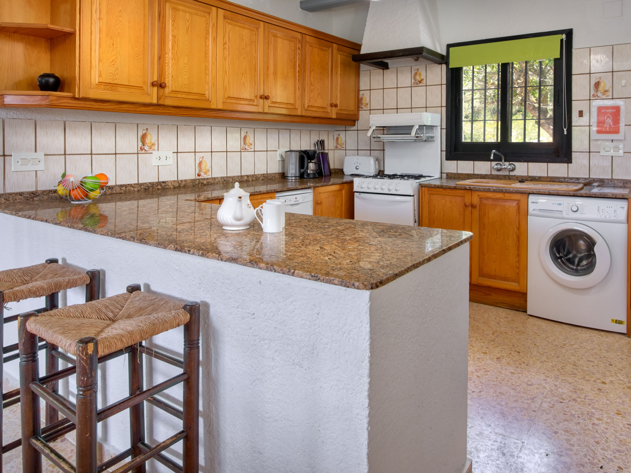 4-Zimmer-Haus 140 m2. Einfach eingerichtet: Wohnzimmer mit Schwedenofen, Sat-TV und Digital-TV (Flachbildschirm), DVD. 1 Zimmer mit 1 franz. Bett (135 cm, Länge 190 cm), Dusche/WC und Klimaanlage. 1 Zimmer mit 2 Betten (90 cm, Länge 200 cm). Grosse Küche (Backofen, Geschirrspüler, Mikrowelle, Tiefkühler, elektrische Kaffeemaschine). Dusche/WC. Obergeschoss: (Aussentreppe) 1 Zimmer mit 2 Betten (90 cm, Länge 190 cm), Dusche/WC. Terrassenmöbel. Sicht auf die Landschaft. Zur Verfügung: Waschmaschine, Bügeleisen, Kinderhochstuhl, Babybett bis 2 Jahre, Haartrockner. Internet (Wireless LAN, gratis). Parkplatz (3 Autos) beim Haus. Bitte beachten: 1 Haustier/Hund erlaubt. TV nur UK, ES. AT448121
