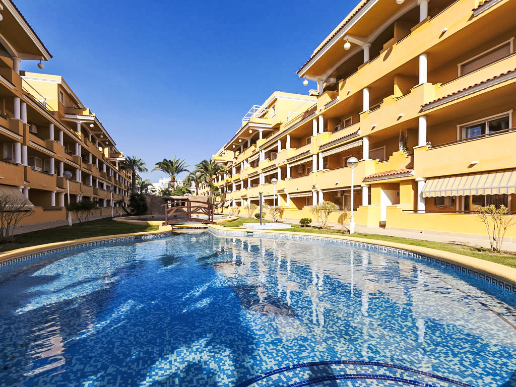Residenz "Cascadas de la Marina", auf 4 Stockwerken, umgeben von Bäumen. Am Ortsrand, 500 m vom Zentrum von Denia, 250 m vom Meer. Zur Mitbenutzung: Garten (eingezäunt) mit Rasen, Schwimmbad (15 x 30 m, 150 - 210 cm tief, saisonale Verfügbarkeit: 01.Jan.-31.Dez.) mit Innentreppe. Kinderbecken, Aussendusche. Im Hause: Fahrstuhl. Supermarkt 1 km, Restaurant 250 m, Bushaltestelle 200 m, Sandstrand 250 m. Sporthafen 1.5 km, Golfplatz (18 Loch) 8 km, Tennis 700 m. Der Besitzer akzeptiert keine Jugendgruppen. Lift.