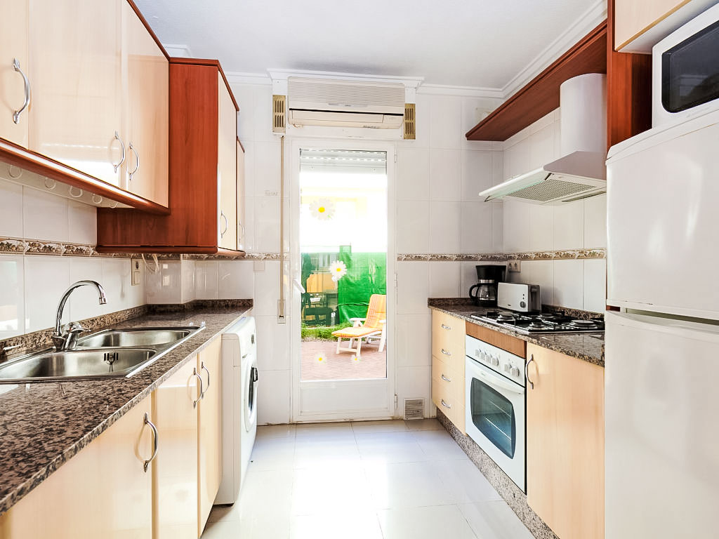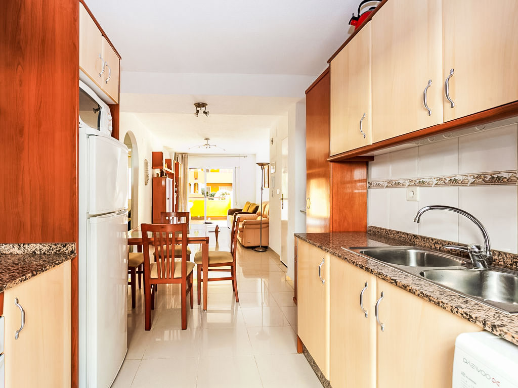 3-Zimmer-Wohnung 60 m2, im Erdgeschoss. Zweckmässig eingerichtet: Wohn-/Esszimmer mit Digital-TV, CD, Klimaanlage und Warmluftheizung. Ausgang zur Terrasse. 1 Zimmer mit 1 franz. Bett (150 cm), Ventilator. 1 Zimmer mit 2 Betten (90 cm), Ventilator. Offene Küche (4 Kochplatten, Backofen, Toaster, Wasserkocher, Mikrowelle, Tiefkühler, elektrische Kaffeemaschine, Kombinationsmikrowelle). Ausgang zur Terrasse. Bad/Bidet/WC. Grosse Terrasse 35 m2, Terrasse überdacht. Terrassenmöbel, Gartengrill (mobil), Liegestühle (2). Sicht auf das Schwimmbad und den Garten. Zur Verfügung: Waschmaschine, Bügeleisen. Internet (Wireless LAN, gratis). Bitte beachten: TV nur ES. AT-434961-A