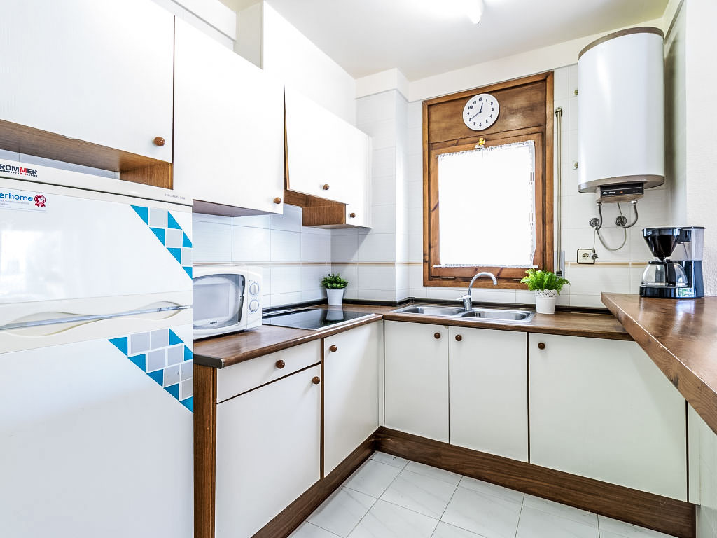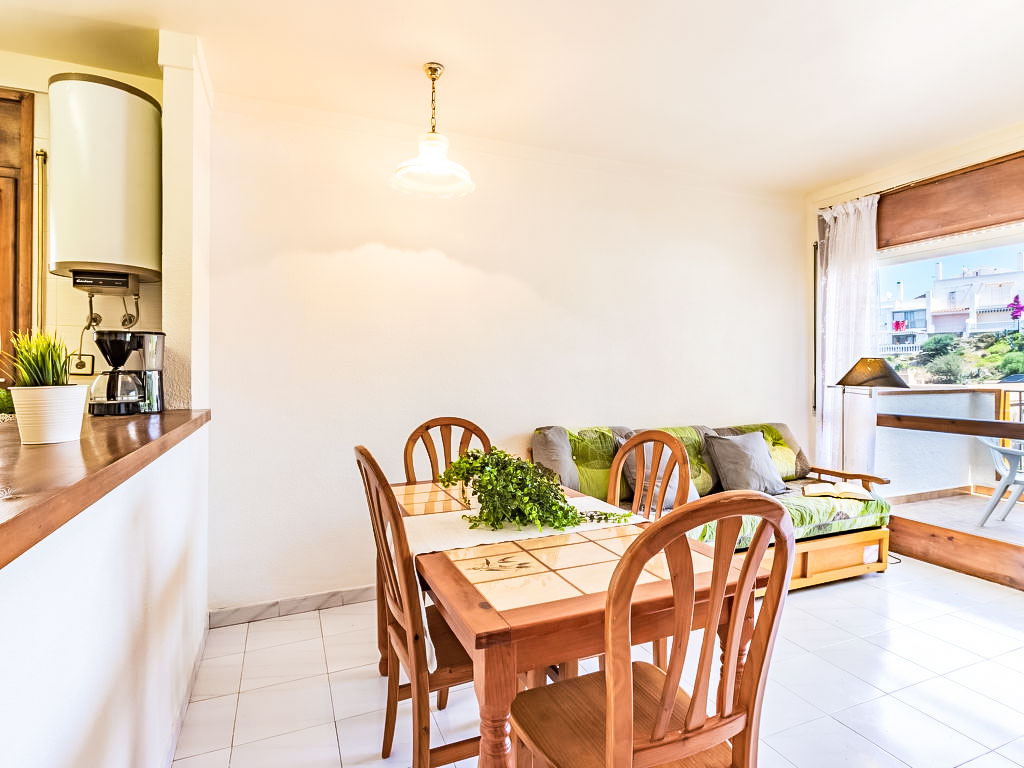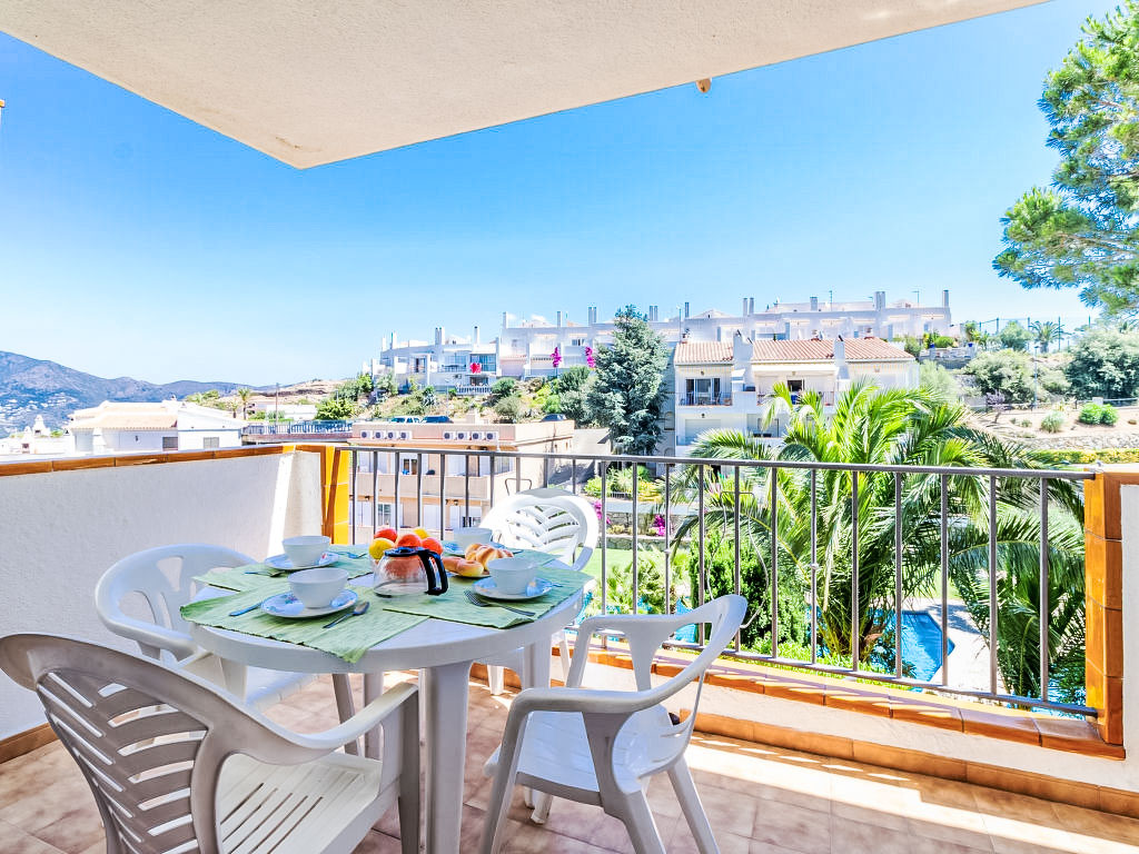 Puigrom: Kinderfreundliche Residenz "Els Jardins III". Im Ortsteil Puigrom, 3 km vom Zentrum von Roses, ruhige, sonnige Lage auf einem Hügel, im Villenviertel, verkehrsberuhigte Zone, 2 km vom Meer. Zur Mitbenutzung: Garten Pflanzen und Bäumen, Schwimmbad eckig (14 x 7 m, saisonale Verfügbarkeit: 01.Jun.-30.Aug.). Kinderbecken. Supermarkt 2.5 km, Restaurant 3 km, Bushaltestelle 2.5 km, Bahnstation "Figueres" 15 km, Sandstrand "Canyelles Petites" 2 km, Hallenbad 4 km. Sporthafen 2 km, Golfplatz 15 km, Tennis 4 km. Nahe gelegene Sehenswürdigkeiten: Skydive y túnel del viento Empuriabrava 10 km, Parque Acuático Aquabrava Roses 5 km, Museo Dalí Figueres 24 km, Castillo y casino de Perelada 24 km, Monasterio de Sant Pere de Rodes 23 km, Cadaqués 17 km. Bitte beachten: Fahrzeug empfohlen. In diesem Haus sind weitere Ferienwohnungen mietbar.