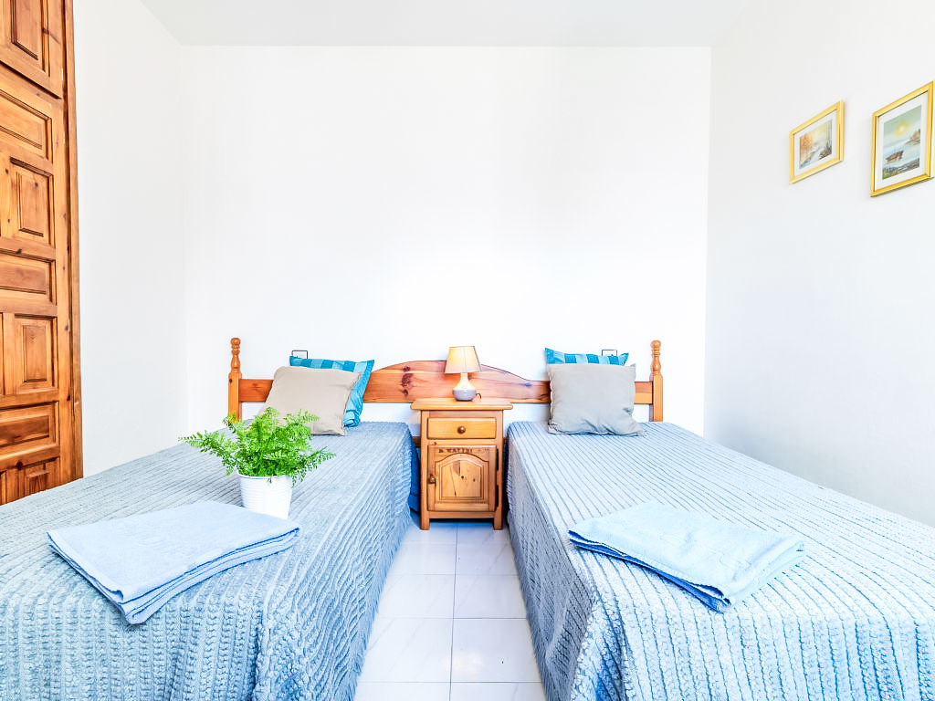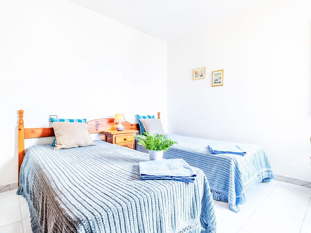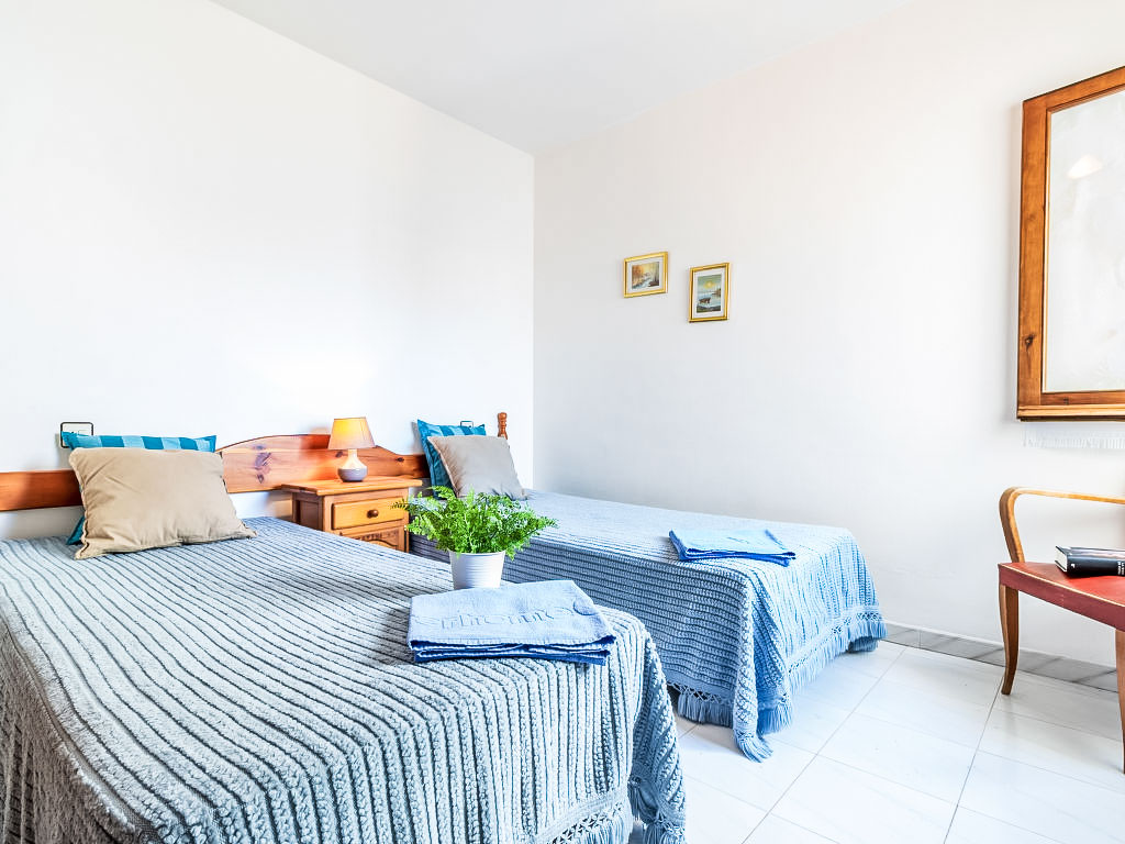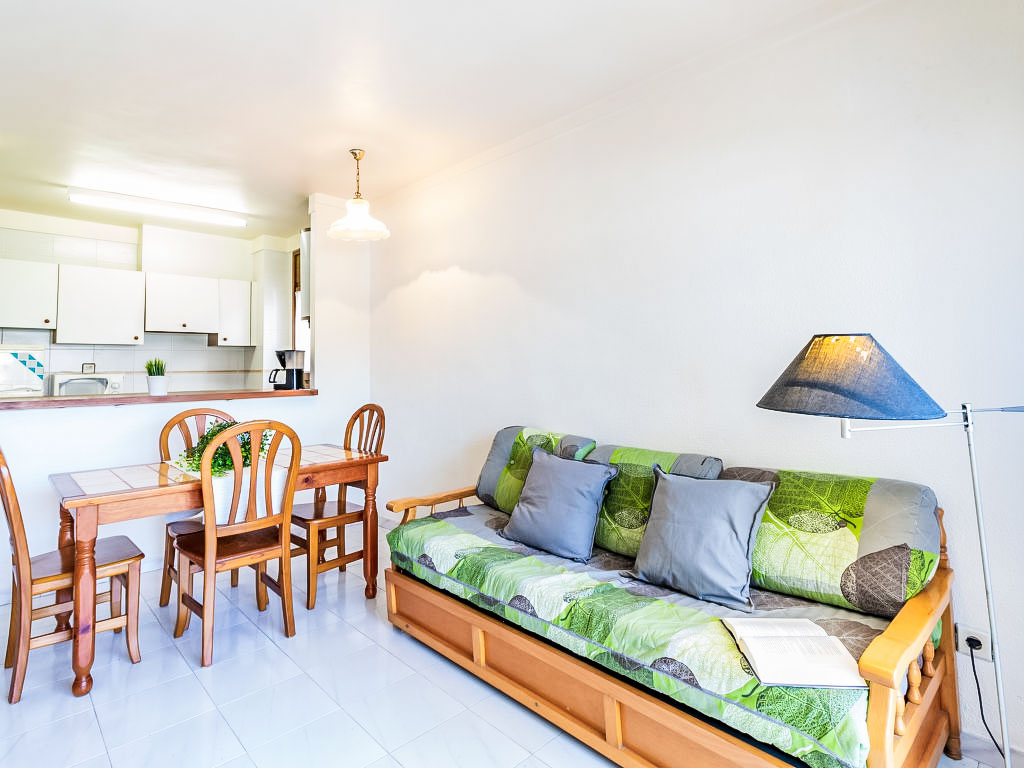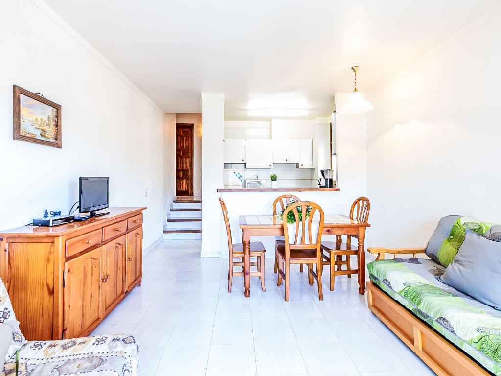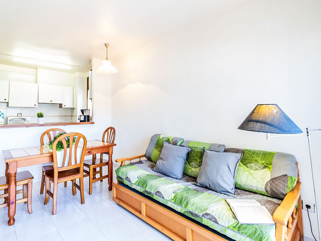 2-Zimmer-Wohnung 45 m2, im Erdgeschoss. Einfach eingerichtet: Wohn-/Esszimmer mit 1 Doppeldiwanbett und TV. 1 Zimmer mit 2 Betten. Offene Küche (2 Kochplatten, Mikrowelle, Tiefkühler) mit Bar. Bad, sep. WC. Terrasse. Terrassenmöbel. Sicht auf das Schwimmbad. Bitte beachten: 1 kleines Haustier/Hund erlaubt. TV nur FR. HUTG010224