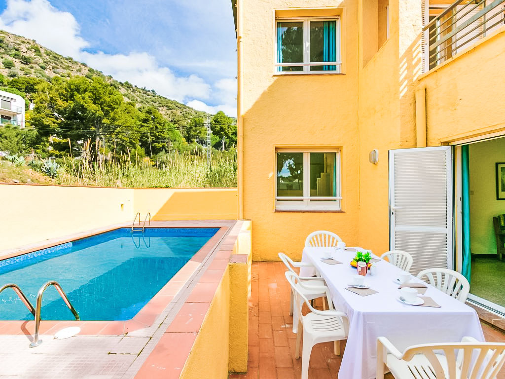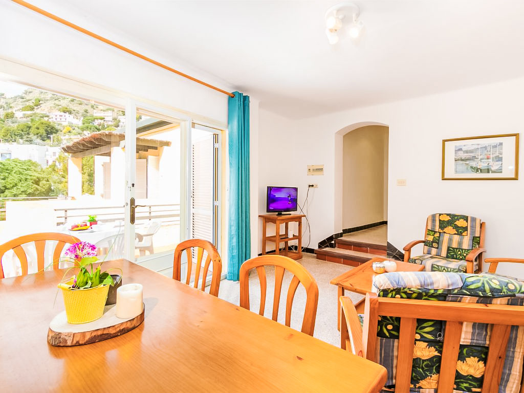 Canyelles Petites: Gemütliche, einfache, komfortable Ferienanlage "Velazquez". Canyelles Petites, im Ort, 4 km vom Zentrum von Roses, ruhige, sonnige Lage am Hang, 60 m vom Meer, 60 m vom Strand, Strasse zu überqueren. Zur Mitbenutzung: Schwimmbad eckig (10 x 4 m, 80 - 180 cm tief, saisonale Verfügbarkeit: 12.Mai.-30.Sep.) mit Innentreppe. Im Hause: Wireless LAN. Einkaufsgeschäft, Lebensmittelgeschäft, Supermarkt 150 m, Restaurant 100 m, Bar, Café 20 m, Fußgängerzone 30 m, Bushaltestelle 100 m, Sandstrand "Canyelles Petites", Badebucht 60 m. Sporthafen 3 km, Golfplatz 20 km, Tennis 5 km, Reitstall 10 km. Nahe gelegene Sehenswürdigkeiten: Parque Acuático Aquabrava Roses 6 km, Skydive y túnel del viento Empuriabrava 11 km, Cadaqués 18 km, Castillo y casino de Perelada 25 km, Monasterio de Sant Pere de Rodes 24 km, Museo Dalí Figueres 24 km. Bitte beachten: In diesem Haus sind weitere Ferienwohnungen mietbar. Die Wohnungen sind terrassiert und hangabwärts angelegt. Die Terrassen der Wohnungen sind miteinander verbunden. Die Wohnungen und das Schwimmbad sind über eine Treppe von oben herab erreichbar. 200 m vom Strand von Canyelles Petites gelegen, einer der schönsten Strände von Roses. Bitte beachten: In der Wohnanlage wohnen hauptsächlich Familien. Gemäss dem Reglement der Siedlung wird ab 23 Uhr Ruhe verlangt. Garage Privat ausser ref es9410.383.3 Bitte beachten : Wohnungen ohne Heizung.