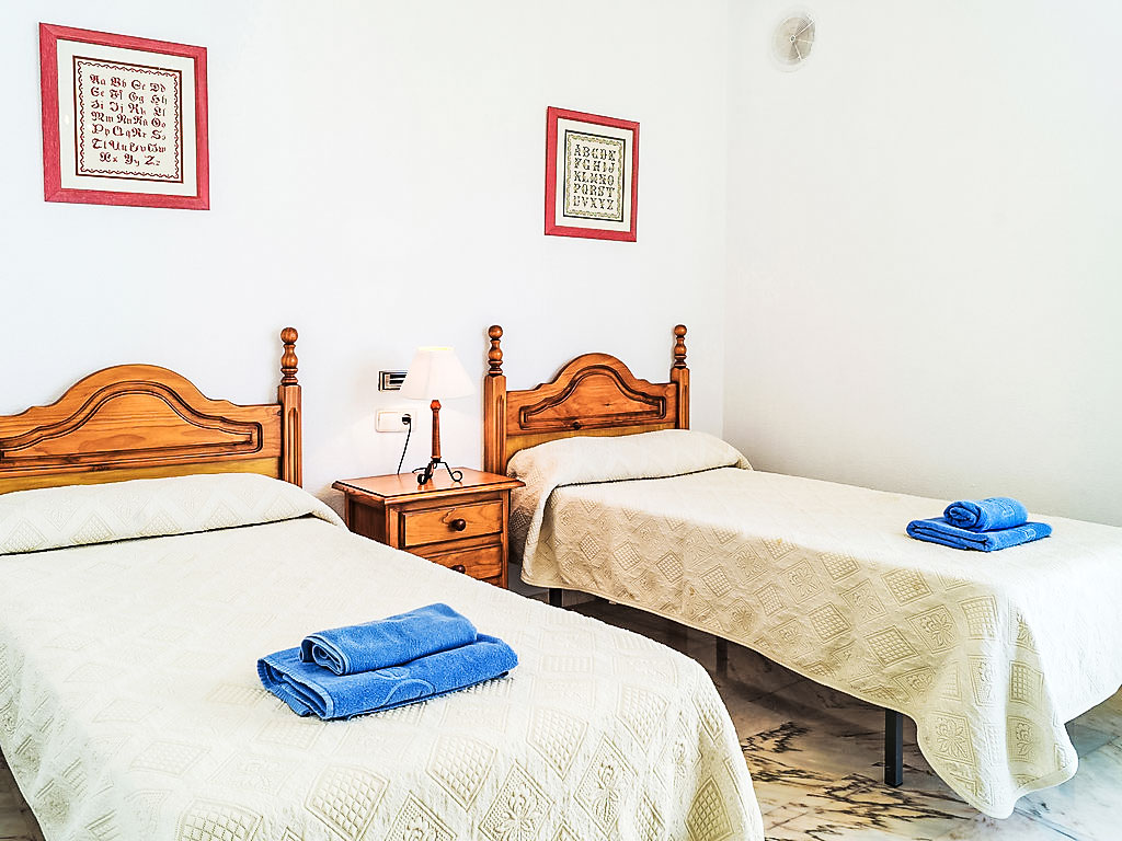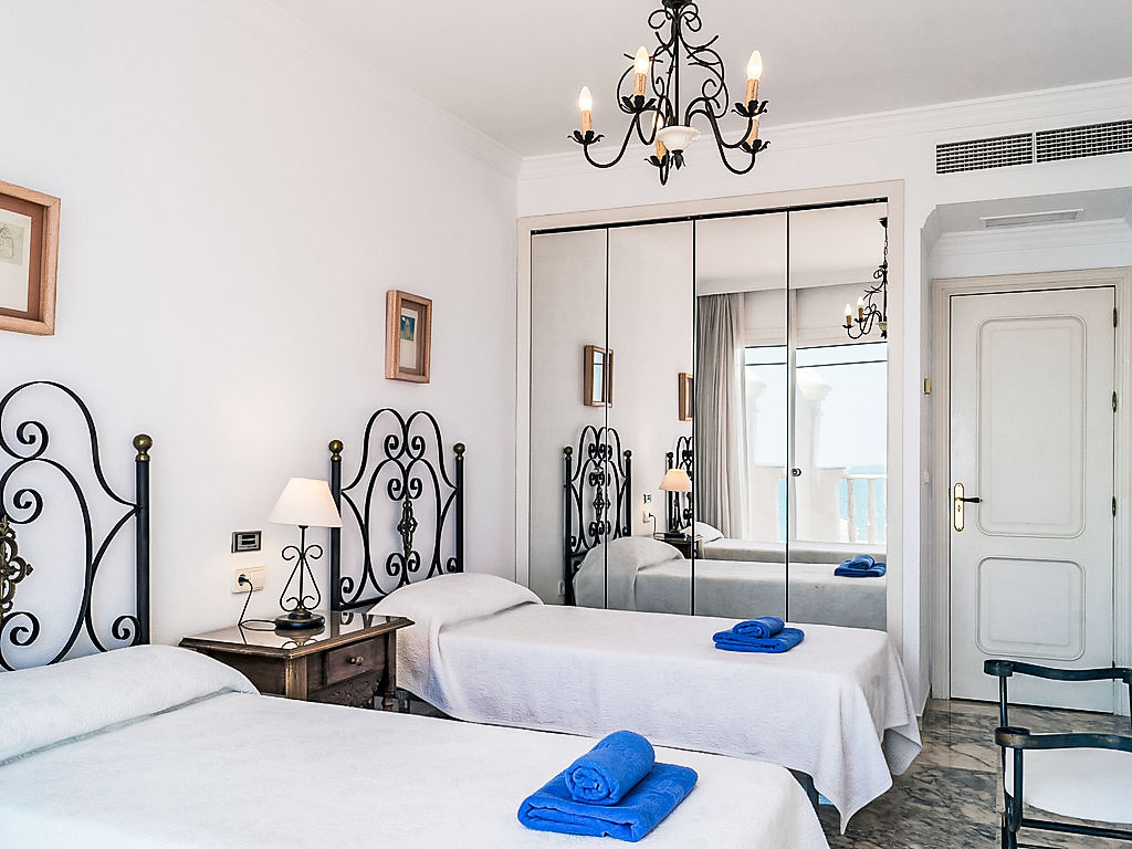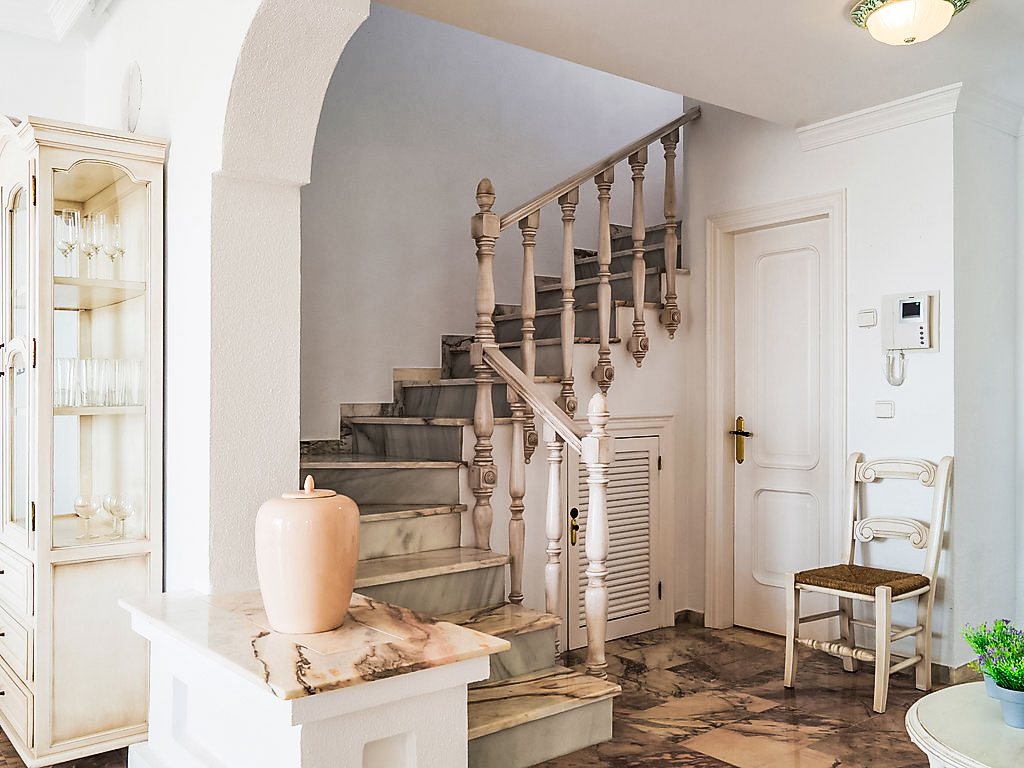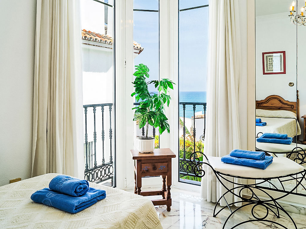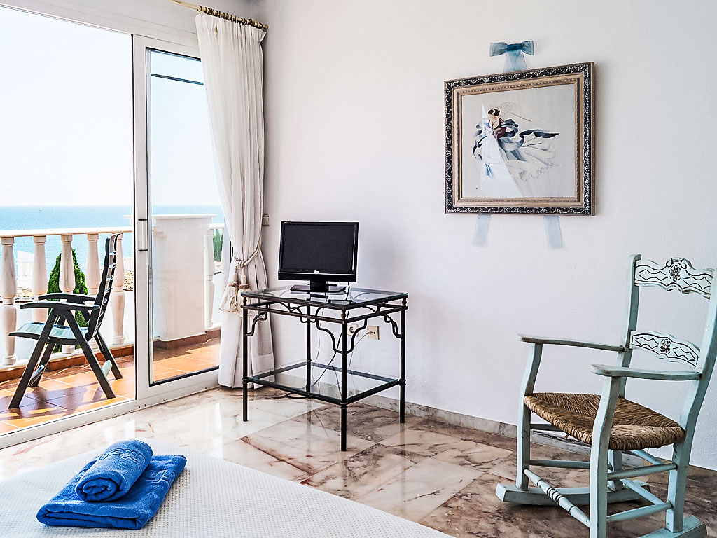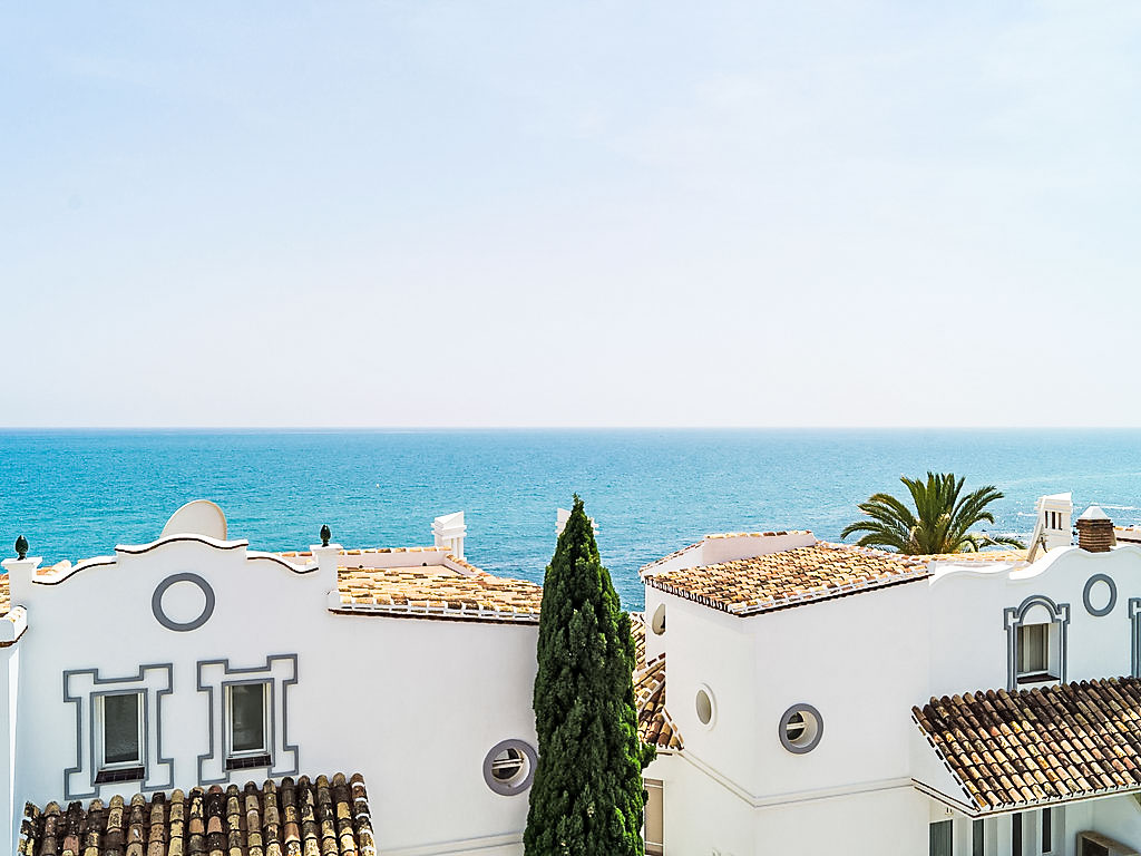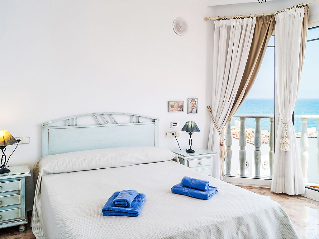 "Mijas Beach", 4-Zimmer-Reihenhaus 230 m2 auf 3 Stockwerken. Objekt geeignet für 6 Erwachsene + 2 Kinder. Teilweise renoviert im Jahre 2016: Wohn-/Esszimmer 40 m2 mit 1 Doppeldiwanbett (135 cm, Länge 190 cm), Digital-TV, Klimaanlage und Warmluftheizung. Ausgang zur Terrasse. Küche (Backofen, Geschirrspüler, 4 Glaskeramikherd Platten, Mikrowelle, Tiefkühler). Sep. WC. Fussbodenheizung. Obergeschoss: 1 Zimmer mit 1 franz. Bett, Bad/Bidet/WC, Waschbecken und TV. Ausgang zur Terrasse. 1 Zimmer mit 2 Betten und TV. Ausgang zur Terrasse. 1 Zimmer mit 2 Betten. Bad/Bidet/WC. Fussbodenheizung. Terrasse 20 m2. Sicht auf das Meer. Zur Verfügung: Waschmaschine, Kinderhochstuhl, Babybett. Internet (Wireless LAN, gratis). VFT/MA/10340