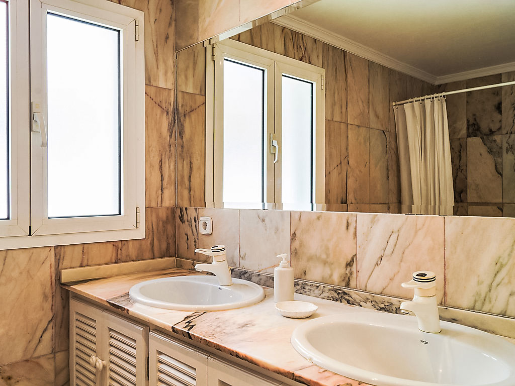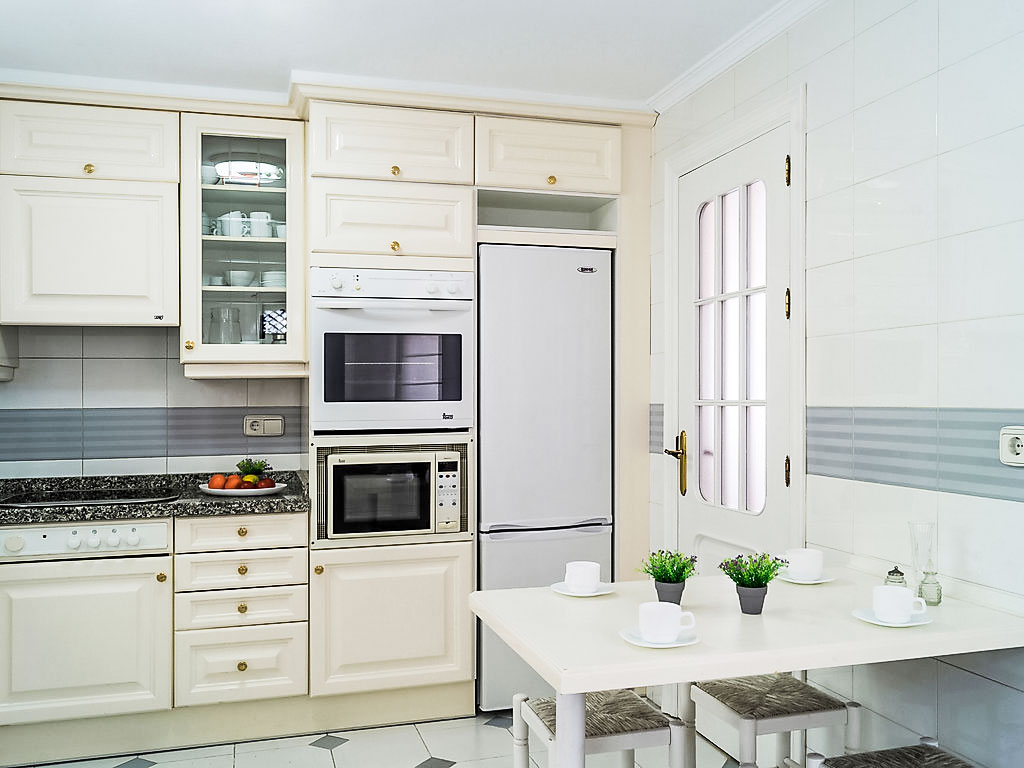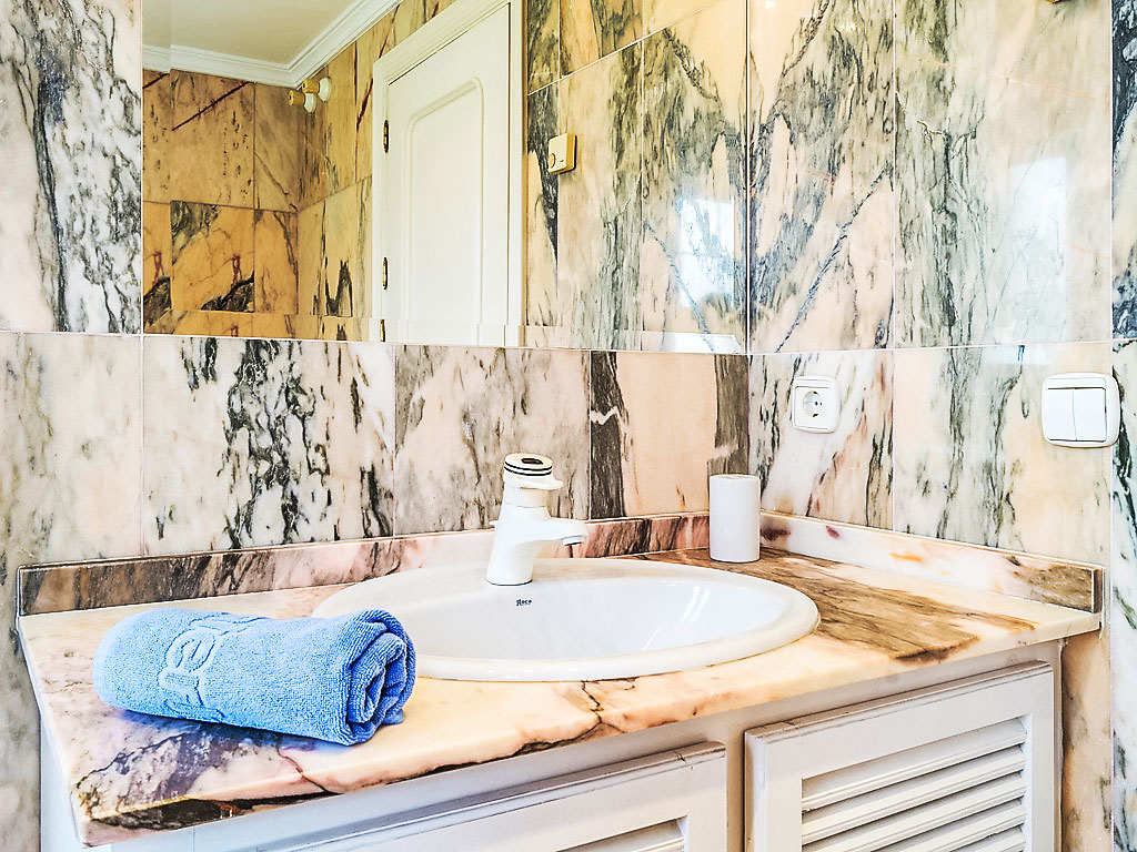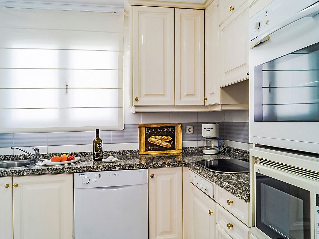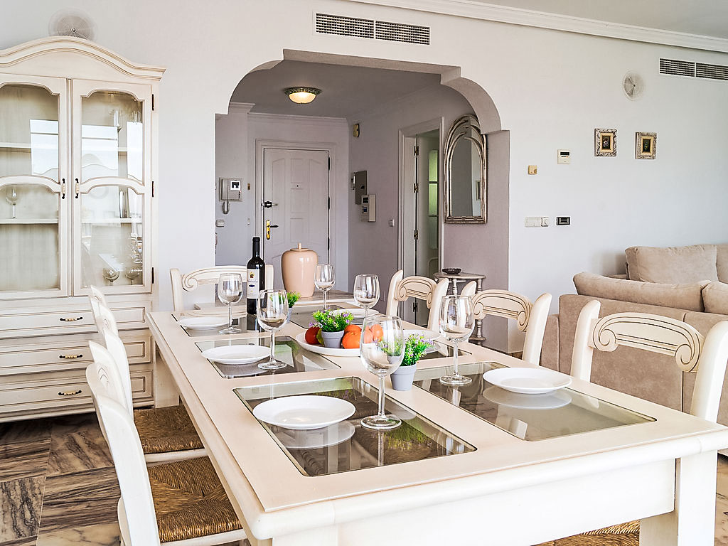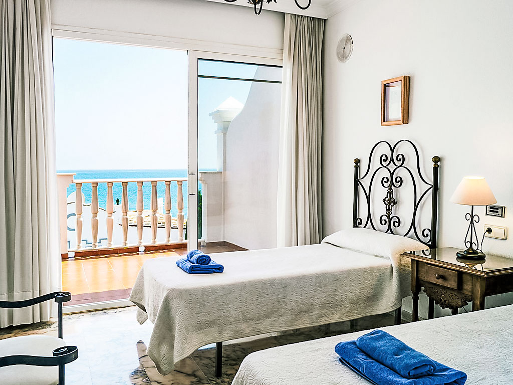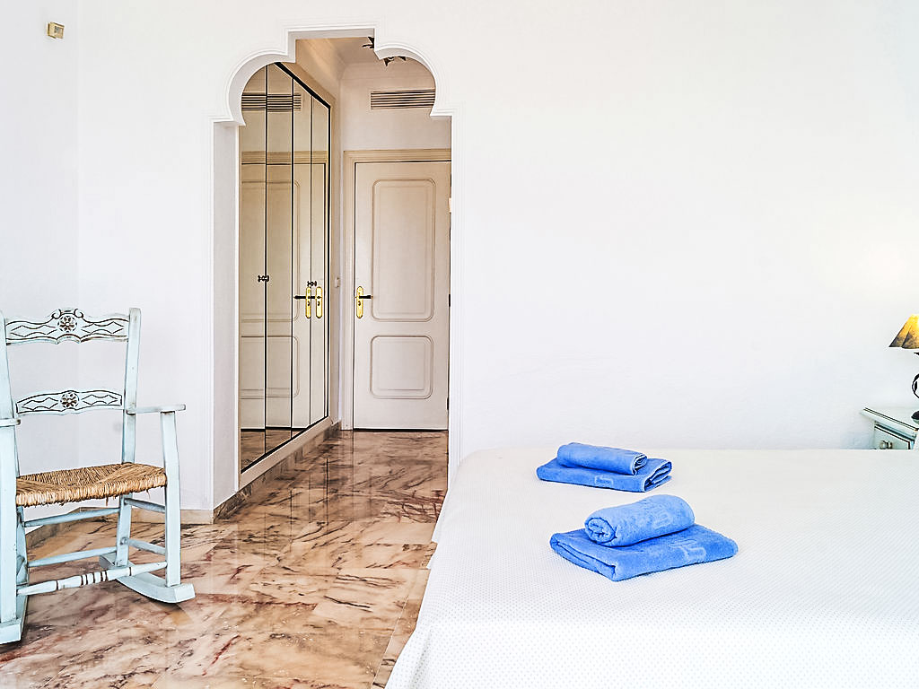 "Mijas Beach", 4-Zimmer-Reihenhaus 230 m2 auf 3 Stockwerken. Objekt geeignet für 6 Erwachsene + 2 Kinder. Teilweise renoviert im Jahre 2016: Wohn-/Esszimmer 40 m2 mit 1 Doppeldiwanbett (135 cm, Länge 190 cm), Digital-TV, Klimaanlage und Warmluftheizung. Ausgang zur Terrasse. Küche (Backofen, Geschirrspüler, 4 Glaskeramikherd Platten, Mikrowelle, Tiefkühler). Sep. WC. Fussbodenheizung. Obergeschoss: 1 Zimmer mit 1 franz. Bett, Bad/Bidet/WC, Waschbecken und TV. Ausgang zur Terrasse. 1 Zimmer mit 2 Betten und TV. Ausgang zur Terrasse. 1 Zimmer mit 2 Betten. Bad/Bidet/WC. Fussbodenheizung. Terrasse 20 m2. Sicht auf das Meer. Zur Verfügung: Waschmaschine, Kinderhochstuhl, Babybett. Internet (Wireless LAN, gratis). VFT/MA/10340