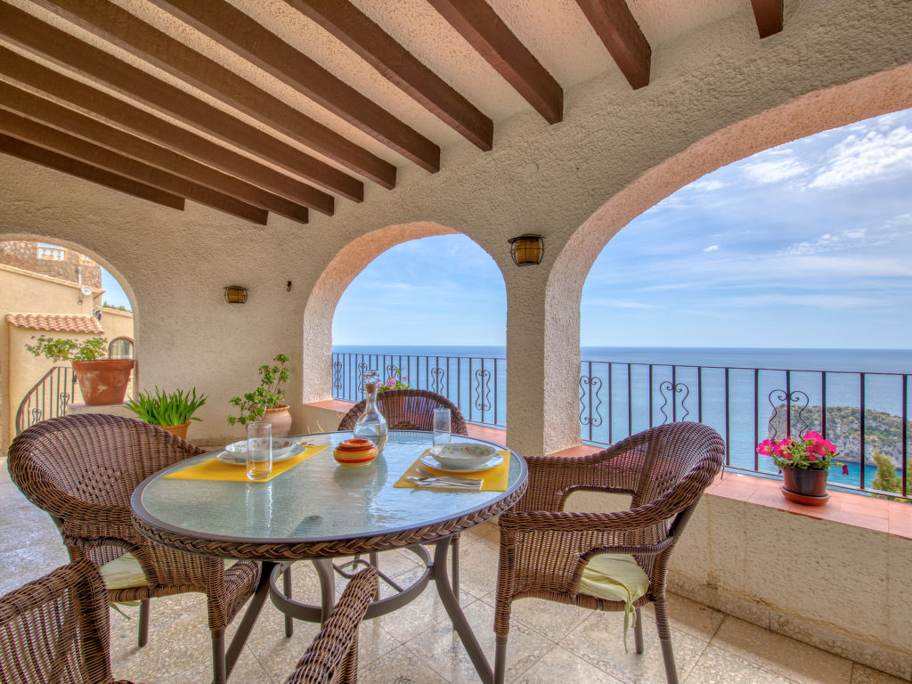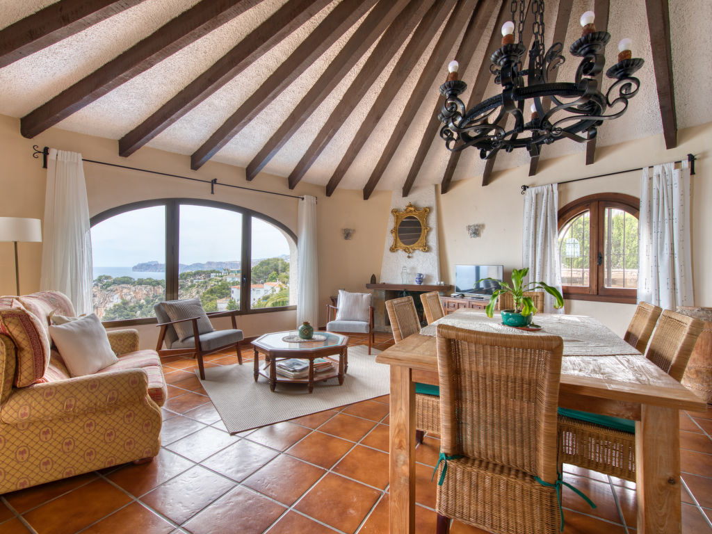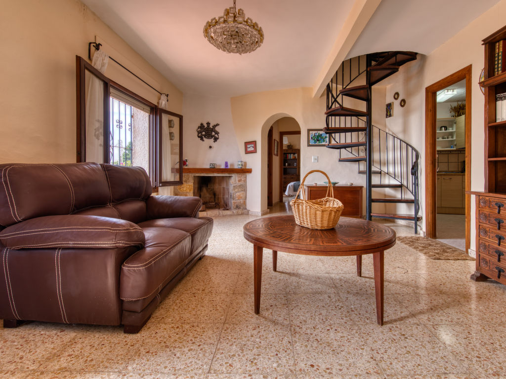 5-Zimmer-Haus 139 m2. Zweckmässig eingerichtet: Wohn-/Esszimmer mit offenem Kamin und Digital-TV. Ausgang zur Terrasse. 1 Zimmer mit 1 Ausziehbett (2 x 80 cm, Länge 190 cm). 1 Zimmer mit 2 Betten (200 cm, Länge 200 cm). Küche (4 Kochplatten, Tiefkühler, elektrische Kaffeemaschine). Dusche/WC. Unteres Geschoss: (Wendeltreppe) Wohnzimmer mit offenem Kamin. Ausgang zur Terrasse. 1 Zimmer mit 1 franz. Bett (160 cm, Länge 200 cm). Küche (4 Kochplatten, Backofen, Mikrowelle, Tiefkühler) mit Esstisch. Dusche/WC. Liegestühle (2). Herrliche Panoramasicht auf das Meer. Zur Verfügung: Waschmaschine, Bügeleisen, Kinderhochstuhl, Babybett. Internet (Wireless LAN, gratis). Parkplatz beim Haus. Bitte beachten: Parkplatz nur für kleine Wagen. 1 Haustier/Hund erlaubt. TV nur ES. AT449047A