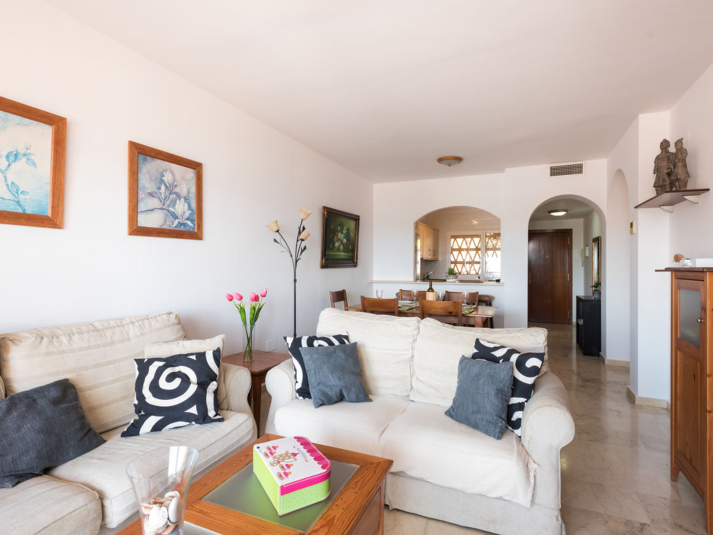 Appartementhaus "La Joya", Baujahr 2002. 2 km vom Zentrum von Fuengirola, ausserhalb des Ortes, 5 km vom Zentrum von La cala de mijas, erhöhte Lage, 200 m vom Meer. Zur Mitbenutzung: Garten mit Rasen, Schwimmbad (saisonale Verfügbarkeit: 01.Jan.-31.Dez.). Kinderbecken, Aussendusche, Parkplatz. Supermarkt 600 m, Einkaufszentrum 2 km, Restaurant 100 m, Sandstrand 200 m. Bitte beachten: Hauptstrasse 50 m vom Haus. Es gibt einen Gratiszug, der innerhalb der Urbanisation verkehrt.