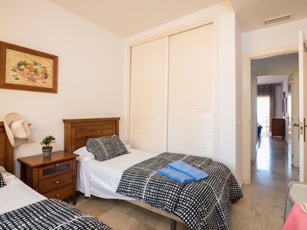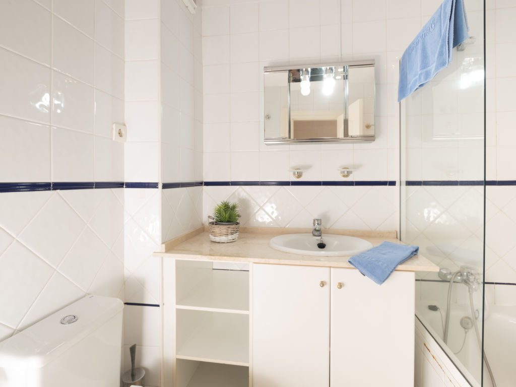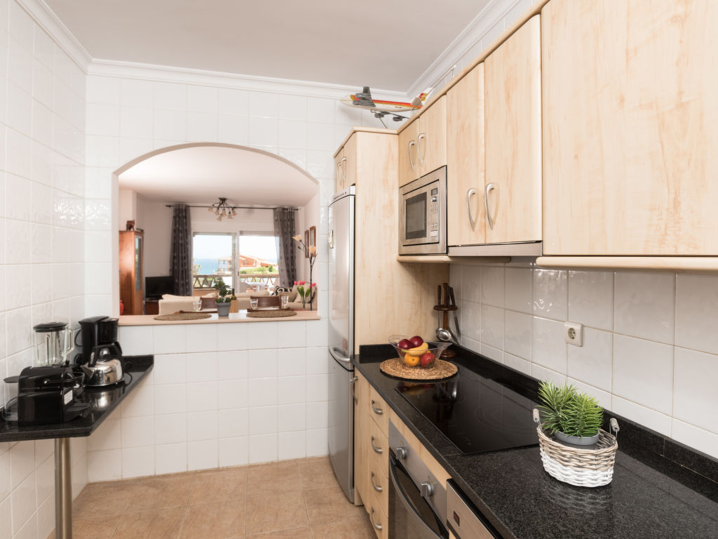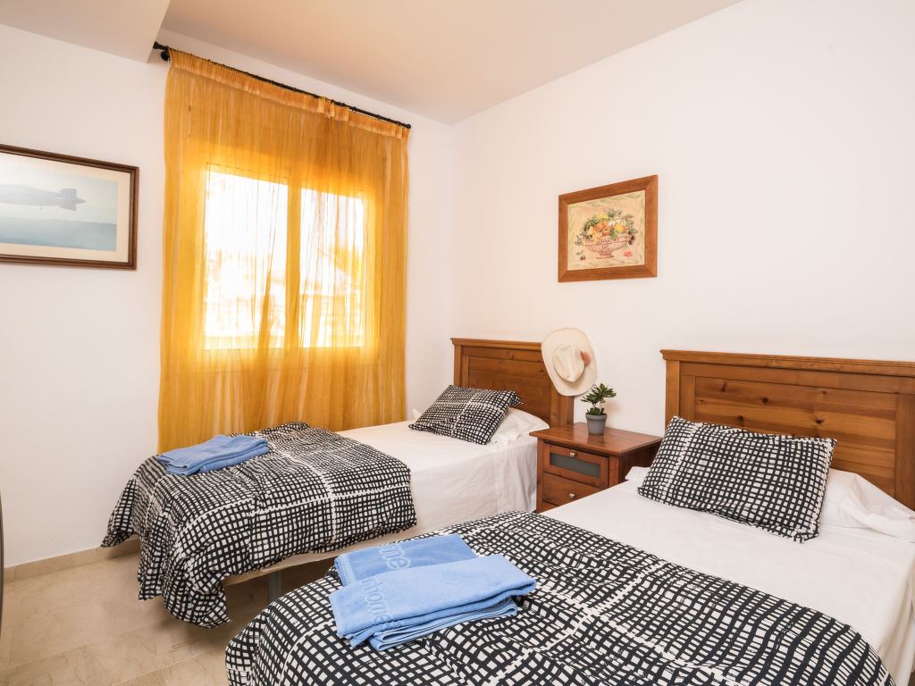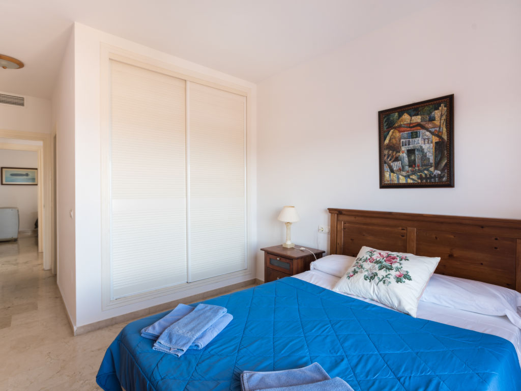 "La joya", 3-Zimmer-Wohnung 80 m2 im 2. Stock, Südwestlage. Komfortabel eingerichtet: Wohn-/Esszimmer mit 1 Diwanbett, Esstisch, Sat-TV, DVD und Klimaanlage. Ausgang zur Terrasse. 1 Zimmer mit 2 Betten (90 cm). 1 Zimmer mit 1 franz. Bett (135 cm, Länge 190 cm), Bad/Bidet/WC. Ausgang zur Terrasse. Küche (Geschirrspüler, 4 Glaskeramikherd Platten, Mikrowelle, elektrische Kaffeemaschine). Dusche/WC. Klimaanlage, Warmluftheizung. Terrasse 20 m2, Südwestlage. Terrassenmöbel, Gartengrill. Sicht auf das Meer. Zur Verfügung: Waschmaschine, Wäschetrockner. Internet (Wireless LAN, gratis). Parkplatz beim Haus. Maximal 1 Haustier/Hund erlaubt. VFT/MA/19679