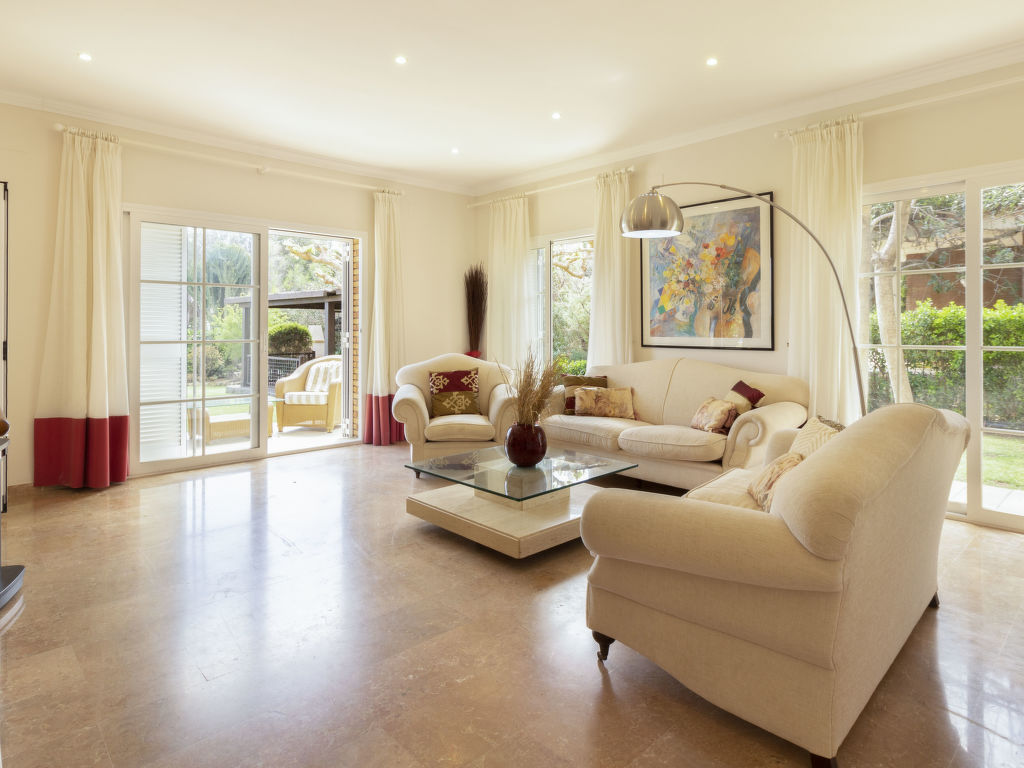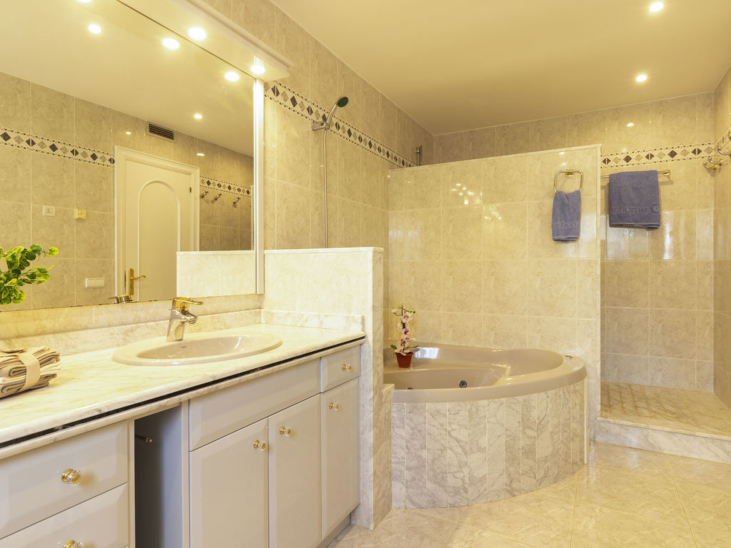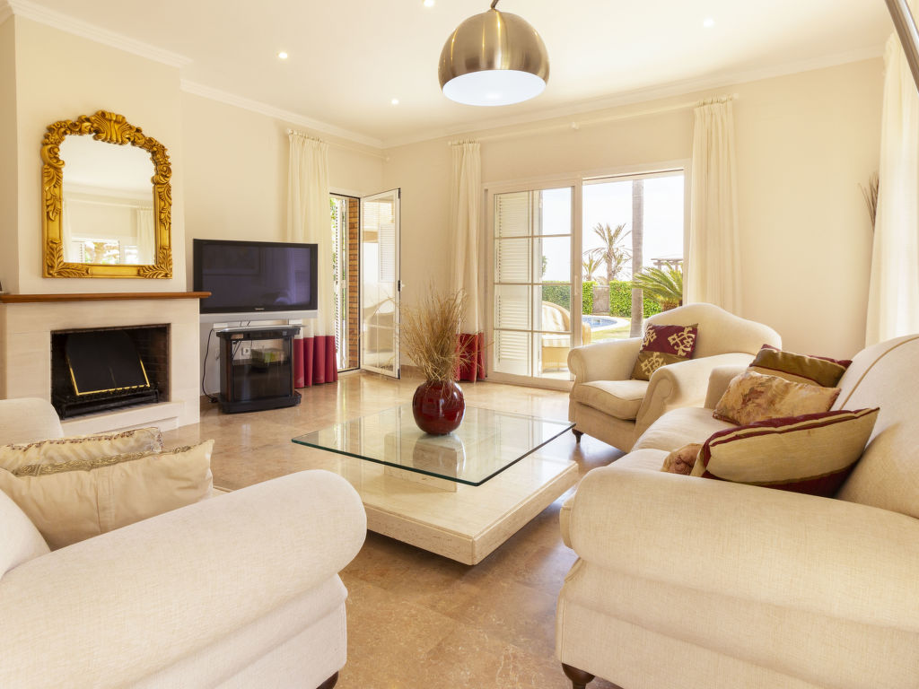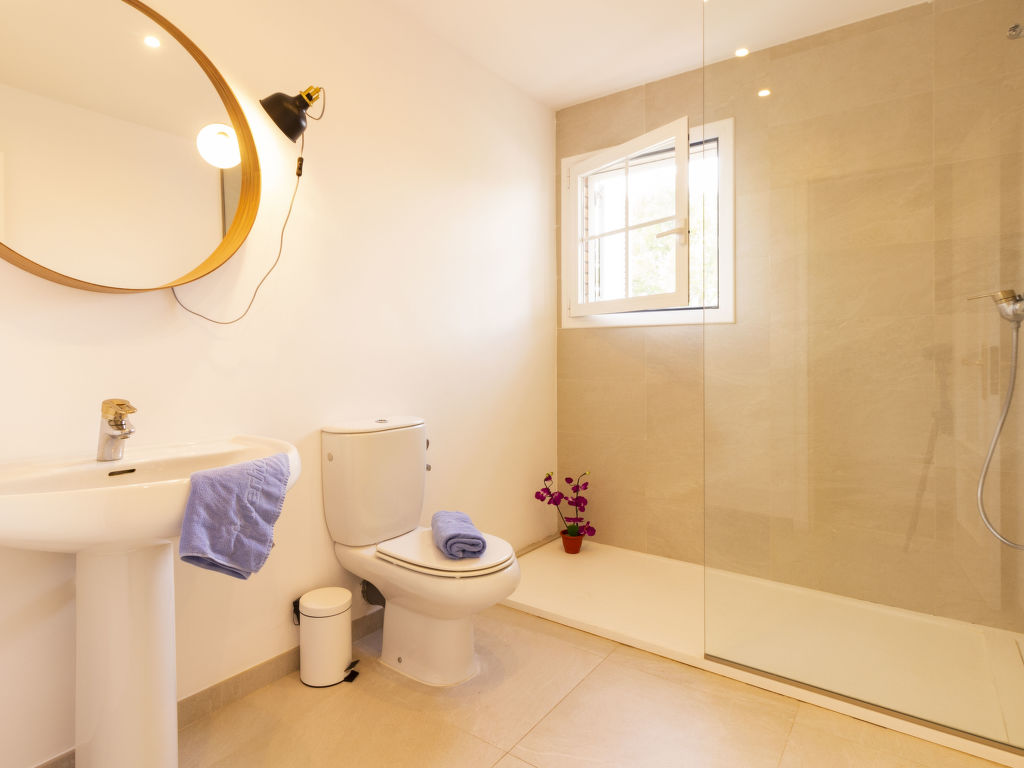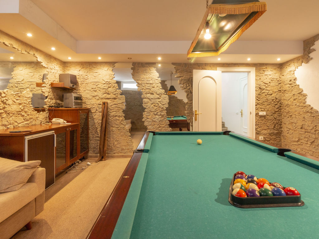 "Villa Cala Vidre B", 7-Zimmer-Villa 400 m2 auf 2 Stockwerken. Geräumig, luxuriös und stilvoll eingerichtet: Wohn-/Esszimmer mit offenem Kamin, Esstisch, Sat-TV, Digital-TV und E-Heizung. Ausgang zum Gartensitzplatz. Küche (Backofen, Geschirrspüler, 4 Glaskeramikherd Platten, Toaster, Wasserkocher, Mikrowelle, Tiefkühler, elektrische Kaffeemaschine). Sep. WC. Obergeschoss: 1 Zimmer mit 1 Doppelbett (180 cm), Bad/Bidet/WC. Ausgang zum Balkon. 2 Zimmer, jedes Zimmer mit 1 franz. Bett (150 cm). 1 Zimmer mit 2 Betten (90 cm). Bad/WC, Dusche/WC. Klimaanlage. Grosser Gartensitzplatz. Terrassenmöbel, Gartengrill. Herrliche Sicht auf das Meer. Zur Verfügung: Waschmaschine, Wäschetrockner, Sauna, Bügeleisen, Kinderhochstuhl, Babybett, Haartrockner. Internet (Wireless LAN, gratis). Bitte beachten: TV nur ES, DE, FR. HUTTE000371