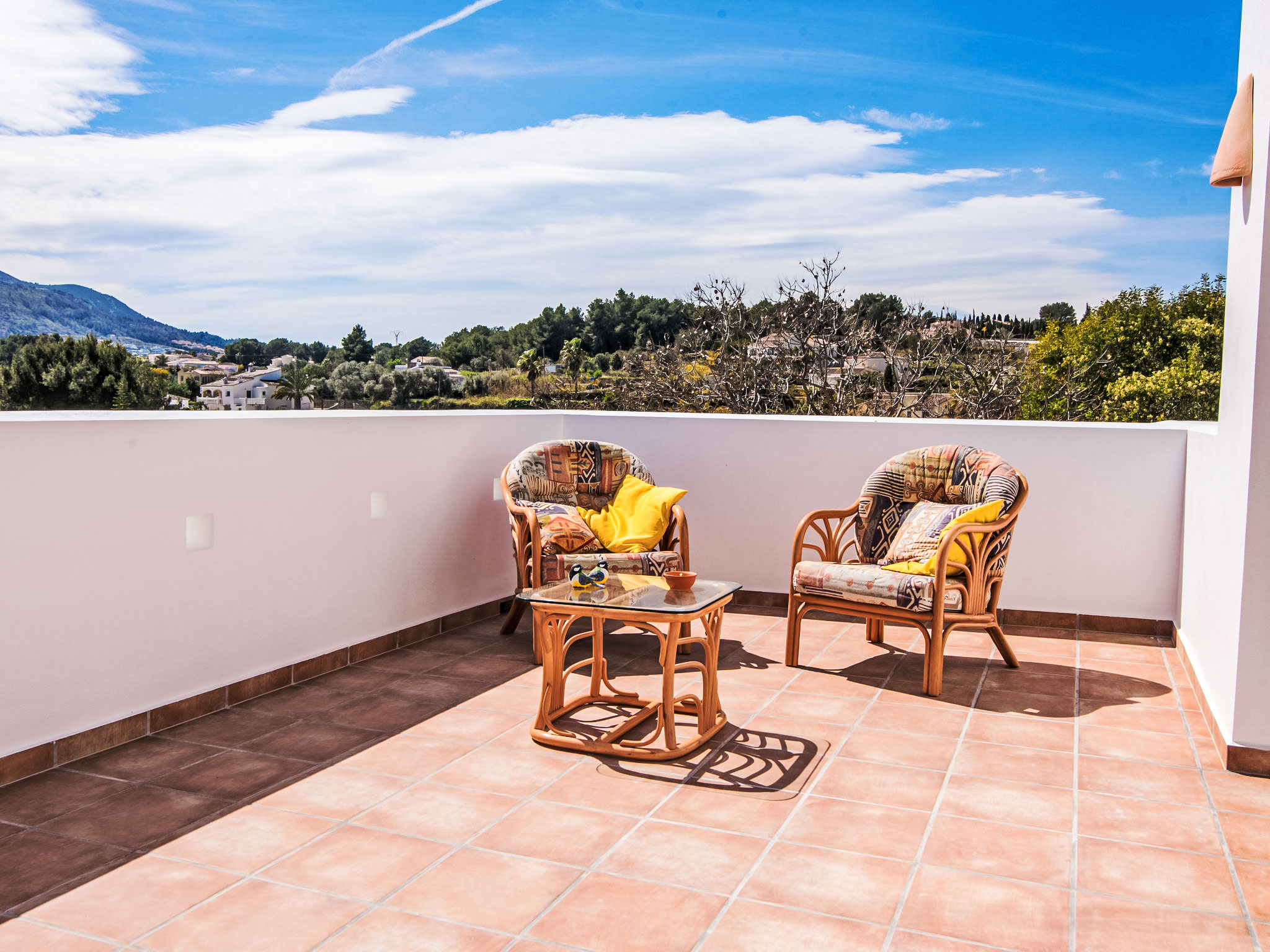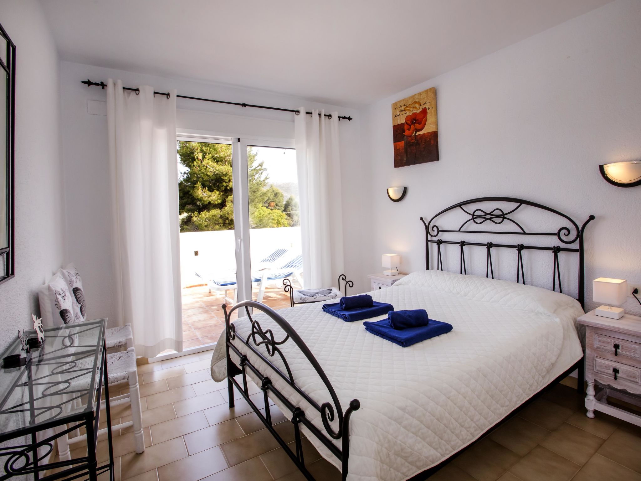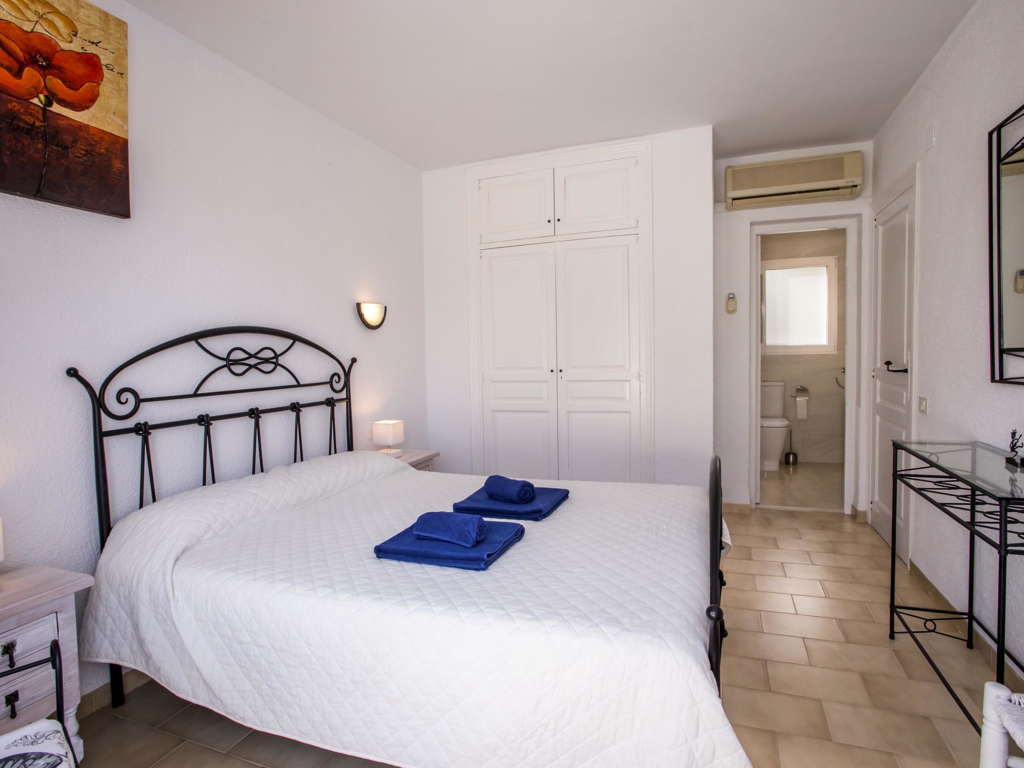 4-Zimmer-Haus 145 m2. Zweckmässig und komfortabel eingerichtet: Wohn-/Esszimmer mit Schwedenofen, Sat-TV, Flachbildschirm, Stereoanlage, DVD und Klimaanlage. Ausgang zur Terrasse. 1 Zimmer mit 1 franz. Bett (150 cm, Länge 190 cm). 1 Kinderzimmer mit 1 x 2 Etagenbetten (90 cm, Länge 190 cm). Küche (4 Kochplatten, Backofen, Geschirrspüler, Mikrowelle, Tiefkühler, elektrische Kaffeemaschine). Ausgang zur Loggia. Dusche/WC. Obergeschoss: 1 Zimmer mit 1 franz. Bett (150 cm, Länge 190 cm), Bad/WC, Doppelwaschbecken und Klimaanlage. Ausgang zur Terrasse. Terrasse 40 m2, grosse Terrasse 60 m2. Terrassenmöbel, Gartengrill, Liegestühle (6). Schöne Sicht auf die Landschaft. Zur Verfügung: Waschmaschine, Bügeleisen, Kinderhochstuhl, Babybett bis 3 Jahre, Haartrockner. Internet (Wireless LAN, gratis). Parkplatz (überdacht, eingezäunt) beim Haus. Bitte beachten: Nichtraucher-Haus. AT444594A