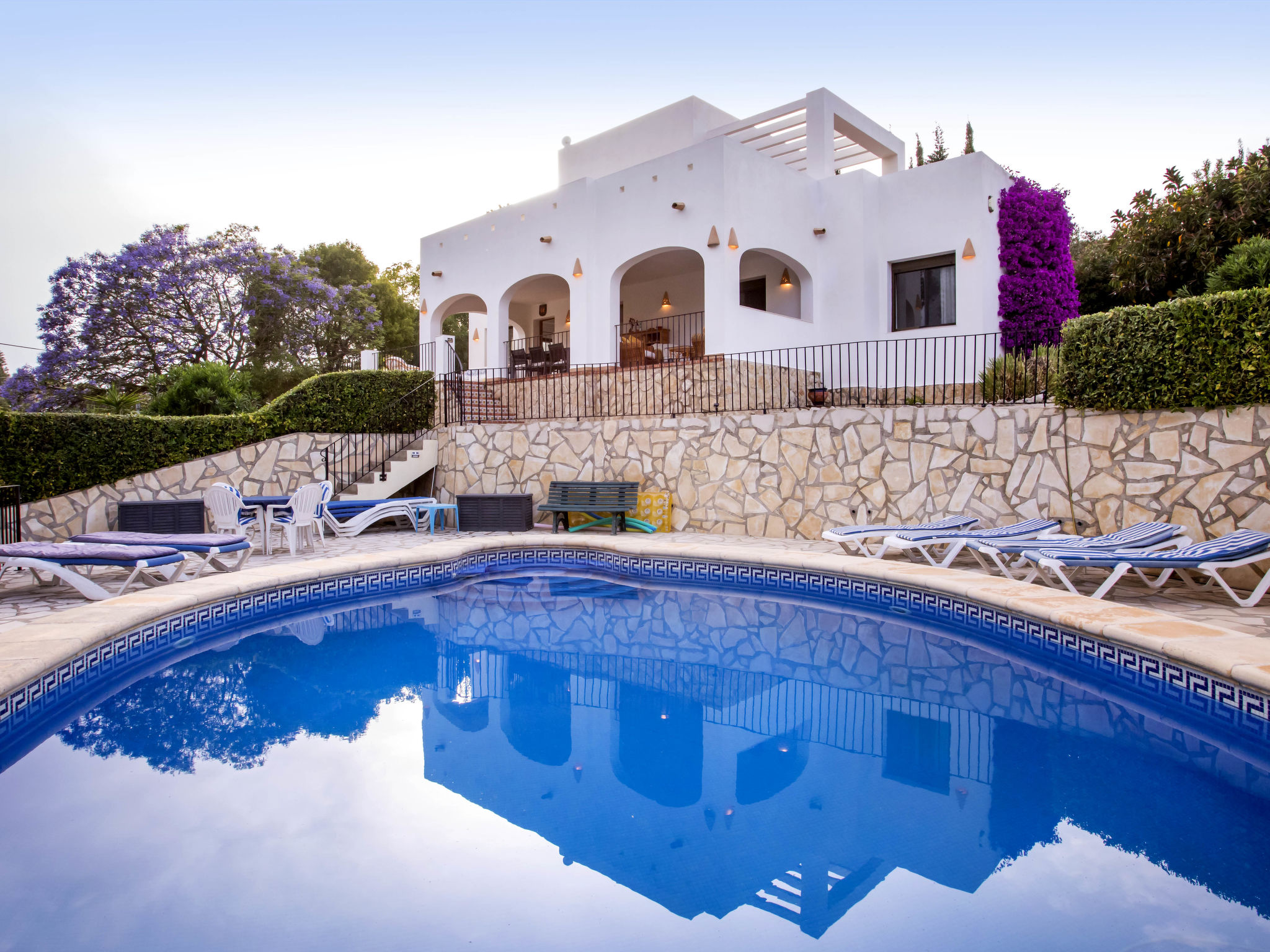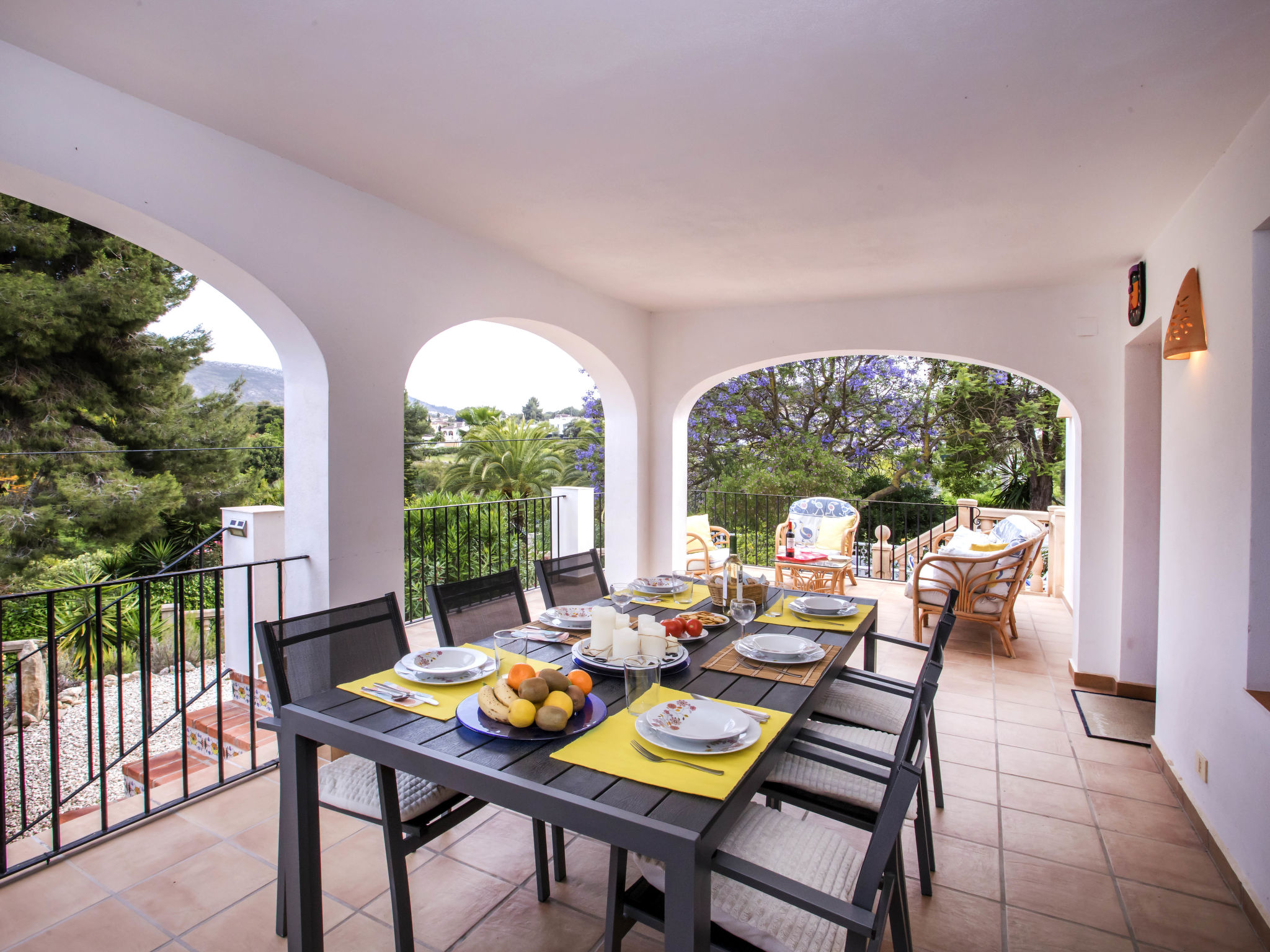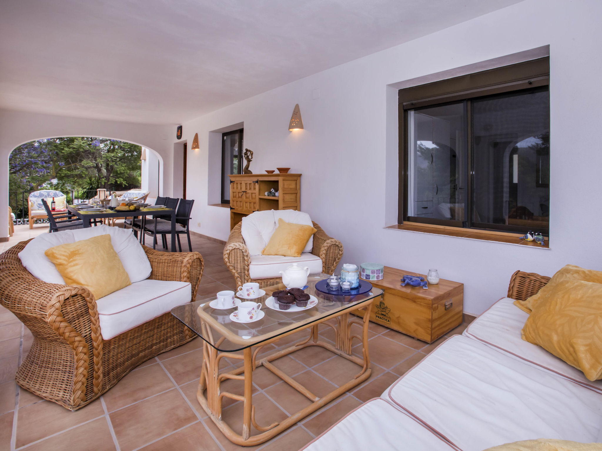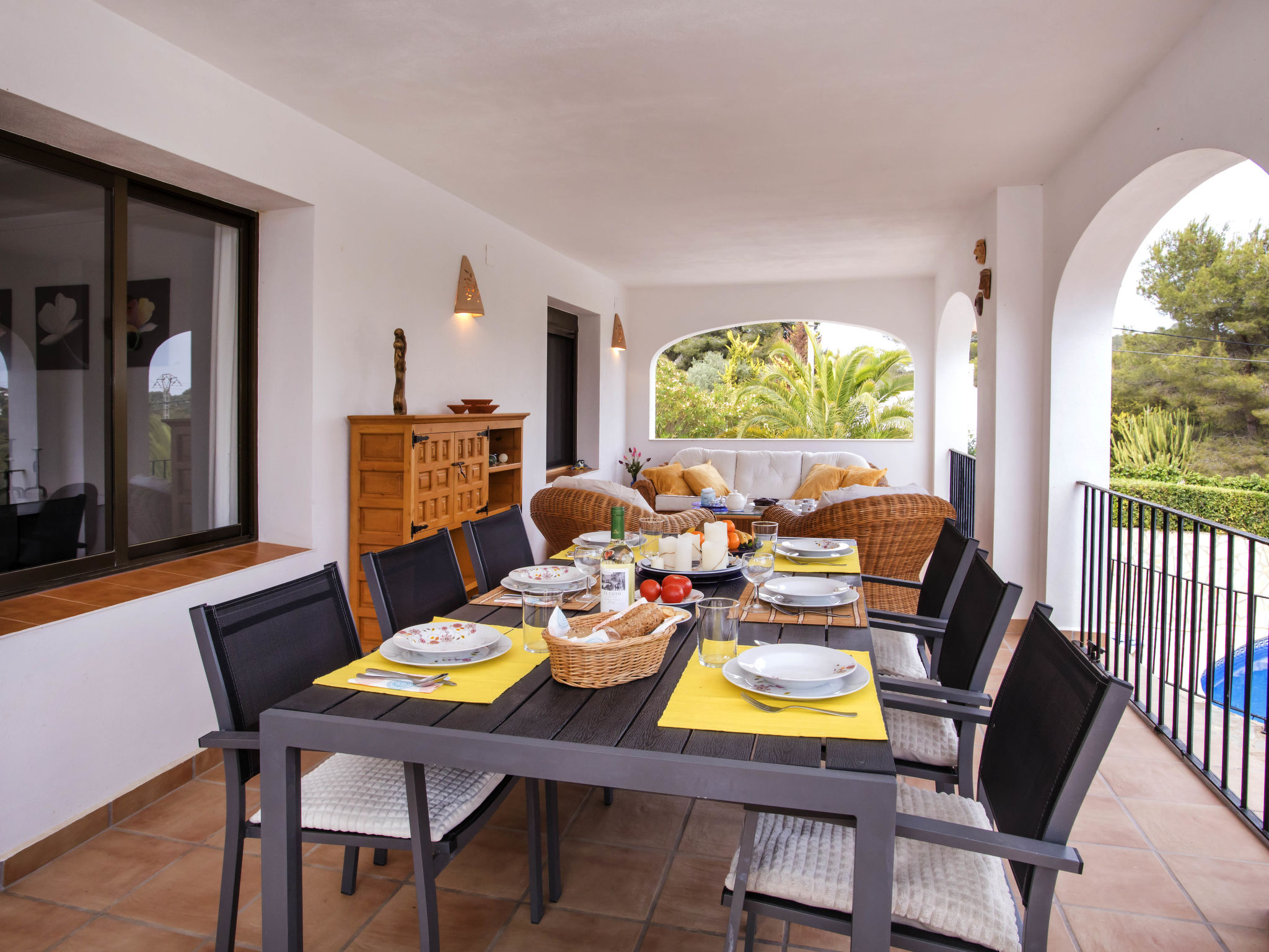 4-Zimmer-Haus 145 m2. Zweckmässig und komfortabel eingerichtet: Wohn-/Esszimmer mit Schwedenofen, Sat-TV, Flachbildschirm, Stereoanlage, DVD und Klimaanlage. Ausgang zur Terrasse. 1 Zimmer mit 1 franz. Bett (150 cm, Länge 190 cm). 1 Kinderzimmer mit 1 x 2 Etagenbetten (90 cm, Länge 190 cm). Küche (4 Kochplatten, Backofen, Geschirrspüler, Mikrowelle, Tiefkühler, elektrische Kaffeemaschine). Ausgang zur Loggia. Dusche/WC. Obergeschoss: 1 Zimmer mit 1 franz. Bett (150 cm, Länge 190 cm), Bad/WC, Doppelwaschbecken und Klimaanlage. Ausgang zur Terrasse. Terrasse 40 m2, grosse Terrasse 60 m2. Terrassenmöbel, Gartengrill, Liegestühle (6). Schöne Sicht auf die Landschaft. Zur Verfügung: Waschmaschine, Bügeleisen, Kinderhochstuhl, Babybett bis 3 Jahre, Haartrockner. Internet (Wireless LAN, gratis). Parkplatz (überdacht, eingezäunt) beim Haus. Bitte beachten: Nichtraucher-Haus. AT444594A
