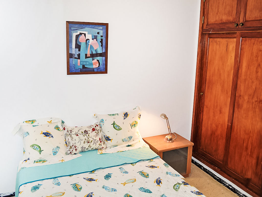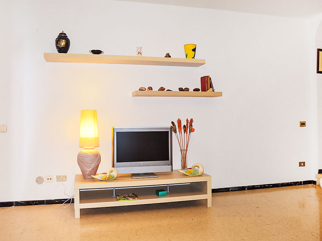 4-Zimmer-Wohnung 100 m2 im 2. Stock. Geräumig und hell, komfortabel und schön eingerichtet: Wohn-/Esszimmer mit TV. Ausgang zur Terrasse. 1 Zimmer mit 2 Betten. 2 Zimmer, jedes Zimmer mit 1 franz. Bett. Offene Küche (4 Glaskeramikherd Platten, Mikrowelle, Tiefkühler) mit Bar. Dusche/Bidet/WC. Boiler (30 Liter). Liegestühle (2). Sicht auf das Meer. Zur Verfügung: Waschmaschine, Babybett bis 2 Jahre. Internet (Wireless LAN, gratis). Bitte beachten: geeignet für Familien. Kein Parkplatz. 1 kleines Haustier/Hund erlaubt. VV-35/1.1037