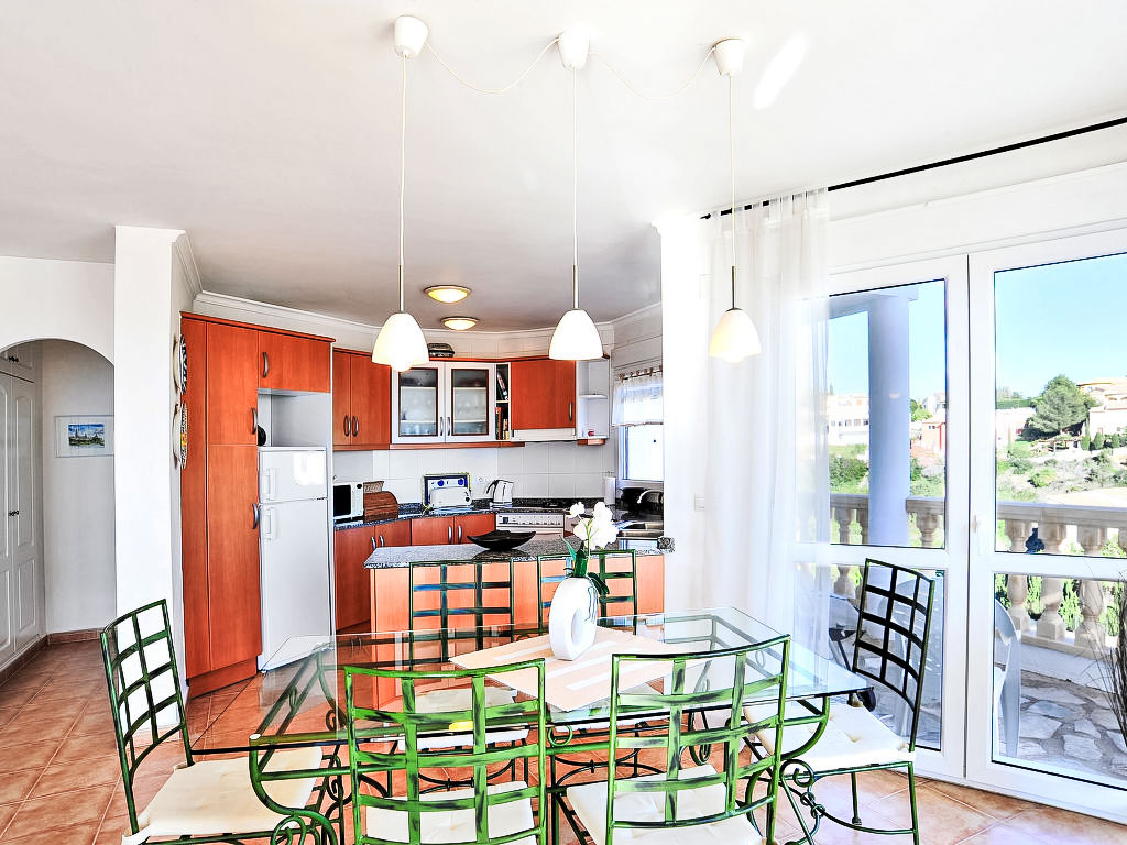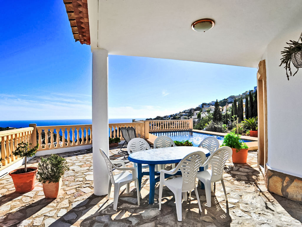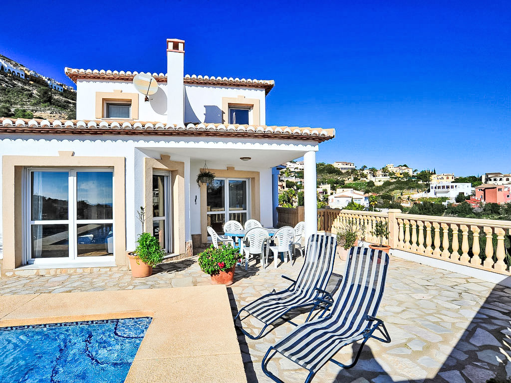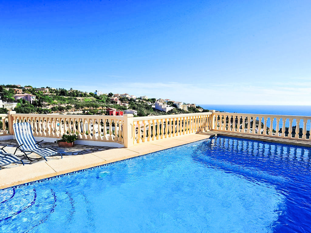 Benitachell: Schönes Haus "Las Encinas", auf 2 Stockwerken, Baujahr 2002. Im Ortsteil Cumbre del Sol, ruhige, sonnige Lage am Hang, 2 km vom Meer. Zur Alleinbenutzung: gepflegter Garten 800 m2 Pflanzen und Blumen, Schwimmbad (4 x 8 m, 01.01.-31.12.) mit Innentreppe. Aussendusche. Im Hause: Zentralheizung. Supermarkt 1 km, Restaurant 1 km, Sandstrand "L'Ampolla" 7 km, Steinstrand "Moraig" 2 km. Bitte beachten: Fahrzeug empfohlen. Geeignet für Familien.