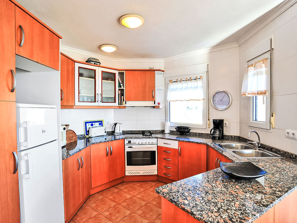 "Las Encinas", 4-Zimmer-Haus 110 m2. Komfortabel eingerichtet: Wohn-/Esszimmer mit Sat-TV (Flachbildschirm). Ausgang zur Terrasse. 1 Zimmer mit 1 Doppelbett und Bad/WC. Ausgang zur Terrasse. Offene Küche (Backofen, 4 Glaskeramikherd Platten, Mikrowelle, Tiefkühler). Sep. WC. Obergeschoss: (Wendeltreppe) 1 Zimmer mit 1 Doppelbett. 1 Zimmer mit 2 Betten. Dusche/WC. Terrassenmöbel, Liegestühle (5). Sehr schöne Sicht auf das Meer. Zur Verfügung: Waschmaschine. Internet (Wireless LAN, gratis). Parkplatz (2 Autos). Bitte beachten: geeignet für Familien. Nichtraucher-Haus. AT-435836-A