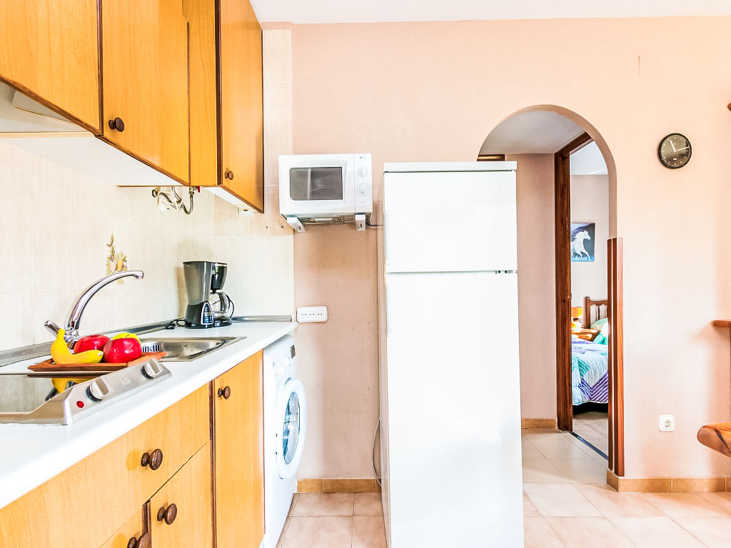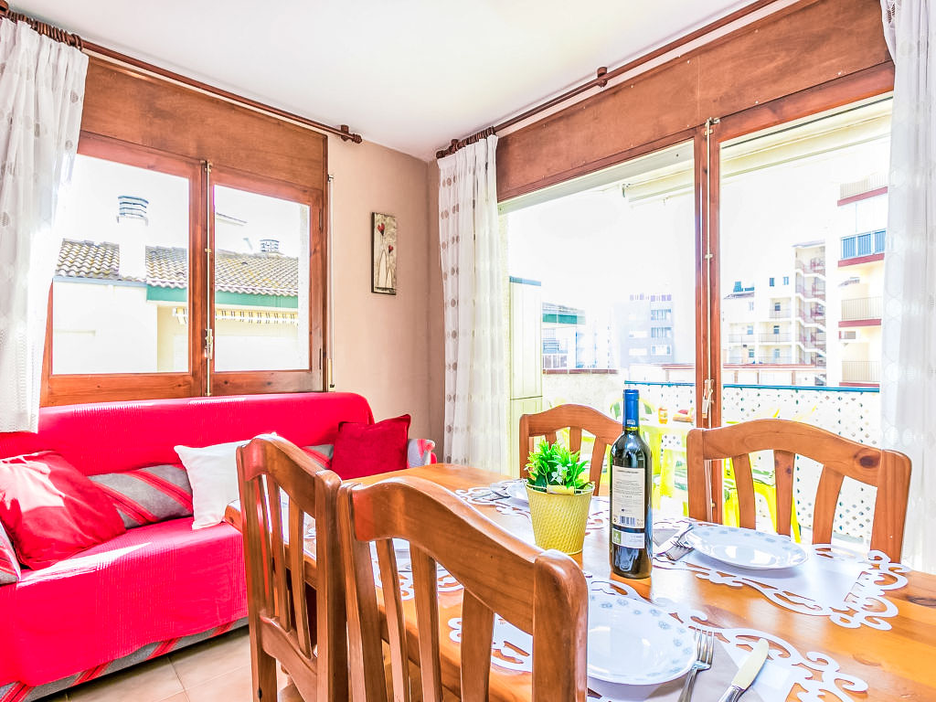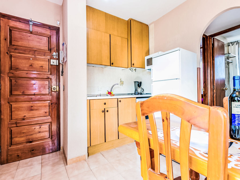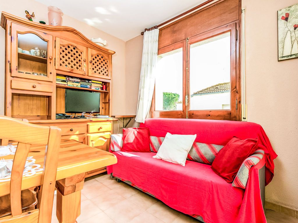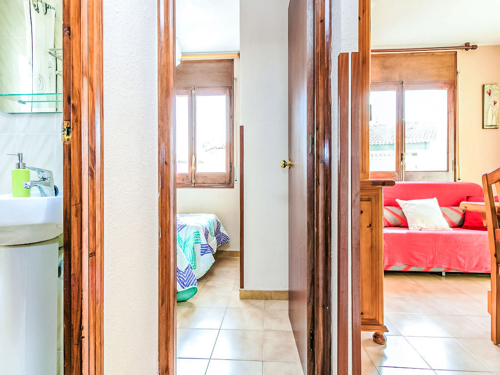 3-Zimmer-Wohnung 39 m2 im 2. Stock. Zweckmässig und komfortabel eingerichtet: Wohn-/Esszimmer mit Sat-TV und Digital-TV (Flachbildschirm). Ausgang zur Terrasse. 1 kleines Zimmer mit 1 franz. Bett (135 cm, Länge 190 cm). 1 kleines Zimmer mit 2 Betten (80 cm, Länge 190 cm). Offene Küche (2 Kochplatten, Toaster, Mikrowelle, Tiefkühler, elektrische Kaffeemaschine). Bad/WC. Terrasse 5 m2. Terrassenmöbel. Zur Verfügung: Waschmaschine. Internet (Wireless LAN, gratis). Parkplatz. Bitte beachten: TV nur ES, FR, DE. Gruppen von Jugendlichen werden nicht akzeptiert. Die Nachbarschaft ist lärmempfindlich. HUTG001904