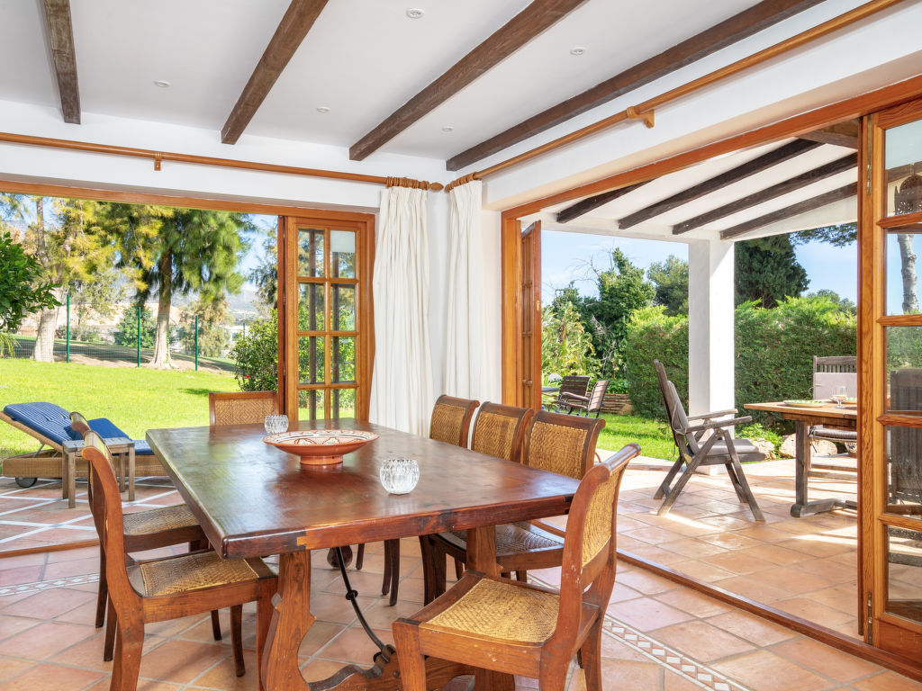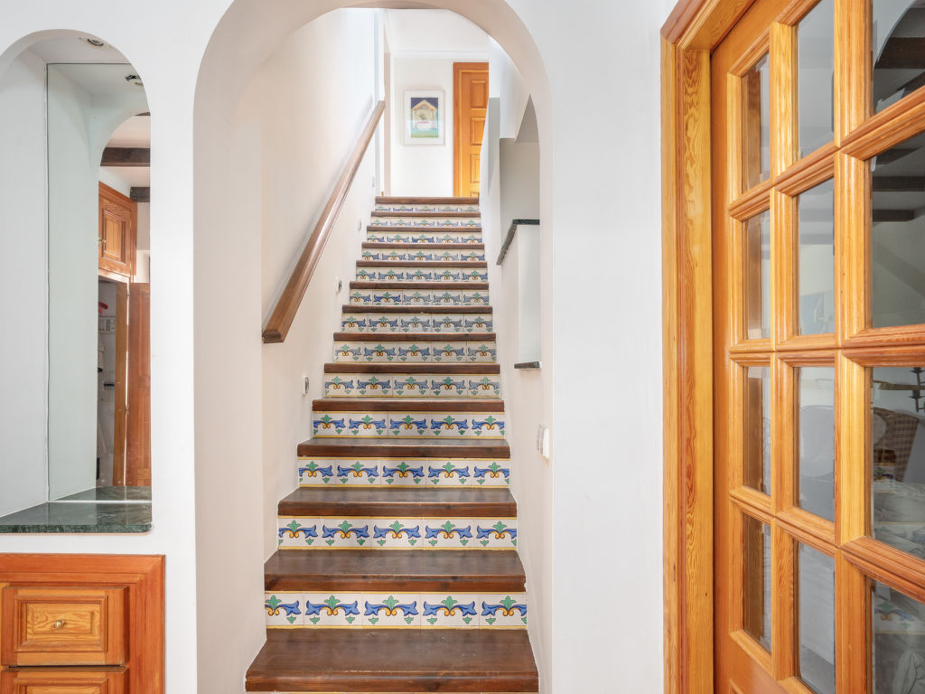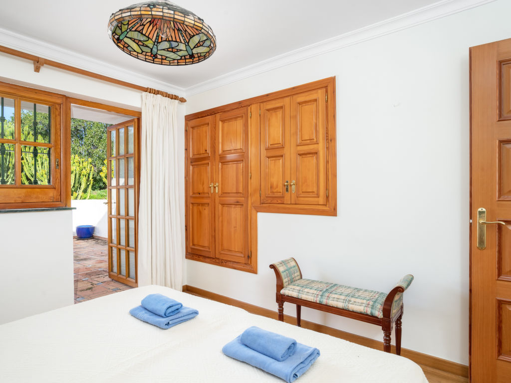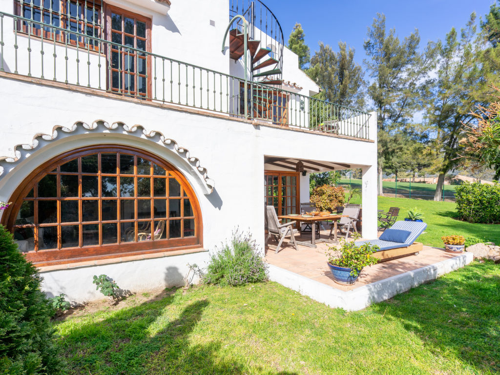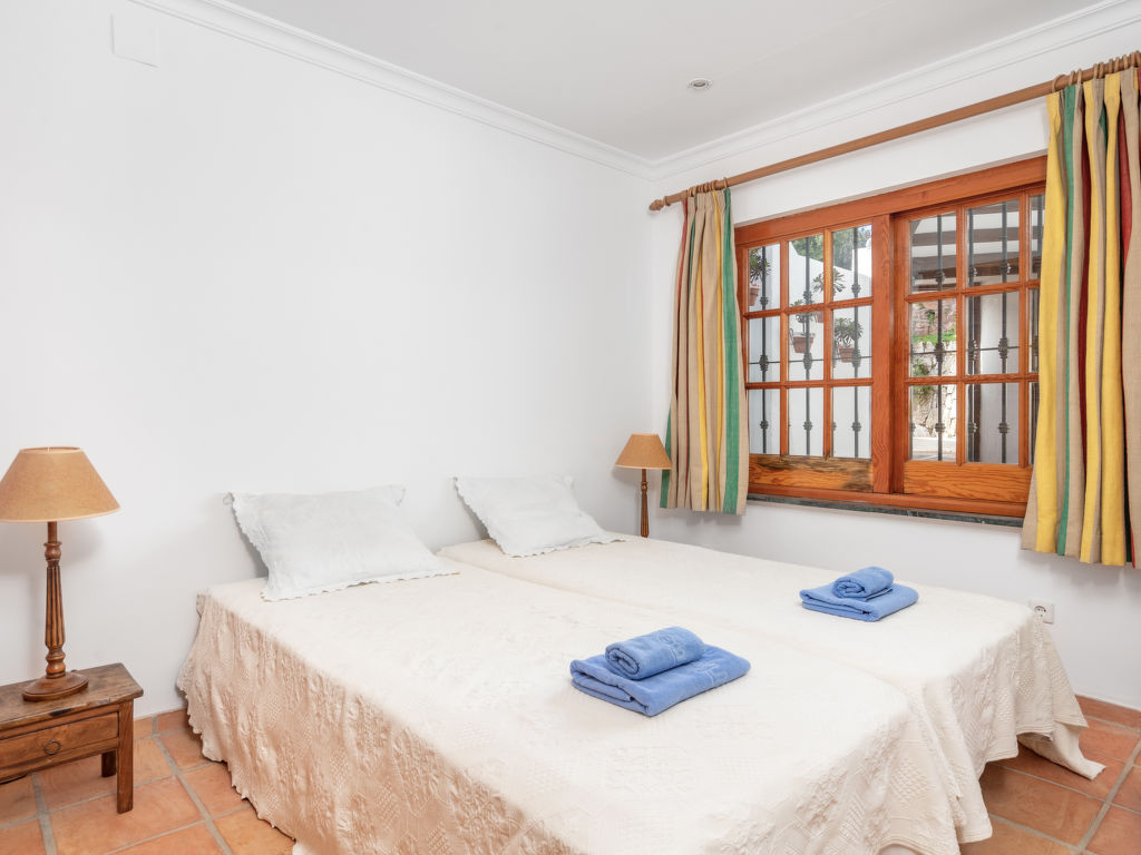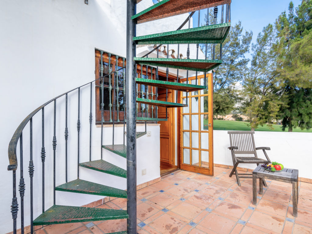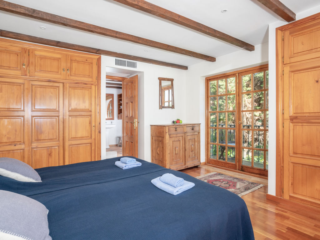 "Aloha Golf", 5-Zimmer-Reihenhaus 241 m2 auf 2 Stockwerken. Geräumig, teilweise renoviert, schön und rustikal eingerichtet: offenes Wohn-/Esszimmer mit Sat-TV und Digital-TV. Ausgang zum Gartensitzplatz. 1 Zimmer mit 1 Doppelbett (2 x 90 cm, Länge 200 cm). Offene Küche (3 Kochplatten, Backofen, Geschirrspüler, Mikrowelle, elektrische Kaffeemaschine, Kochinsel) mit Durchreiche. Dusche/WC. Fussbodenheizung. Obergeschoss: 1 grosses Zimmer mit 1 Doppelbett (2 x 120 cm, Länge 200 cm), Bad/Dusche/Bidet/WC (privat). Ausgang zum Balkon. 1 Zimmer mit 1 Doppelbett (2 x 90 cm, Länge 200 cm). 1 Zimmer mit 1 Ausziehbett (2 x 90 cm). Dusche/WC. Klimaanlage, Warmluftheizung. 2. Obergeschoss: (Wendeltreppe). Terrasse 50 m2. Terrassenmöbel, Gartengrill, Liegestühle (2). Sicht auf die Ortschaft und den Golfplatz. Zur Verfügung: Waschmaschine, Bügeleisen, Kinderhochstuhl, Babybett bis 2 Jahre, Haartrockner. Internet (Wireless LAN, gratis). Garage (1 Auto). Geeignet für Familien. VFT/MA/05538