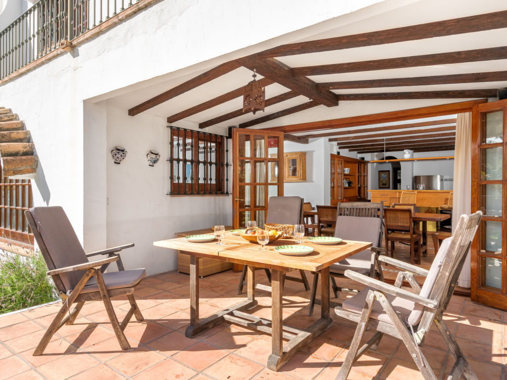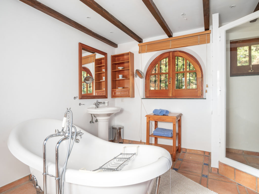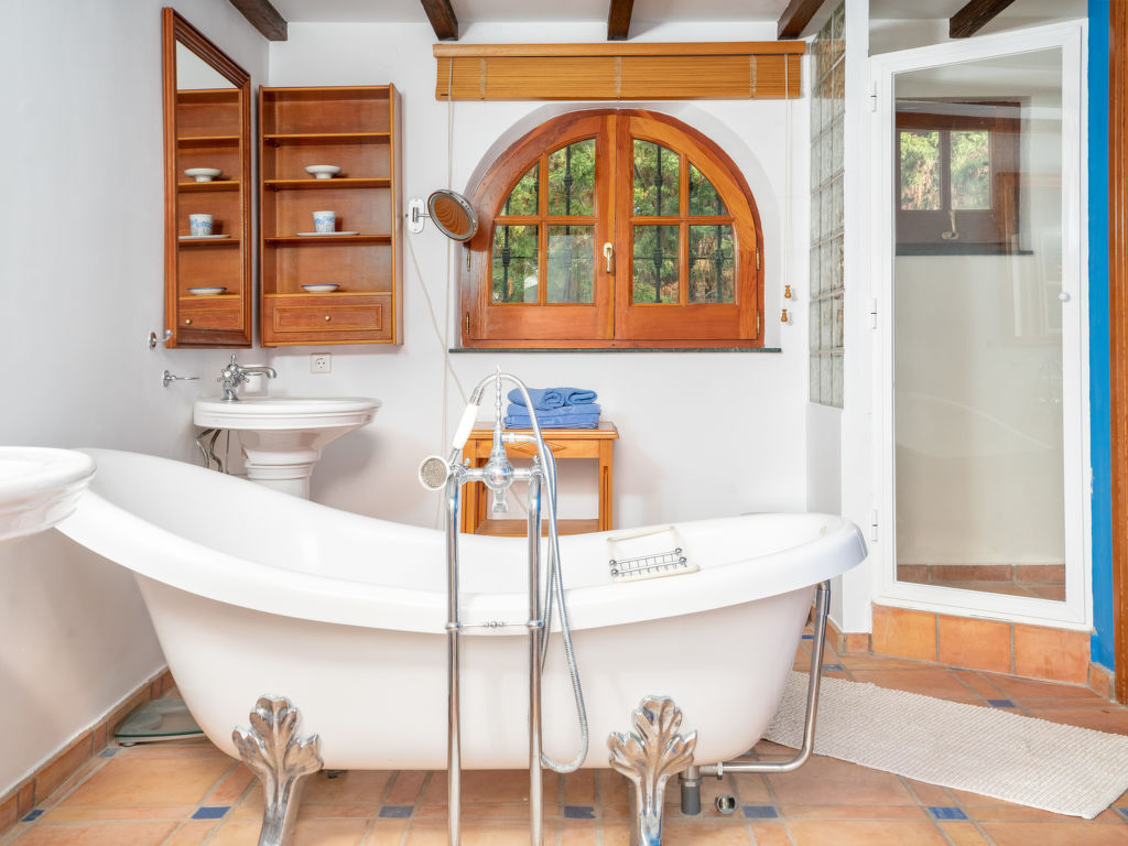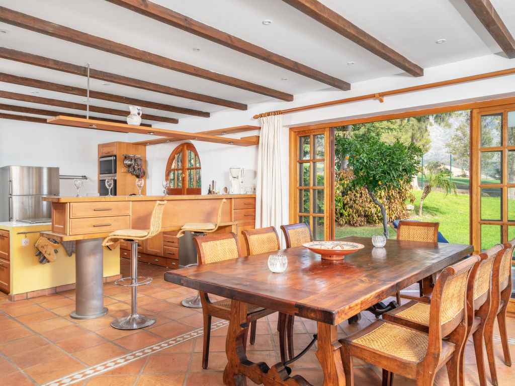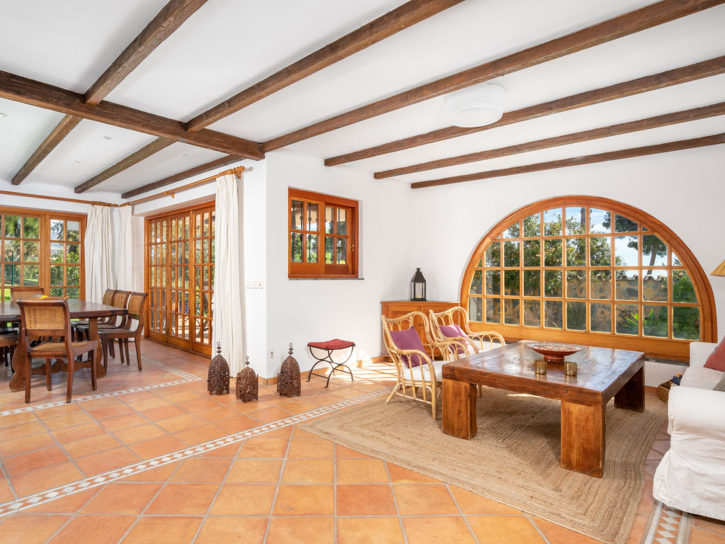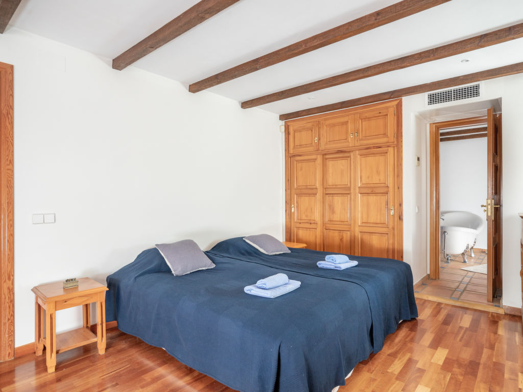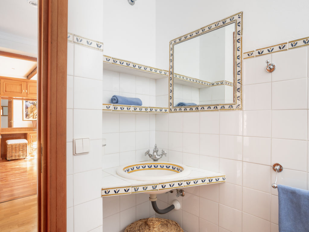 "Aloha Golf", 5-Zimmer-Reihenhaus 241 m2 auf 2 Stockwerken. Geräumig, teilweise renoviert, schön und rustikal eingerichtet: offenes Wohn-/Esszimmer mit Sat-TV und Digital-TV. Ausgang zum Gartensitzplatz. 1 Zimmer mit 1 Doppelbett (2 x 90 cm, Länge 200 cm). Offene Küche (3 Kochplatten, Backofen, Geschirrspüler, Mikrowelle, elektrische Kaffeemaschine, Kochinsel) mit Durchreiche. Dusche/WC. Fussbodenheizung. Obergeschoss: 1 grosses Zimmer mit 1 Doppelbett (2 x 120 cm, Länge 200 cm), Bad/Dusche/Bidet/WC (privat). Ausgang zum Balkon. 1 Zimmer mit 1 Doppelbett (2 x 90 cm, Länge 200 cm). 1 Zimmer mit 1 Ausziehbett (2 x 90 cm). Dusche/WC. Klimaanlage, Warmluftheizung. 2. Obergeschoss: (Wendeltreppe). Terrasse 50 m2. Terrassenmöbel, Gartengrill, Liegestühle (2). Sicht auf die Ortschaft und den Golfplatz. Zur Verfügung: Waschmaschine, Bügeleisen, Kinderhochstuhl, Babybett bis 2 Jahre, Haartrockner. Internet (Wireless LAN, gratis). Garage (1 Auto). Geeignet für Familien. VFT/MA/05538