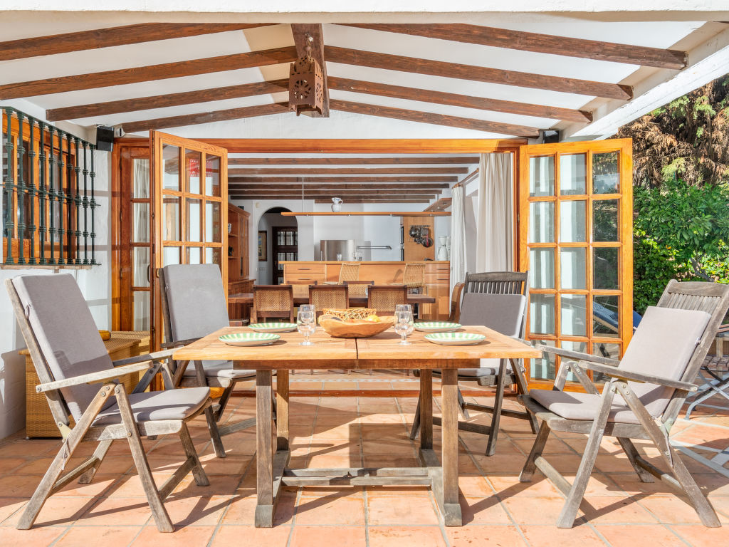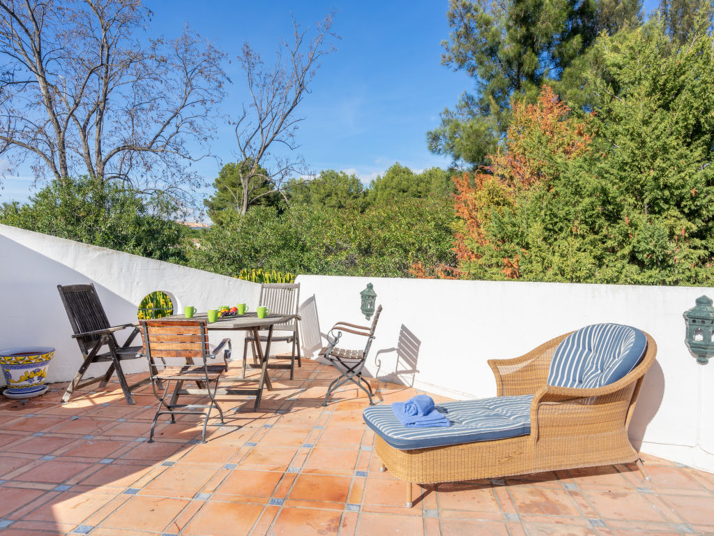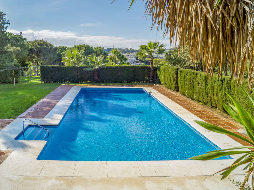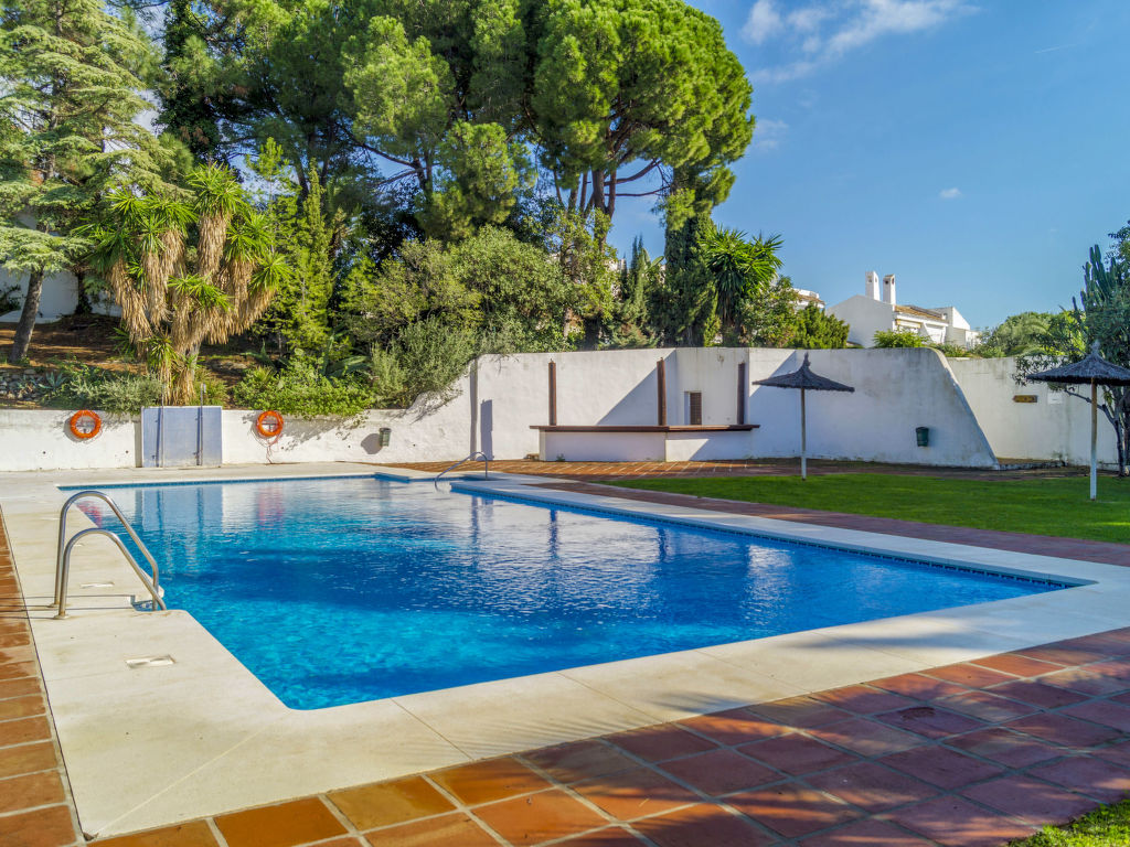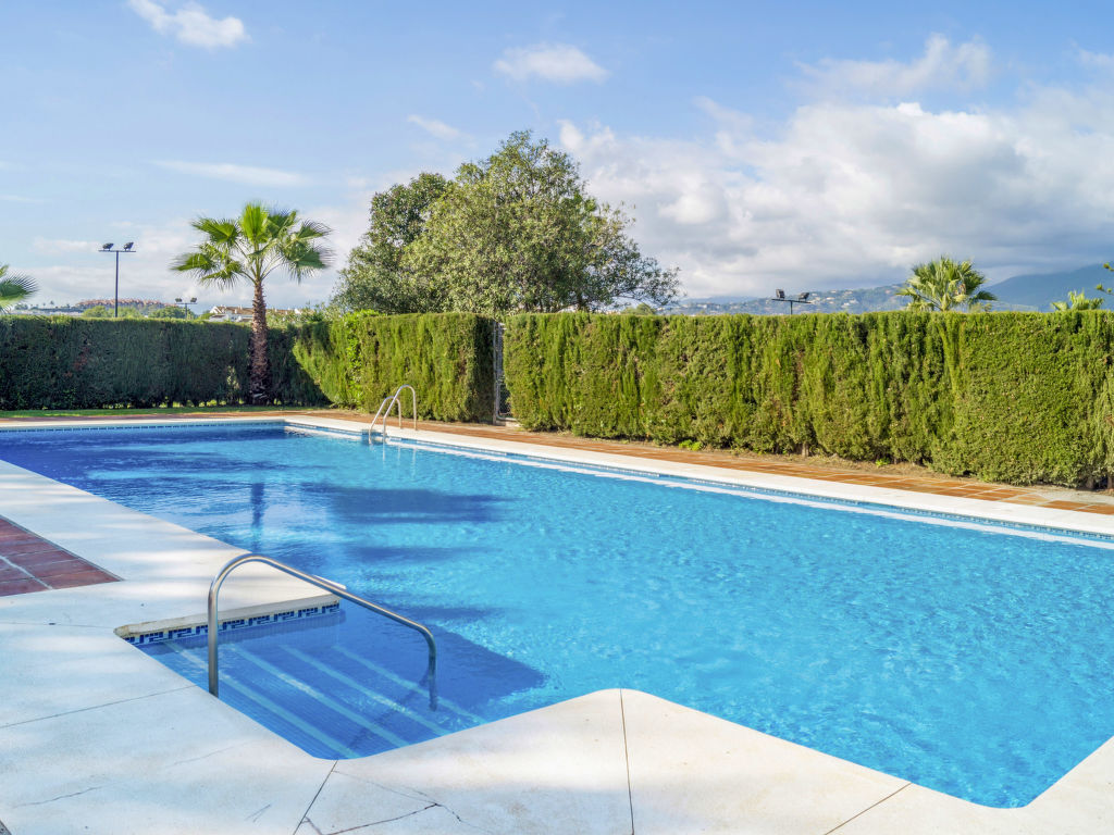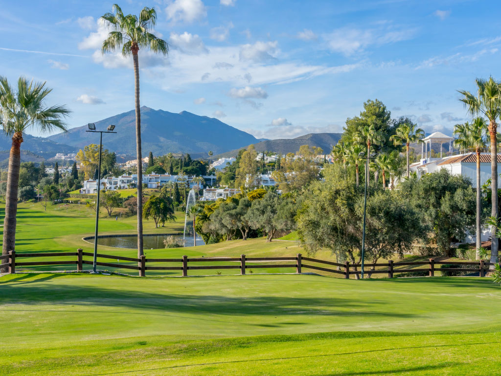 Reihenhaus "Aloha Golf", auf 2 Stockwerken. 2 km vom Zentrum von Puerto Banus, 6 km vom Zentrum von Marbella, ruhige, sonnige Lage, 3 km vom Meer, 3 km vom Strand, in einer Sackgasse, am Golfplatz. Zur Mitbenutzung: Garten, Schwimmbad (6 x 18 m, 80 - 230 cm tief, saisonale Verfügbarkeit: 01.Mai.-30.Sep.). Aussendusche, Parkplatz beim Haus, Einzelgarage. Einkaufsgeschäft 2 km, Supermarkt 2 km, Einkaufszentrum 9 km, Restaurant 300 m, Bäckerei 2 km, Café 2 km, Fußgängerzone 100 m, Freibad 250 m. Golfplatz (18 Loch) 300 m. Jugendgruppen nur auf Anfrage. Residenz ist 24 Std. überwacht. Die Nachbarschaft ist sehr lärmempfindlich. Ruhe und gutes Benehmen wird erwartet. Der Gemeinschaftspool ist 250 m vom Haus entfernt.