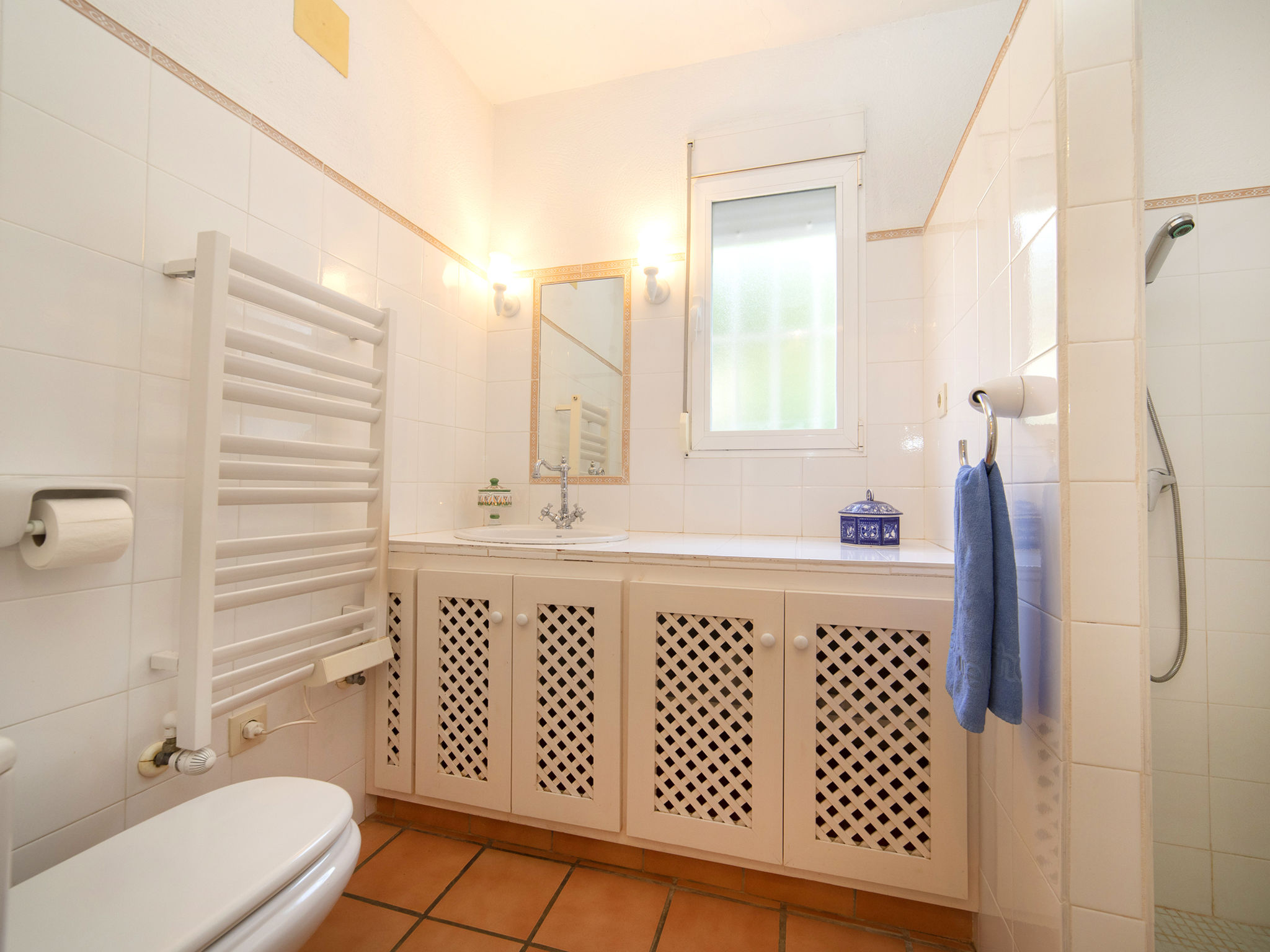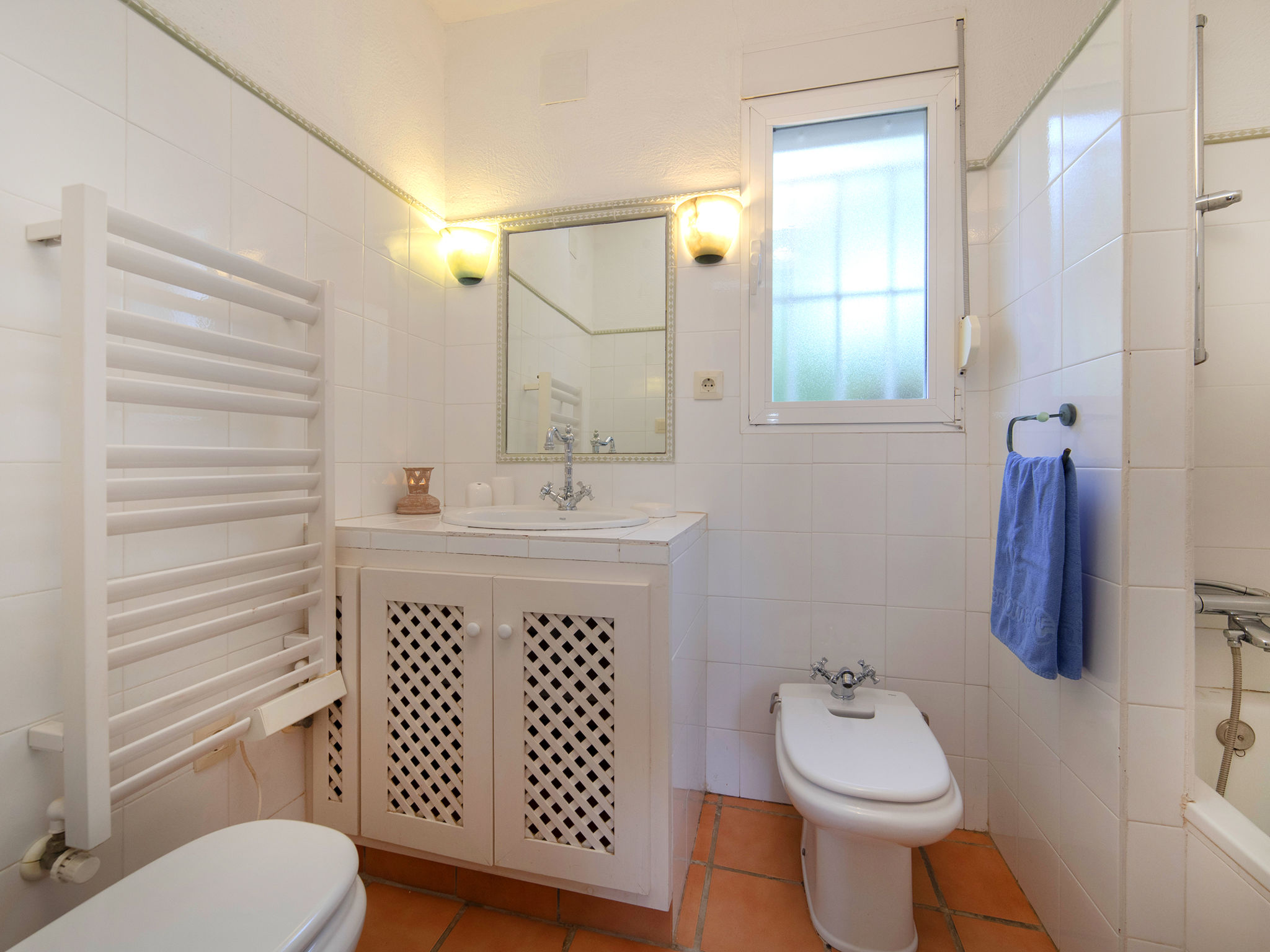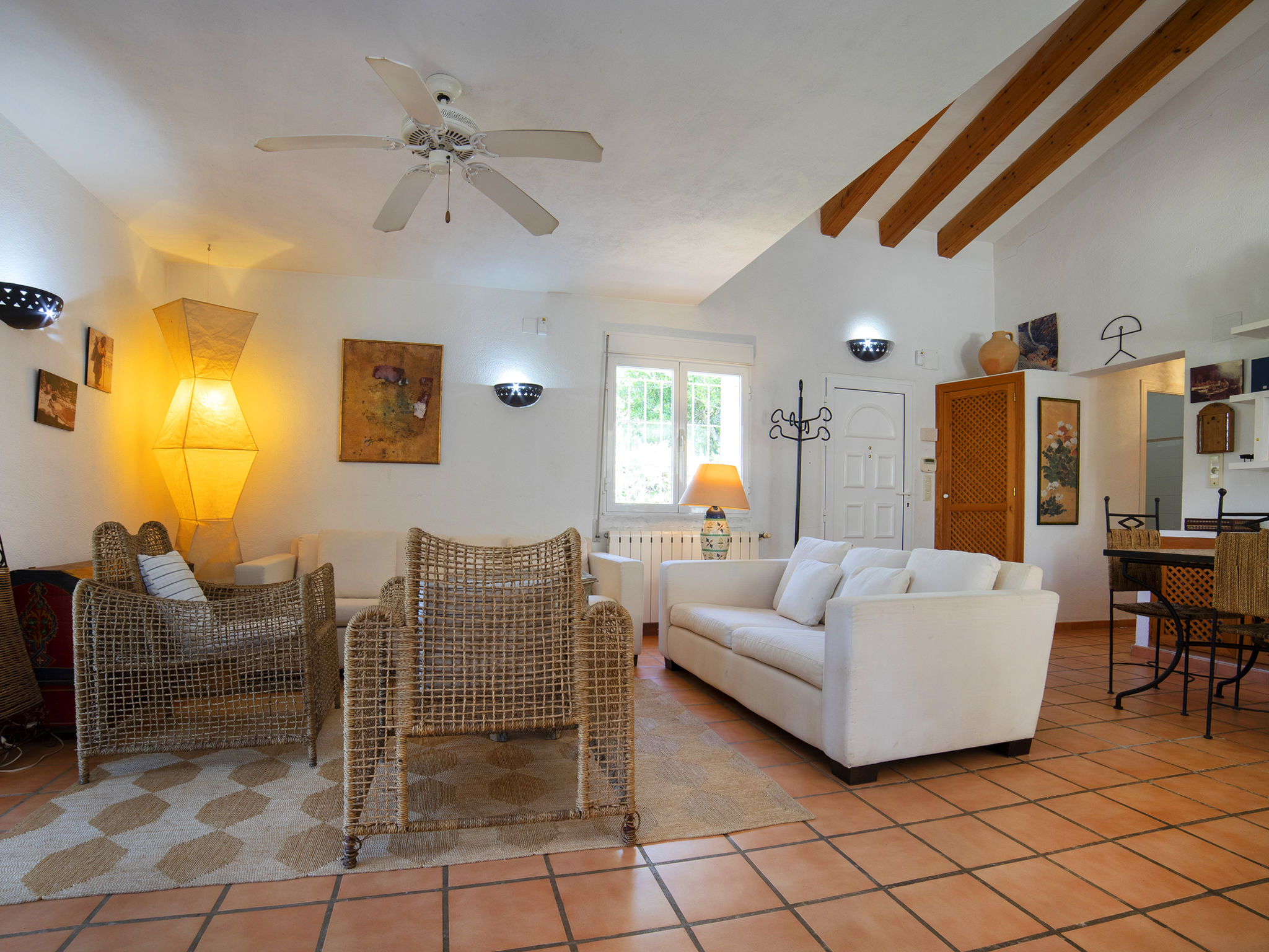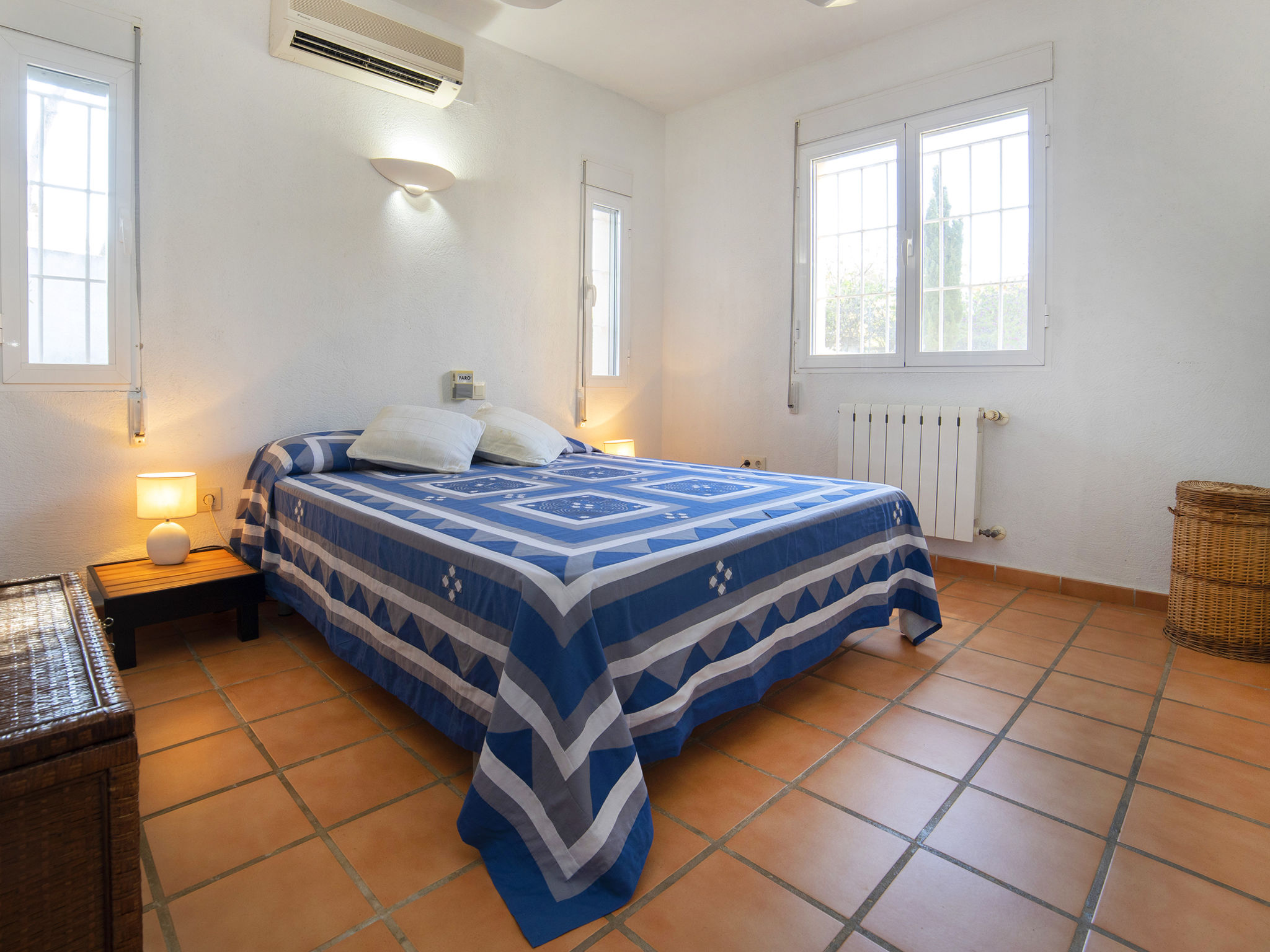 "Flamenco", 3-Zimmer-Villa 140 m2, im ebenerdigen Untergeschoss. Hell, komfortabel und gemütlich eingerichtet: Wohn-/Esszimmer mit Veranda mit Esstisch, Sat-TV, Digital-TV, Flachbildschirm, Stereoanlage und Ventilator. Ausgang zum Gartensitzplatz, zum Schwimmbad. 1 Zimmer mit 2 Betten (90 cm, Länge 190 cm), Klimaanlage, Ventilator und Warmluftheizung. 1 Zimmer mit 1 franz. Bett (150 cm, Länge 190 cm), Bad/Bidet/WC, Klimaanlage, Ventilator und Warmluftheizung. Salon mit 1 Schlafmöglichkeit, offenem Kamin und Stereoanlage. Ausgang zum Gartensitzplatz. Küche (2 Kochplatten, Geschirrspüler, 2 Glaskeramikherd Platten, Toaster, Wasserkocher, Mikrowelle, Tiefkühler, elektrische Kaffeemaschine). Dusche/WC. Terrassenmöbel, Gartengrill, Liegestühle, Loggia. Sicht auf das Schwimmbad und den Garten. Zur Verfügung: Waschmaschine, Bügeleisen, Fliegengitter, Kinderhochstuhl, Babybett bis 2 Jahre, Haartrockner. Internet (Wireless LAN, gratis). Parkplatz (überdacht, eingezäunt, 1 Auto). Geeignet für Familien. VT-487187-A
