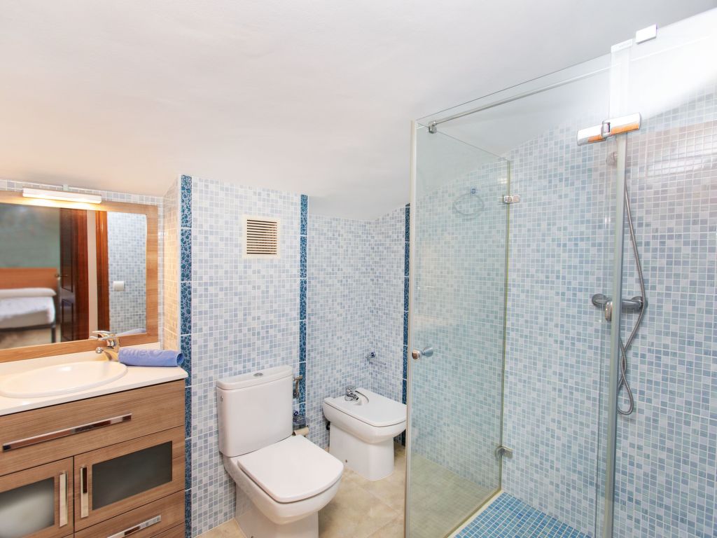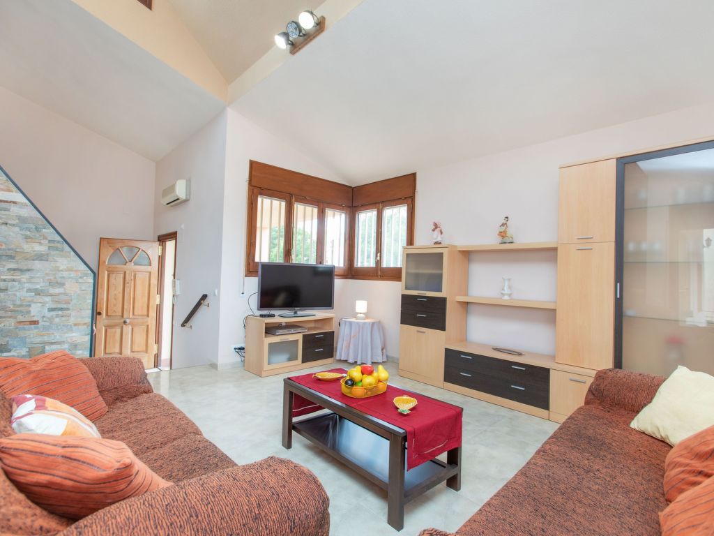 "Villa Arenal", 6-Zimmer-Villa 150 m2 auf 2 Stockwerken. Komfortabel und gemütlich eingerichtet: Wohn-/Esszimmer mit Esstisch und Sat-TV. 1 Zimmer mit 1 franz. Bett (135 cm). 2 Zimmer, jedes Zimmer mit 1 Bett (90 cm). Küche (4 Glaskeramikherd Platten, Toaster, Wasserkocher, Mikrowelle, elektrische Kaffeemaschine) mit Esstisch. Dusche/Bidet/WC. Klimaanlage. Obergeschoss: 2 Zimmer, jedes Zimmer mit 1 franz. Bett (135 cm). Ausgang zum Balkon. Dusche/Bidet/WC. Klimaanlage. Terrasse. Terrassenmöbel. Seitliche Sicht auf das Meer. Zur Verfügung: Waschmaschine, Bügeleisen, Kinderhochstuhl, Babybett, Haartrockner. Internet (Wireless LAN, gratis). Bitte beachten: TV nur ES, DE, FR. HUTT057090