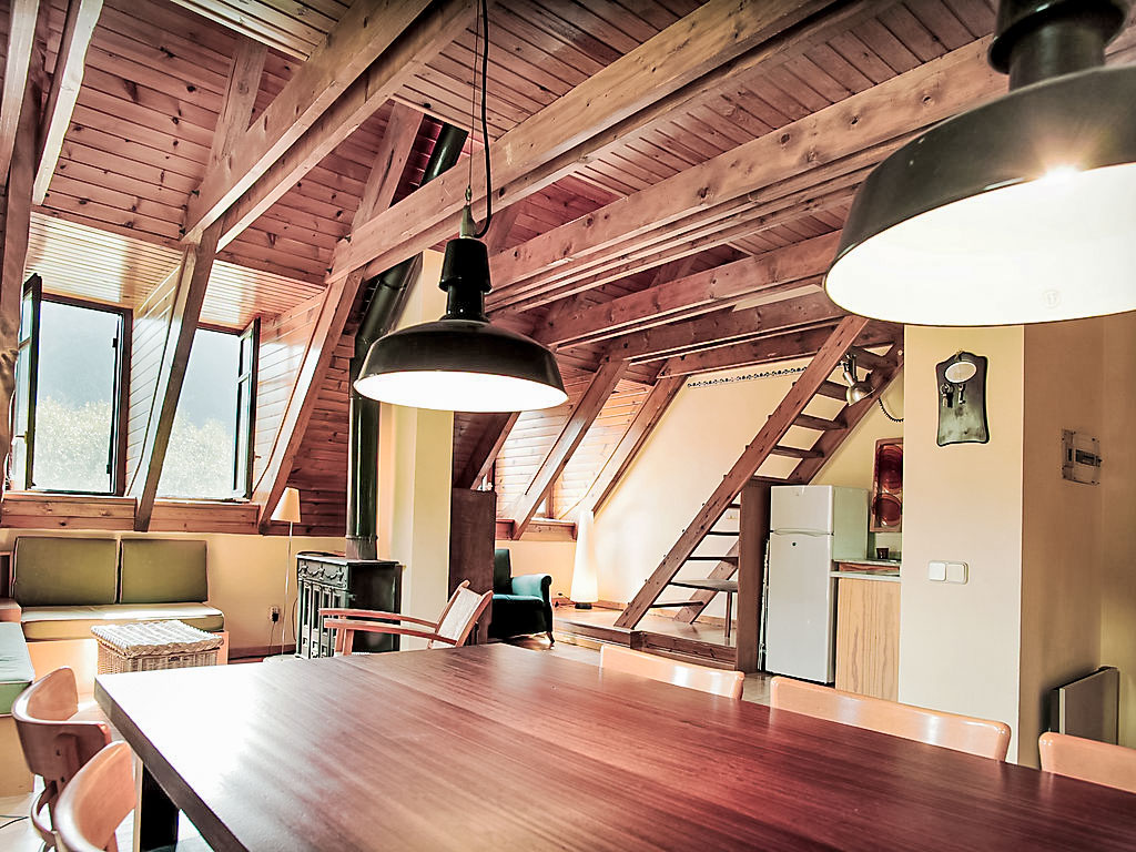 3-Zimmer-Wohnung 90 m2 auf 2 Stockwerken im 3. Stock. Rustikal eingerichtet: Wohn-/Esszimmer 30 m2 mit Digital-TV und Holzofen. Ausgang zum Balkon. 1 Zimmer mit 1 franz. Bett und Ventilator. 1 Zimmer mit 1 Ausziehbett (2 Pers. 2 x 190 cm). Kochnische (Backofen, 4 Glaskeramikherd Platten, Mikrowelle). Bad/Bidet/WC. E-Heizung. Obergeschoss: 1 abgeschrägtes, offenes Zimmer mit 1 franz. Bett und Bad/Bidet/WC. Parkettböden. Balkon. Sicht auf die Berge und die Skipiste. Garage. 1 Haustier/Hund erlaubt. HUTL000419