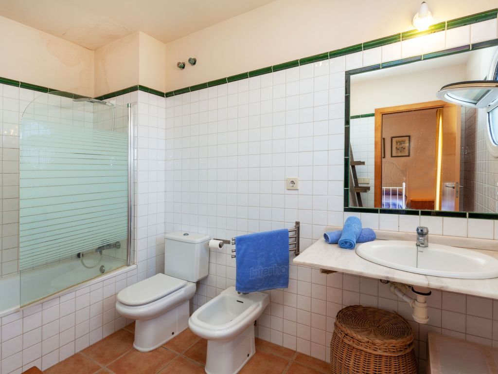 "Cardina Cecilia", 4-Zimmer-Reihenhaus 100 m2 auf 3 Stockwerken. Hell, komfortabel und schön eingerichtet: Wohn-/Esszimmer mit offenem Kamin, Esstisch, Digital-TV und Flachbildschirm. Ausgang zum Gartensitzplatz. Küche (Backofen, Geschirrspüler, 4 Glaskeramikherd Platten, Mikrowelle, elektrische Kaffeemaschine). Sep. WC. Obergeschoss: 1 Zimmer mit 1 franz. Bett (160 cm, Länge 190 cm), Bad/WC. 1 Zimmer mit 1 franz. Bett (150 cm, Länge 190 cm). 1 Zimmer mit 2 Betten (90 cm, Länge 190 cm). Dusche/WC. 2. Obergeschoss: (Leiter). Ausgang zur Terrasse. Sehr schöne Sicht auf das Meer. Zur Verfügung: Waschmaschine, Bügeleisen, Kinderhochstuhl, Babybett, Haartrockner. Internet (Wireless LAN, gratis). Bitte beachten: Maximal 2 Haustiere/Hunde erlaubt. TV nur ES. HUTG012882