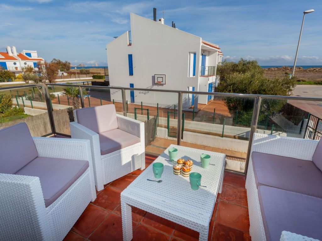 Reihenhaus "Cardina Cecilia", auf 3 Stockwerken. Im Ortsteil Mas Pinell, 100 m vom Meer. Zur Mitbenutzung: mit Rasen, Naturgarten, Schwimmbad (35 m2, saisonale Verfügbarkeit: 15.Mai.-17.Okt.). Ungleichmässige Schwimmbadform, Parkplatz beim Haus. Supermarkt 8 km, Sandstrand "Mas Pinell" 100 m. Golfplatz (36 Loch) 6 km, Surfschule 100 m. Nahe gelegene Sehenswürdigkeiten: Illes Medes 15 km, Ruinas de Empuries 20 km, Conjunto Mediaval de Pals 10 km, Reserva Natural Aiguamolls de l'Emporda 15 km.