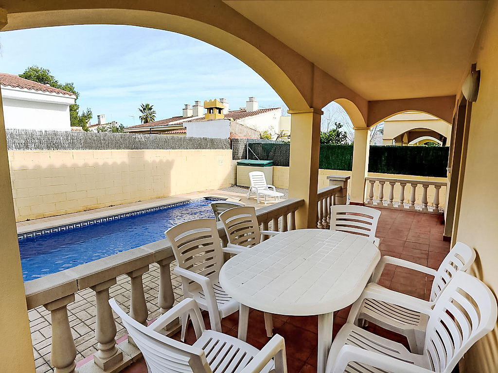 Riumar 10 km von Deltebre: Schönes, gemütliches Haus "Tatiana". Ruhige Lage, 250 m vom Meer, 250 m vom Strand, in einer Sackgasse. Zur Alleinbenutzung: Grundstück (eingezäunt), Schwimmbad eckig (6 x 3 m, 01.01.-31.12.) mit Innentreppe. Aussendusche, Pergola, Parkplatz beim Haus. Einkaufsgeschäft, Lebensmittelgeschäft, Restaurant, Bar 300 m.