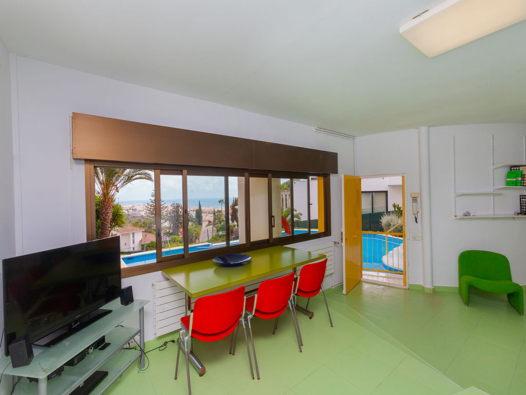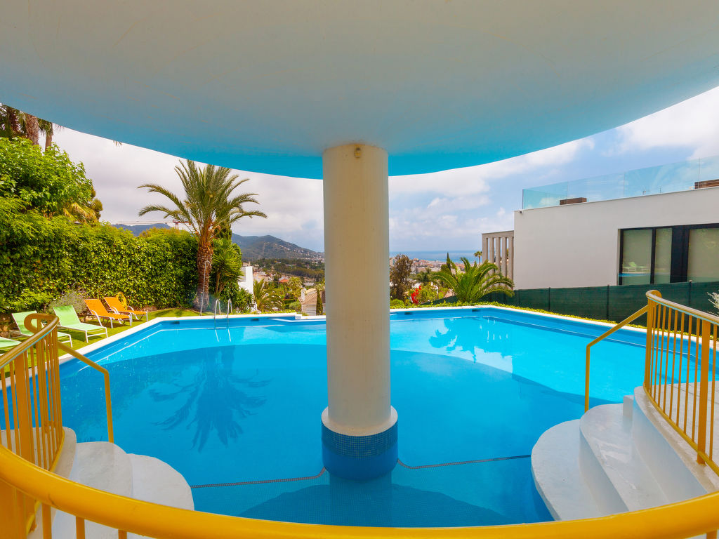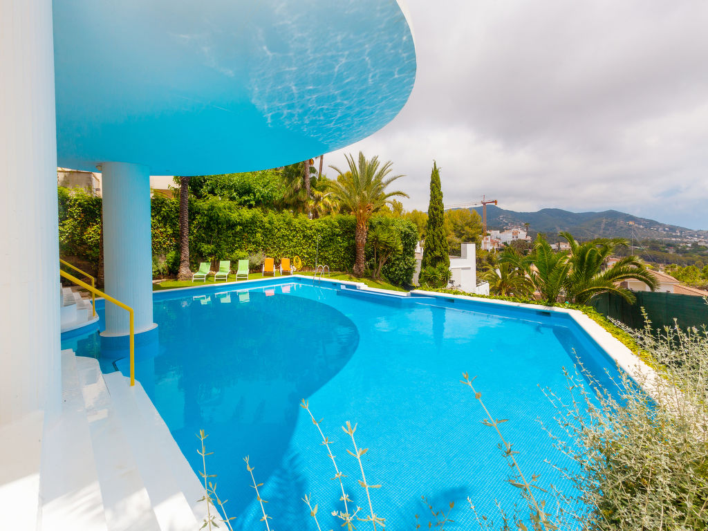 Urb. Vallpineda: Moderner und minimalistischer Baustil des Hauses. Dieser Baustil ist für Kleinkinder ungeeignet. Villa "Vallpineda Avenida Miquel Utrillo", auf 3 Stockwerken, Baujahr 1992. Ausserhalb des Ortes, 2 km vom Zentrum von Sitges, sonnige, erhöhte Lage am Hang, 2.5 km vom Meer, 2.5 km vom Strand. Zur Alleinbenutzung: Grundstück 718 m2, Garten mit Rasen 375 m2, Pflanzen, Schwimmbad (15 x 9 m, 50 - 180 cm tief, 01.06.-30.09.). Aussendusche, Gartenmöbel, Grill, Parkplatz Nr. 3 auf dem Grundstück. Einkaufsgeschäft 1 km, Lebensmittelgeschäft 1 km, Restaurant 1 km, Bushaltestelle 20 m, Bahnstation "Sitges" 2 km. Golfplatz 3.5 km, Tennis 1 km. Bitte beachten: Für Kleinkinder nicht geeignet. Der Besitzer akzeptiert keine Jugendgruppen.
