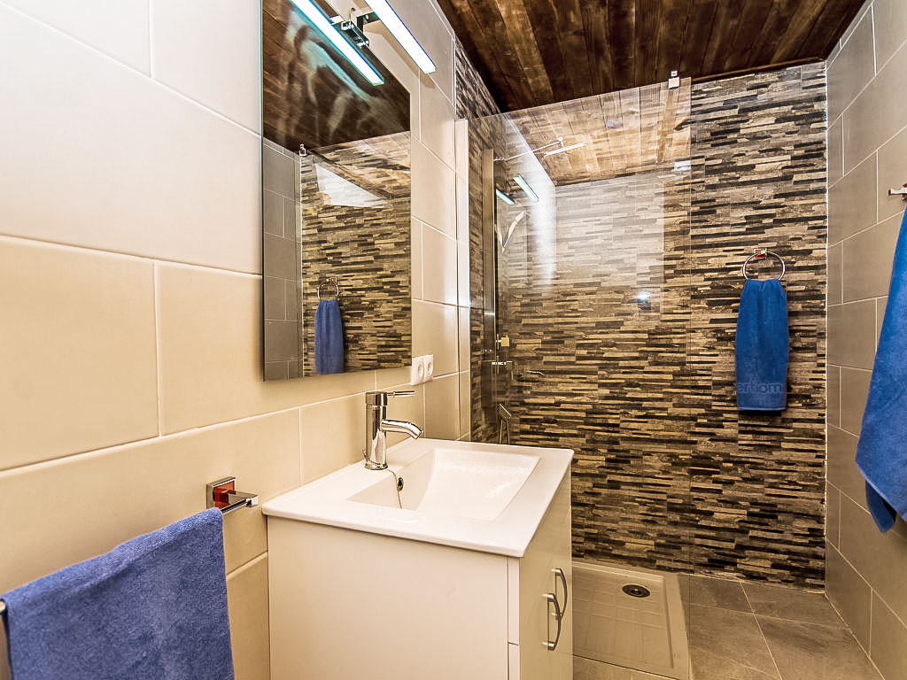 "Betlem", 5-Zimmer-Villa 165 m2 auf 2 Stockwerken. Objekt geeignet für 8 Erwachsene + 1 Kind. Geräumig und hell, vollständig renoviert, sehr zweckmässig und gemütlich eingerichtet: offenes grosses Wohn-/Esszimmer mit Schiebetür, Panoramafenster mit Esstisch, TV, Sat-TV, Flachbildschirm und Holzofen. Ausgang zum Gartensitzplatz, zum Schwimmbad. 1 grosses Doppelzimmer mit Panoramafenster mit 2 Betten (90 cm), Bad/Dusche/WC, Klimaanlage und Warmluftheizung. Ausgang zum Gartensitzplatz. 1 grosses Doppelzimmer mit Panoramafenster mit 2 Betten (90 cm), Klimaanlage und Warmluftheizung. Ausgang zum Gartensitzplatz, zum Schwimmbad. 1 Doppelzimmer mit Schiebetür, Panoramafenster mit 2 Betten (90 cm). Ausgang zum Gartensitzplatz, zum Schwimmbad. Offene Küche (Backofen, Geschirrspüler, 3 Glaskeramikherd Platten, Mikrowelle, Tiefkühler, elektrische Kaffeemaschine). Ausgang zum Gartensitzplatz, zum Schwimmbad. Bad/Dusche/WC. Obergeschoss: (Wendeltreppe) 1 grosses Doppelzimmer mit Schiebetür, Panoramafenster mit 1 Diwanbett und 1 franz. Bett (150 cm), Bad/Dusche/WC, TV, Flachbildschirm, Klimaanlage und Warmluftheizung. Ausgang zur Terrasse. Grosser Balkon, grosser Gartensitzplatz. Terrassenmöbel, Gartengrill, Liegestühle, Loggia. Eingeschränkte Sicht auf das Meer und die Landschaft. Zur Verfügung: Waschmaschine, Bügeleisen, Kinderhochstuhl, Babybett, Haartrockner. Internet (Wireless LAN, gratis). Parkplatz (eingezäunt). Geeignet für Familien. 1 Haustier/Hund erlaubt. L26E218312016
