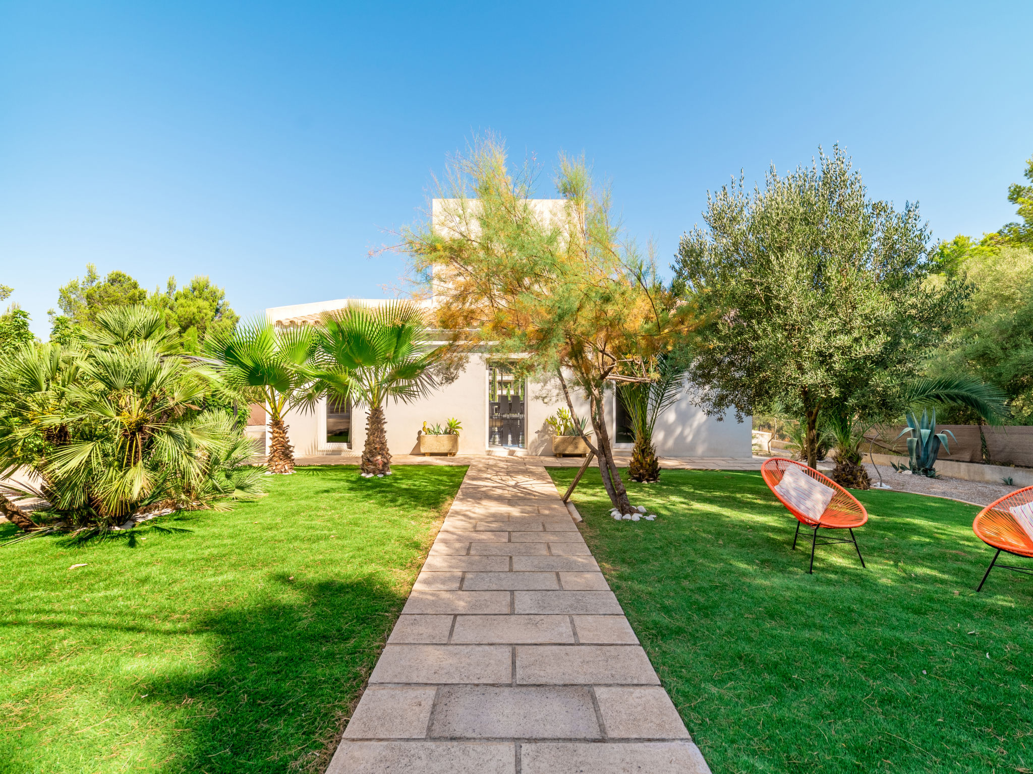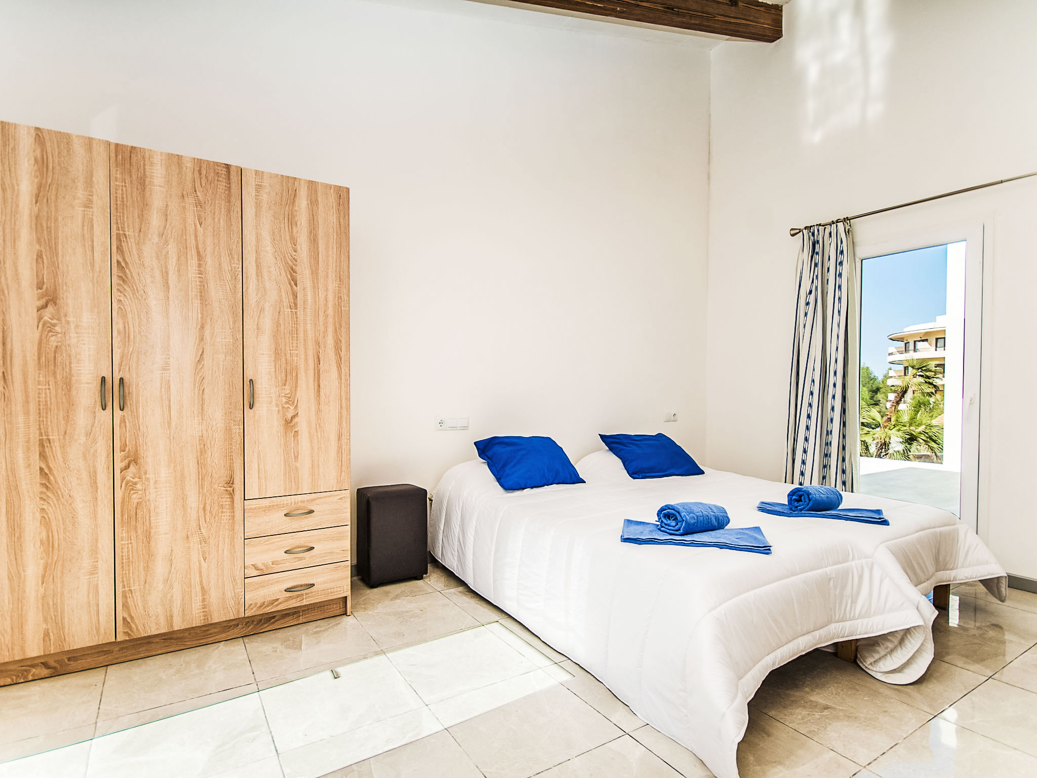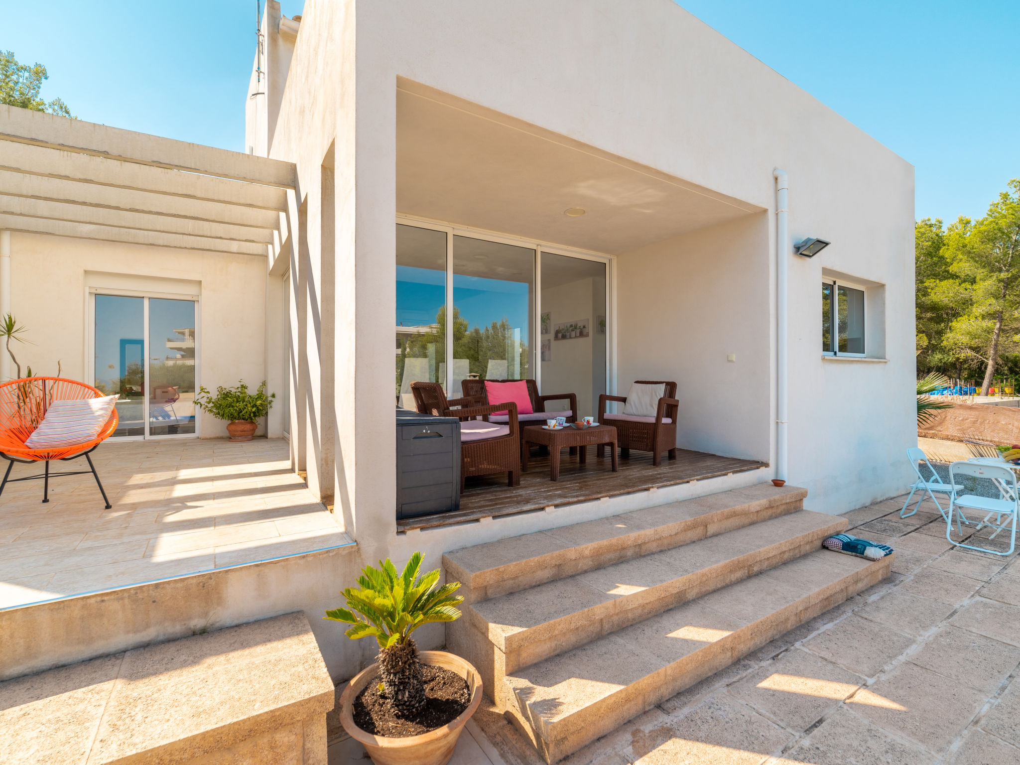 "Betlem", 5-Zimmer-Villa 165 m2 auf 2 Stockwerken. Objekt geeignet für 8 Erwachsene + 1 Kind. Geräumig und hell, vollständig renoviert, sehr zweckmässig und gemütlich eingerichtet: offenes grosses Wohn-/Esszimmer mit Schiebetür, Panoramafenster mit Esstisch, TV, Sat-TV, Flachbildschirm und Holzofen. Ausgang zum Gartensitzplatz, zum Schwimmbad. 1 grosses Doppelzimmer mit Panoramafenster mit 2 Betten (90 cm), Bad/Dusche/WC, Klimaanlage und Warmluftheizung. Ausgang zum Gartensitzplatz. 1 grosses Doppelzimmer mit Panoramafenster mit 2 Betten (90 cm), Klimaanlage und Warmluftheizung. Ausgang zum Gartensitzplatz, zum Schwimmbad. 1 Doppelzimmer mit Schiebetür, Panoramafenster mit 2 Betten (90 cm). Ausgang zum Gartensitzplatz, zum Schwimmbad. Offene Küche (Backofen, Geschirrspüler, 3 Glaskeramikherd Platten, Mikrowelle, Tiefkühler, elektrische Kaffeemaschine). Ausgang zum Gartensitzplatz, zum Schwimmbad. Bad/Dusche/WC. Obergeschoss: (Wendeltreppe) 1 grosses Doppelzimmer mit Schiebetür, Panoramafenster mit 1 Diwanbett und 1 franz. Bett (150 cm), Bad/Dusche/WC, TV, Flachbildschirm, Klimaanlage und Warmluftheizung. Ausgang zur Terrasse. Grosser Balkon, grosser Gartensitzplatz. Terrassenmöbel, Gartengrill, Liegestühle, Loggia. Eingeschränkte Sicht auf das Meer und die Landschaft. Zur Verfügung: Waschmaschine, Bügeleisen, Kinderhochstuhl, Babybett, Haartrockner. Internet (Wireless LAN, gratis). Parkplatz (eingezäunt). Geeignet für Familien. 1 Haustier/Hund erlaubt. L26E218312016
