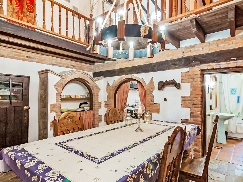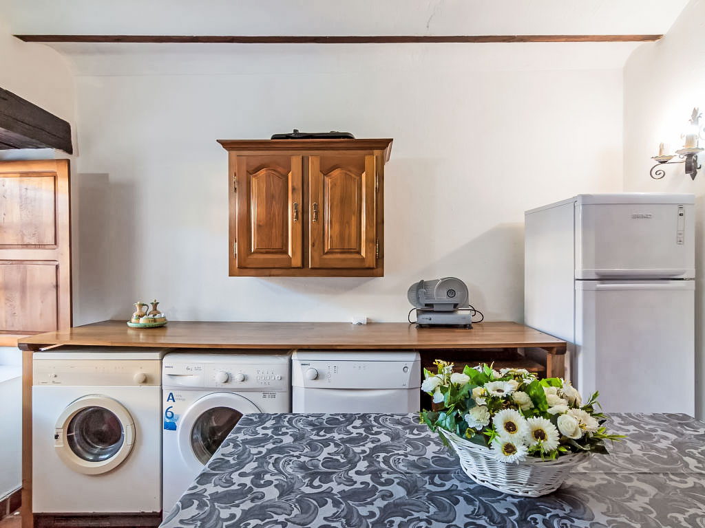 5-Zimmer-Reihenhaus 250 m2 auf 3 Stockwerken. Wohnzimmer 30 m2 mit offenem Kamin, Bar, Digital-TV, Flachbildschirm, Video, Radio und DVD. Esszimmer 18 m2 mit offenem Kamin. Küche (Backofen, Geschirrspüler, Mikrowelle, Tiefkühler, elektrische Kaffeemaschine) mit Esstisch. Bad/Bidet/WC. Obergeschoss: offenes Wohnzimmer 50 m2. Ausgang zum Balkon. 2 abgeschrägte Zimmer, jedes Zimmer mit 2 Betten. 2. Obergeschoss: Galerie. 1 abgeschrägtes Zimmer, ohne Schrank mit 1 franz. Bett und Radio. Garten 20 m2. Gartengrill. Sicht auf die Berge und das Tal. Zur Verfügung: Waschmaschine, Wäschetrockner, Bügeleisen, Babybett bis 2 Jahre (extra), Holz (extra). Internet (Wireless LAN, gratis). Parkplatz (eingezäunt). Maximal 1 kleines Haustier/Hund erlaubt. R000000001