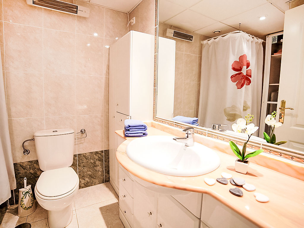 "Zafiro 02", 2-Zimmer-Wohnung 62 m2 im 9. Stock. Objekt geeignet für 2 Erwachsene + 2 Kinder. Komfortabel und geschmackvoll eingerichtet: Wohn-/Esszimmer 20 m2 mit 1 Doppeldiwanbett, Digital-TV, Klimaanlage und Warmluftheizung. Ausgang zur Terrasse. 1 Zimmer mit 1 franz. Bett. Offene Küche (Backofen, 4 Glaskeramikherd Platten, Mikrowelle). Bad/WC. Terrassenmöbel. Sehr schöne Panoramasicht auf das Meer. Zur Verfügung: Waschmaschine. Bitte beachten: TV nur ES. AT-440228-A