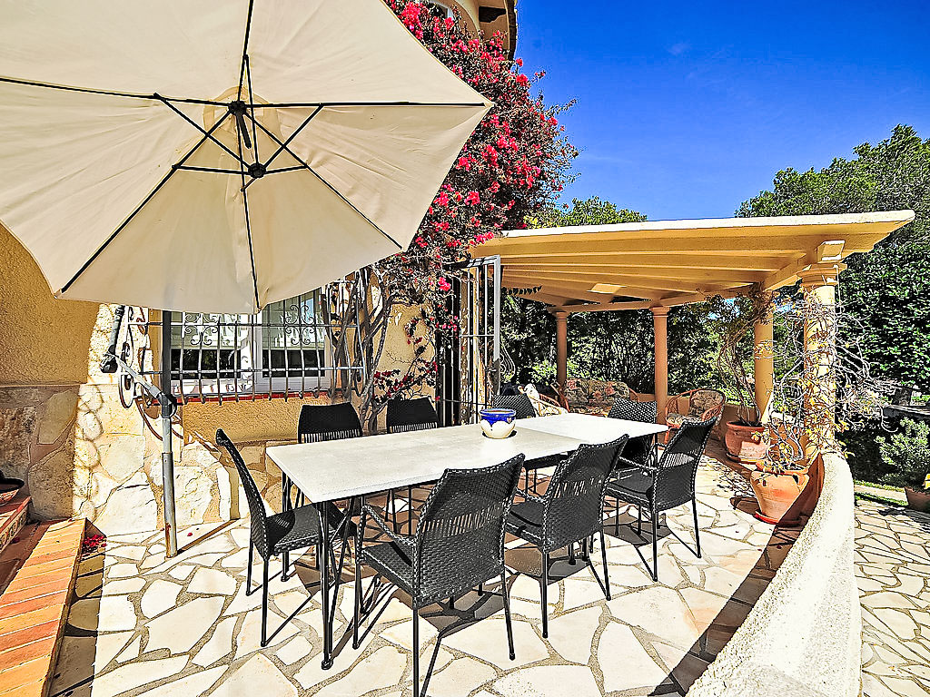 Grosses, gemütliches, komfortables Haus "Flamenc". Im Ortsteil Ambolo, ruhige, sonnige, erhöhte Lage, 5 km vom Meer. Zur Alleinbenutzung: schöner, gepflegter Garten 1'000 m2 (eingezäunt) mit Rasen und Bäumen, Schwimmbad (4 x 8 m, 01.01.-31.12.). Grill. Im Hause: Sonnenterrasse, Dachterrasse, Zentralheizung. Öffentliche Parkplätze auf der Strasse. Supermarkt 800 m, Restaurant 600 m, Sandstrand "El Arenal" 7 km, Steinstrand "La Granadella" 5 km. Tennis 800 m. Jugendgruppen nur auf Anfrage. Ein Teil des Hauses ist abgeschlossen und unbewohnt.